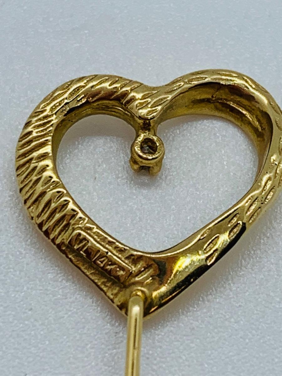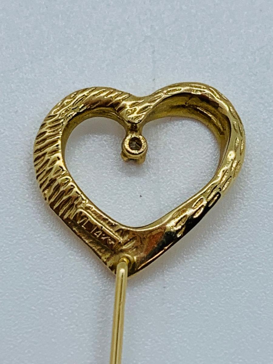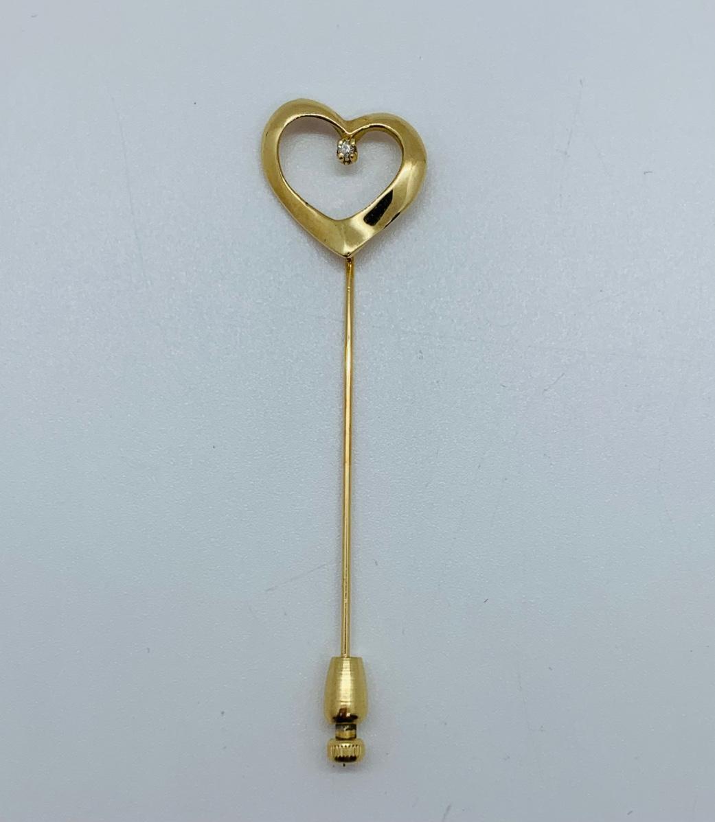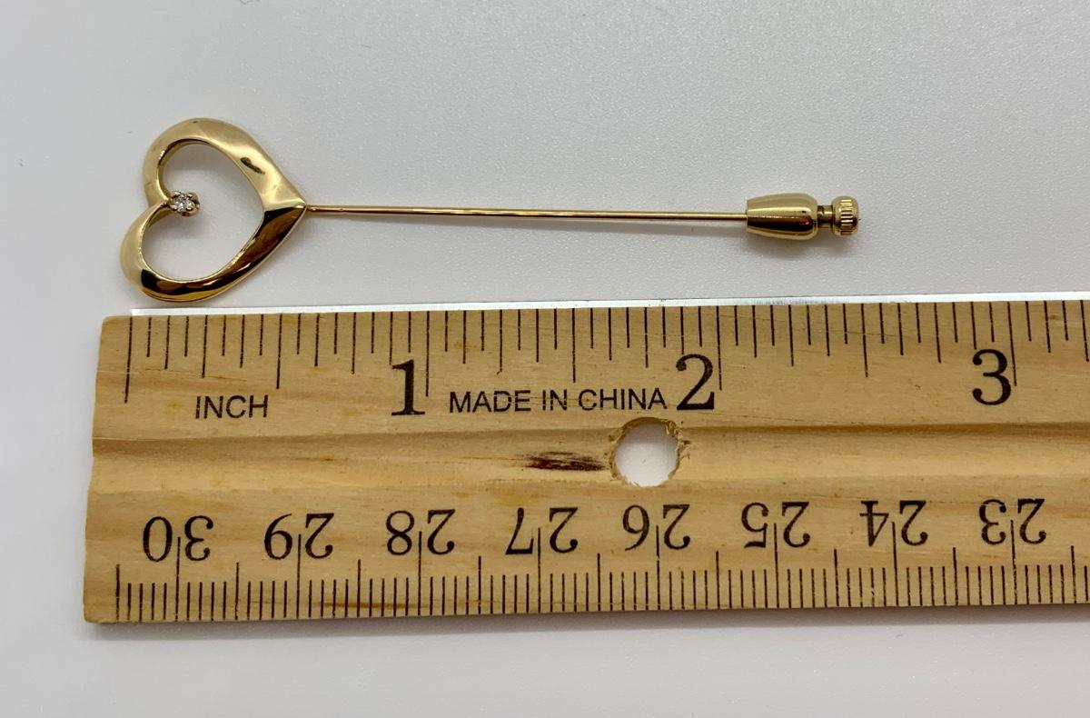 LOT 11R: Beautiful VL 14k Yellow Gold Heart Stick Pin w/Diamond Chip (wt.2.4g)