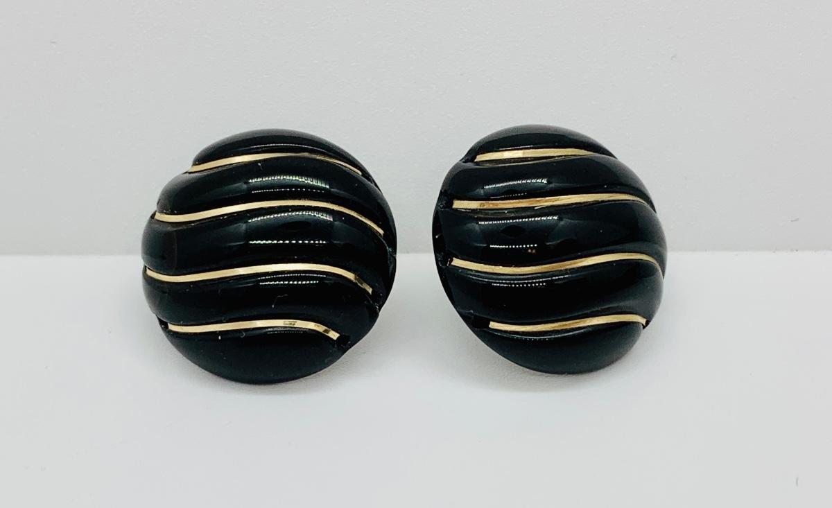 LOT 15R:  Fresh Water Pearl & Black Onyx 8" Bracelet w/ 14K Beads & Clasp along with 14K Black & Gold Pierced Earrings