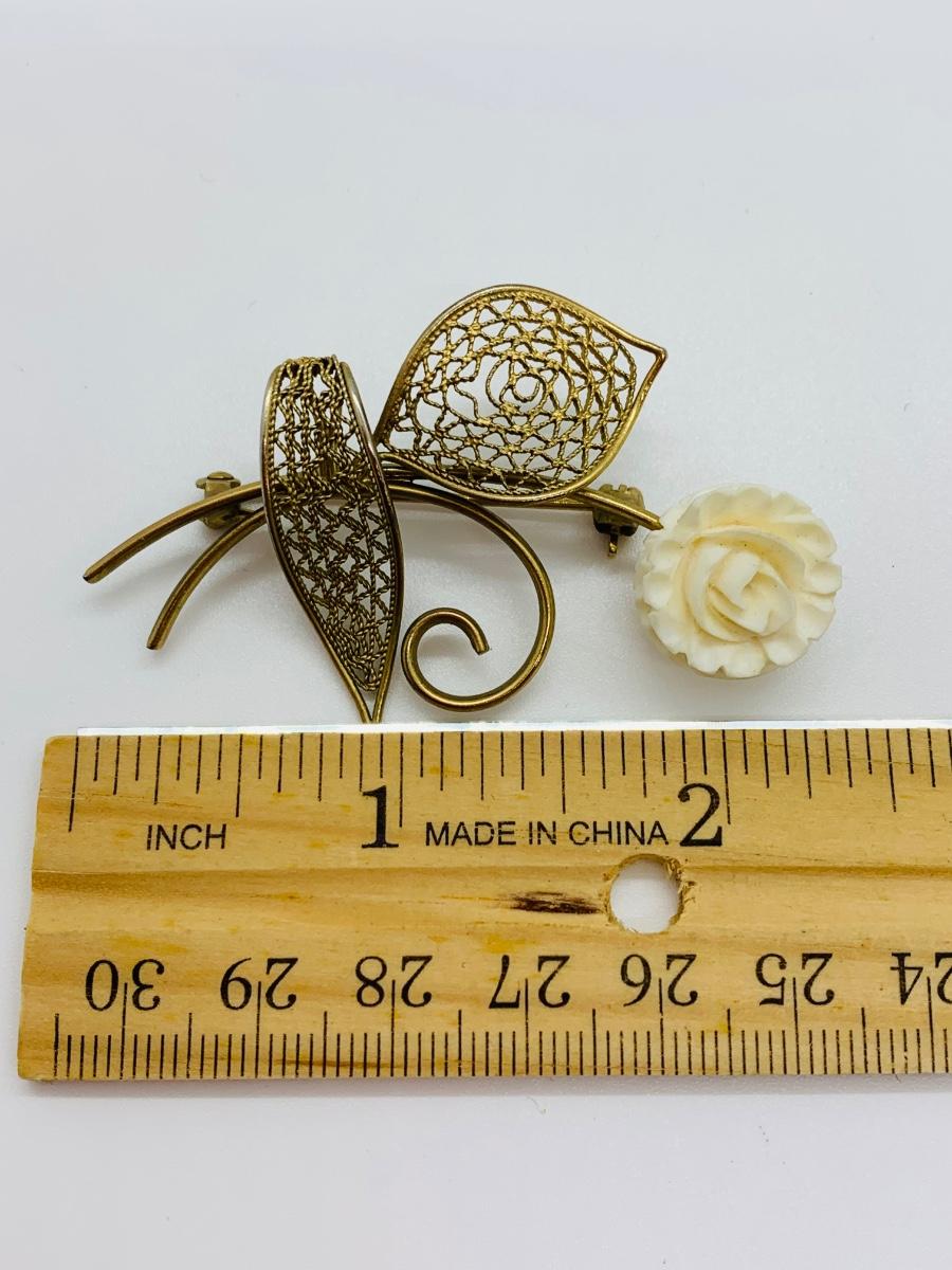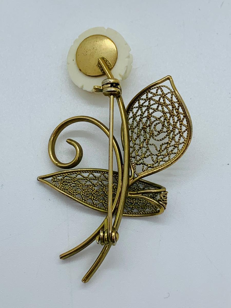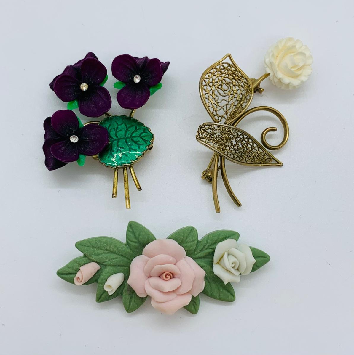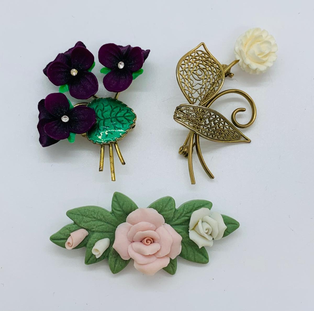 LOT 17R: Floral Brooches: Goldtone, Resin, Ceramic