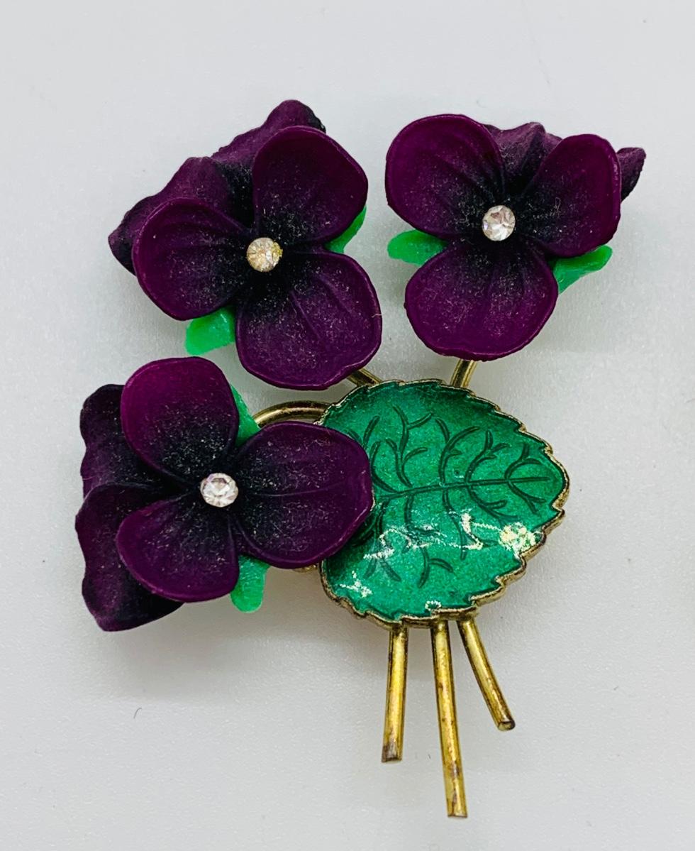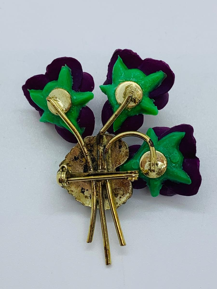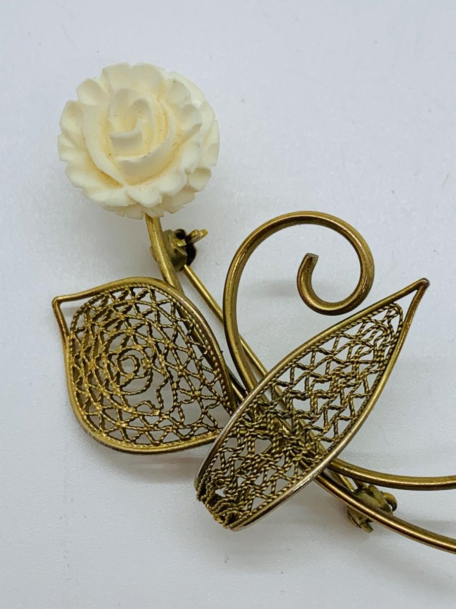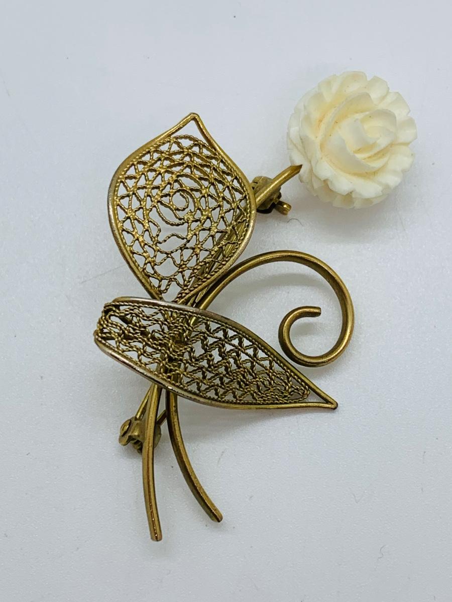 LOT 17R: Floral Brooches: Goldtone, Resin, Ceramic