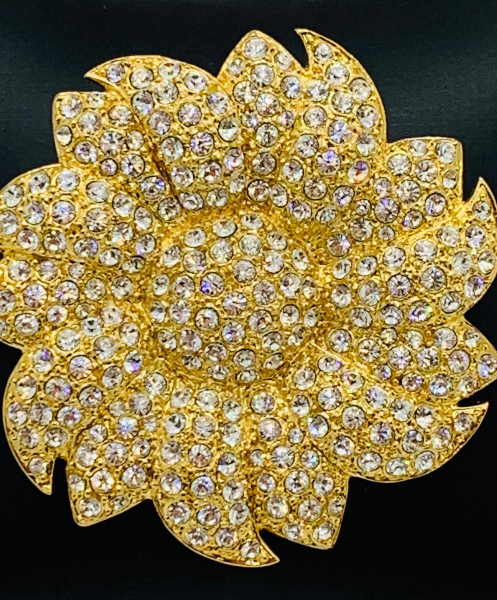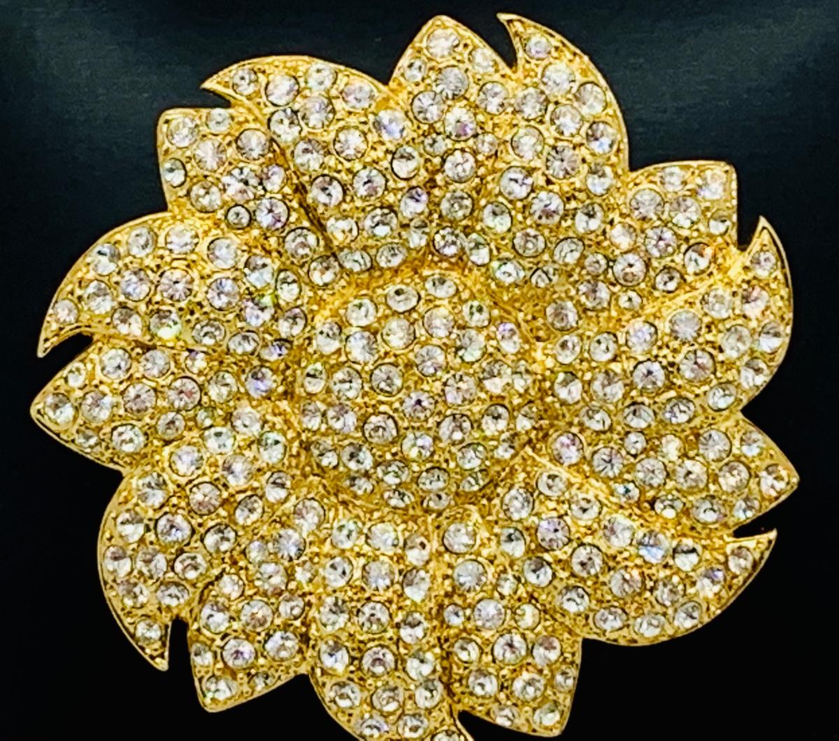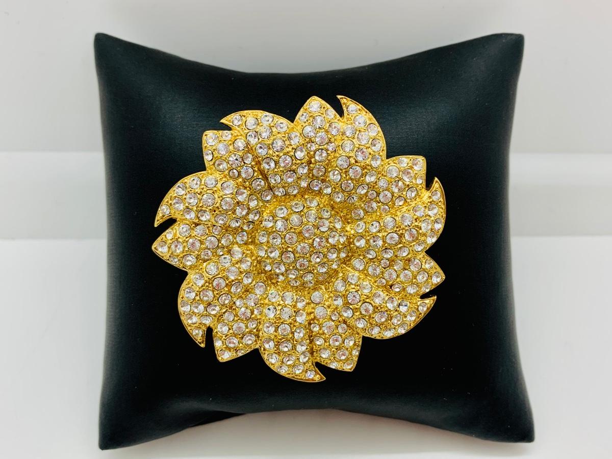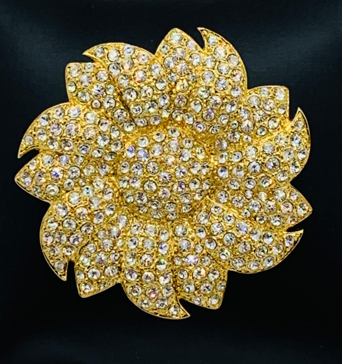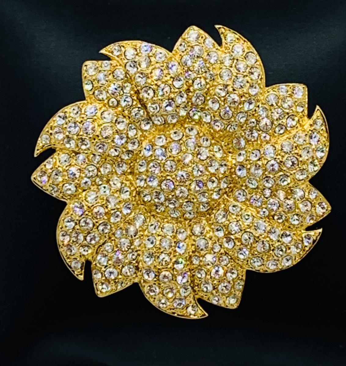 LOT 18R: Beautiful "JBK" Crystal & Goldtone Floral Brooch