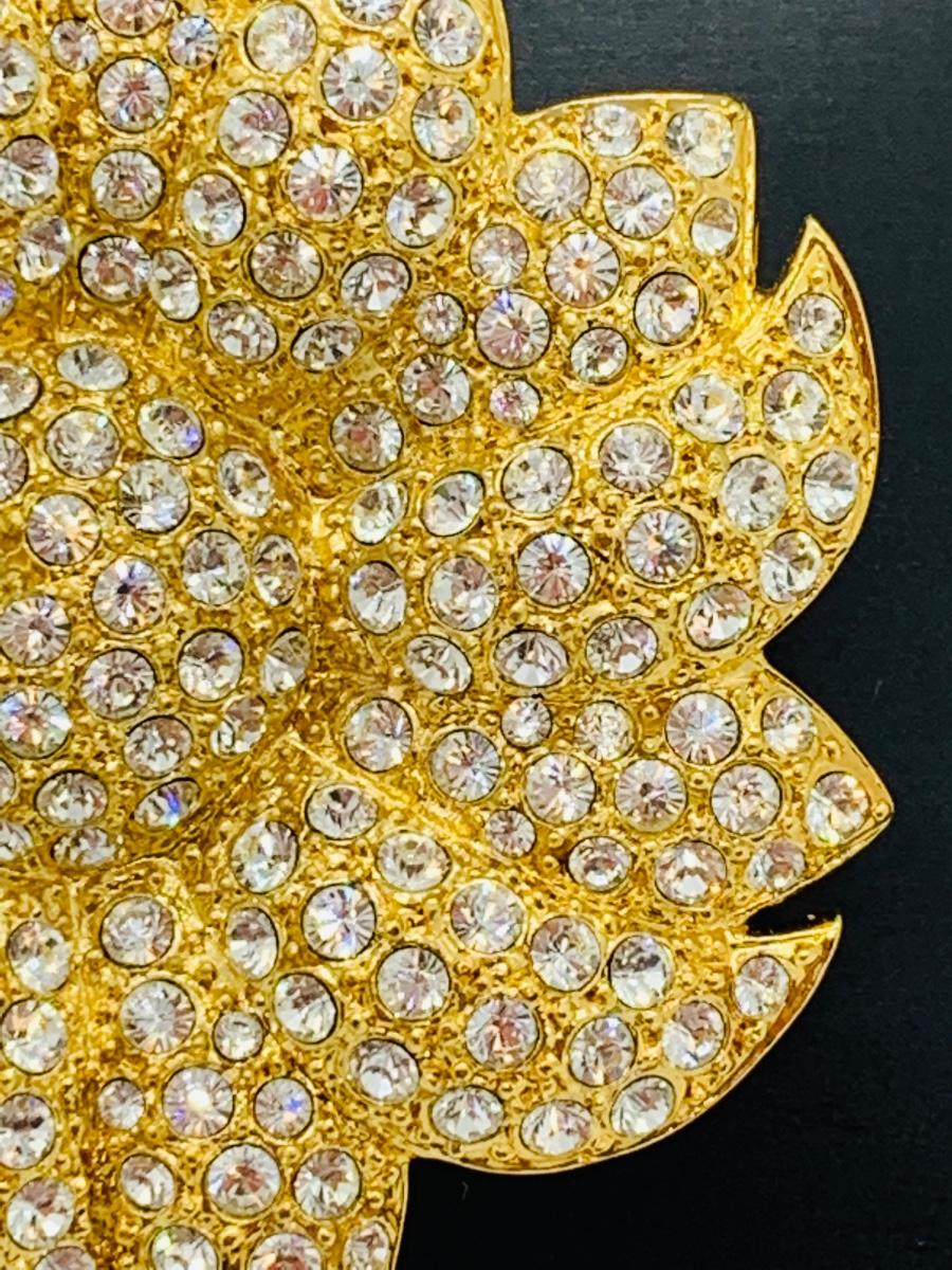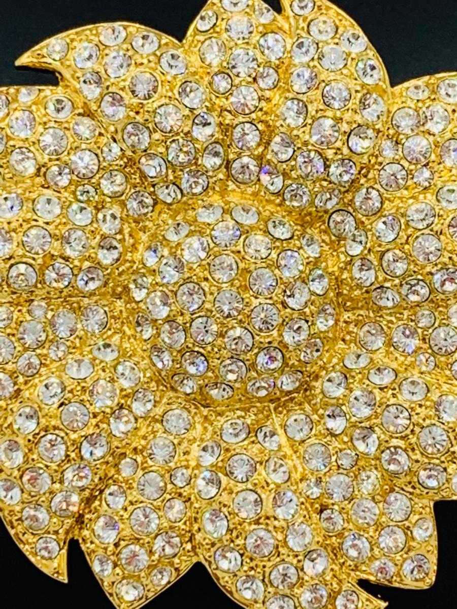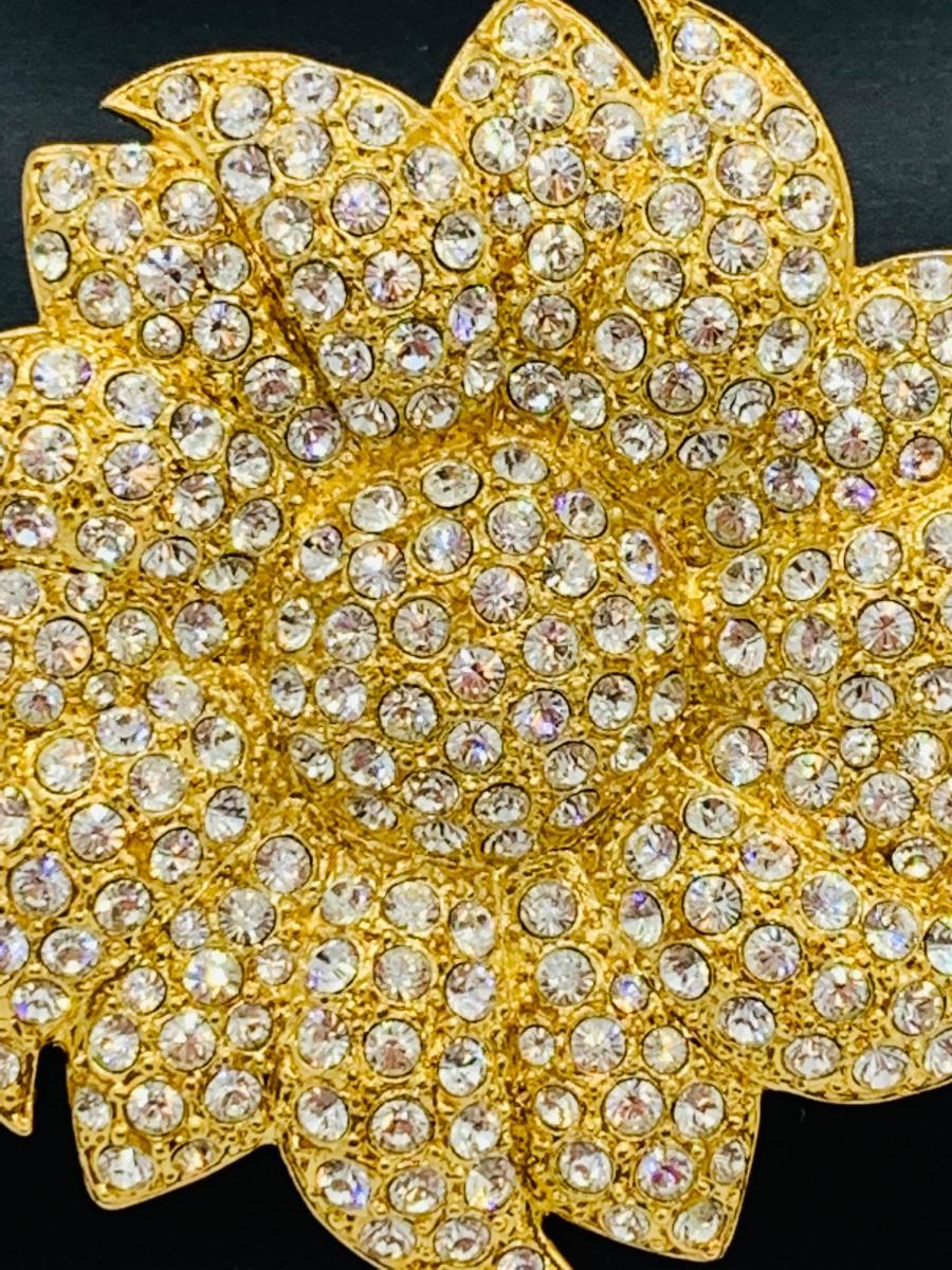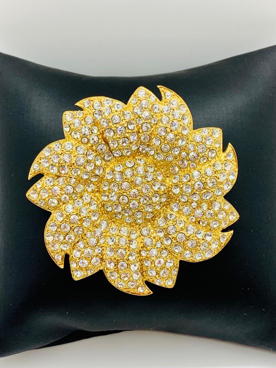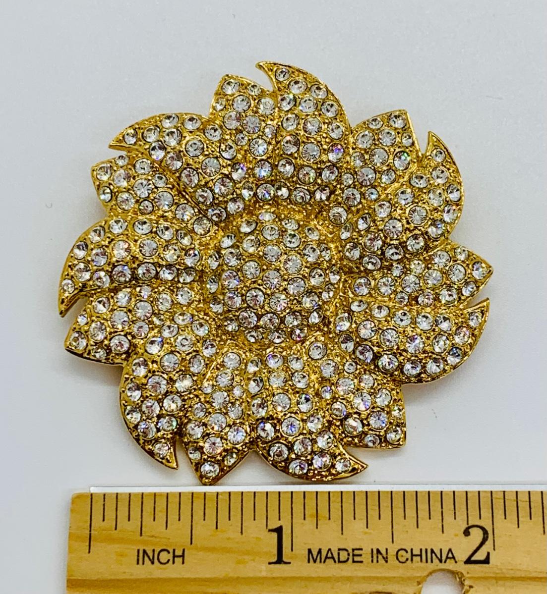 LOT 18R: Beautiful "JBK" Crystal & Goldtone Floral Brooch