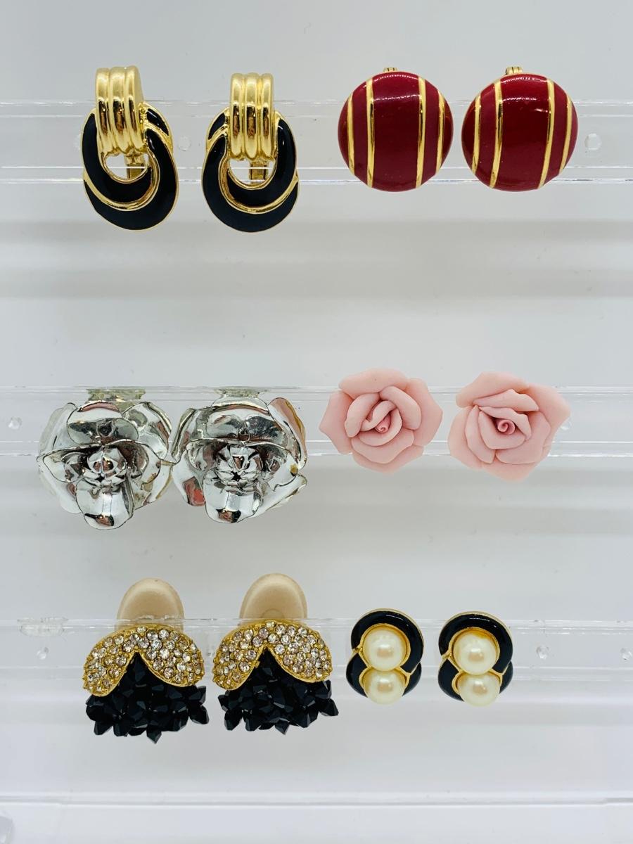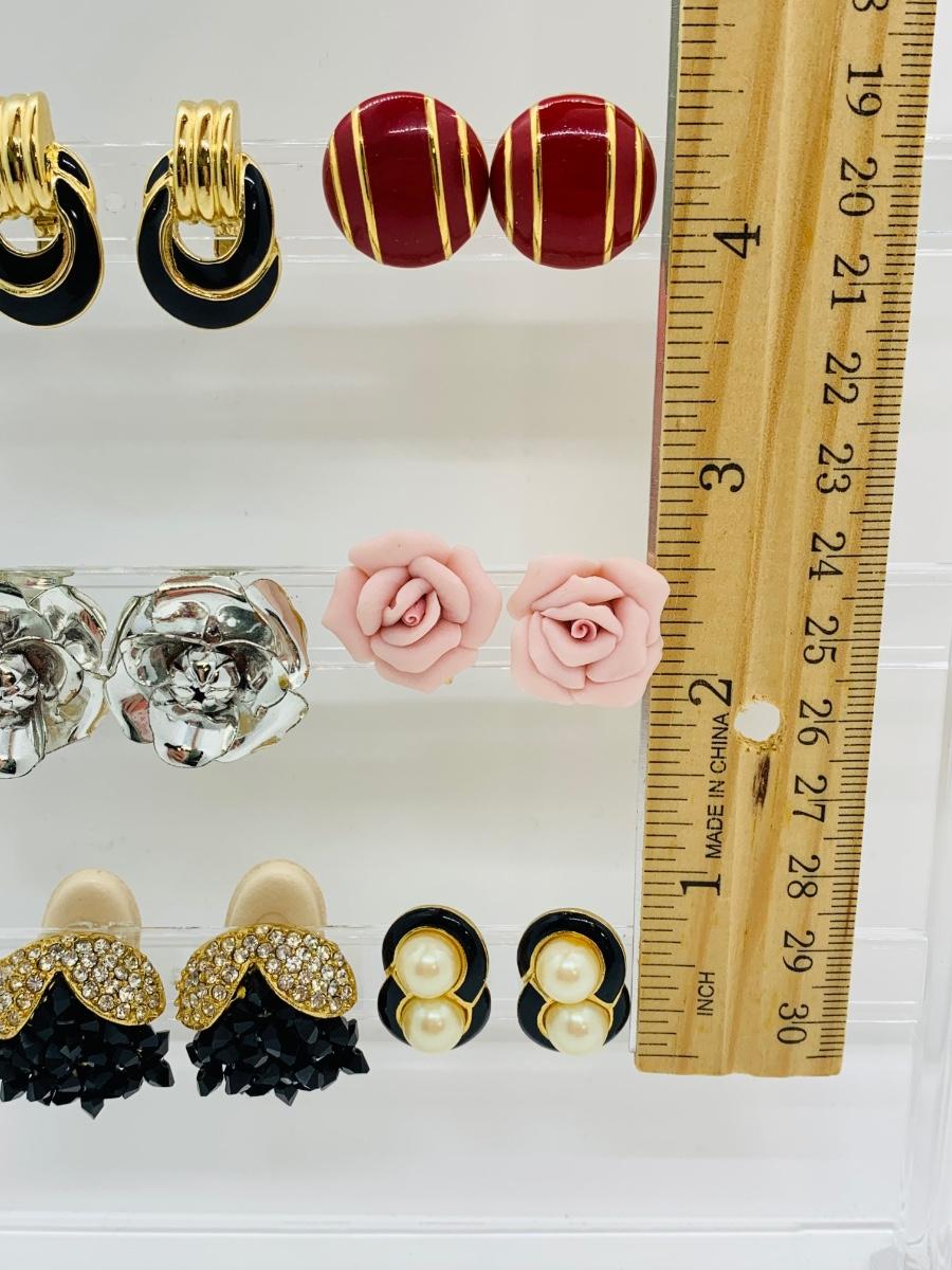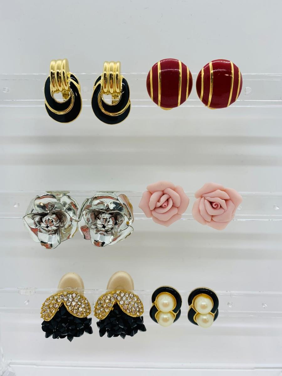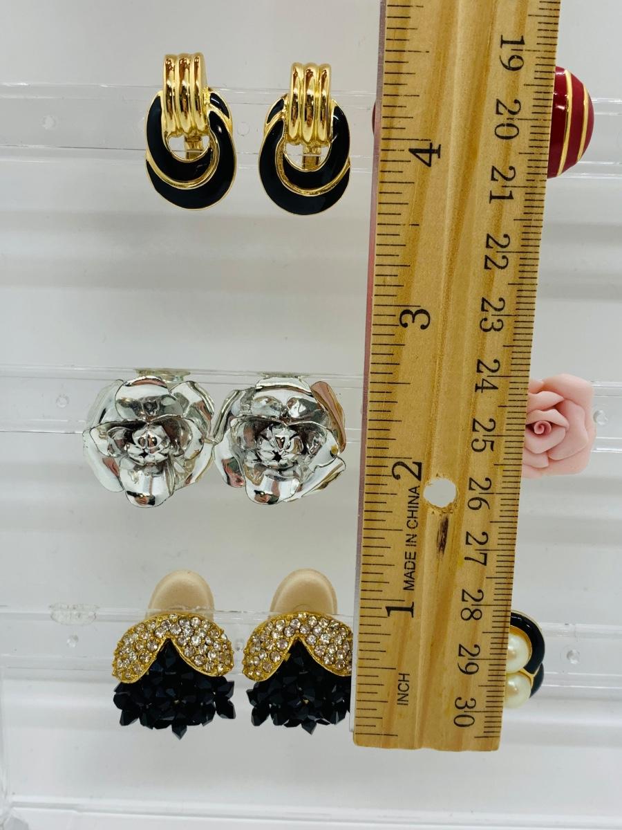 LOT 21R: Vintage Clip On Earrings: Silvertone Floral, Goldtone/Black, Faux Pearls w/Black & Goldtone & More