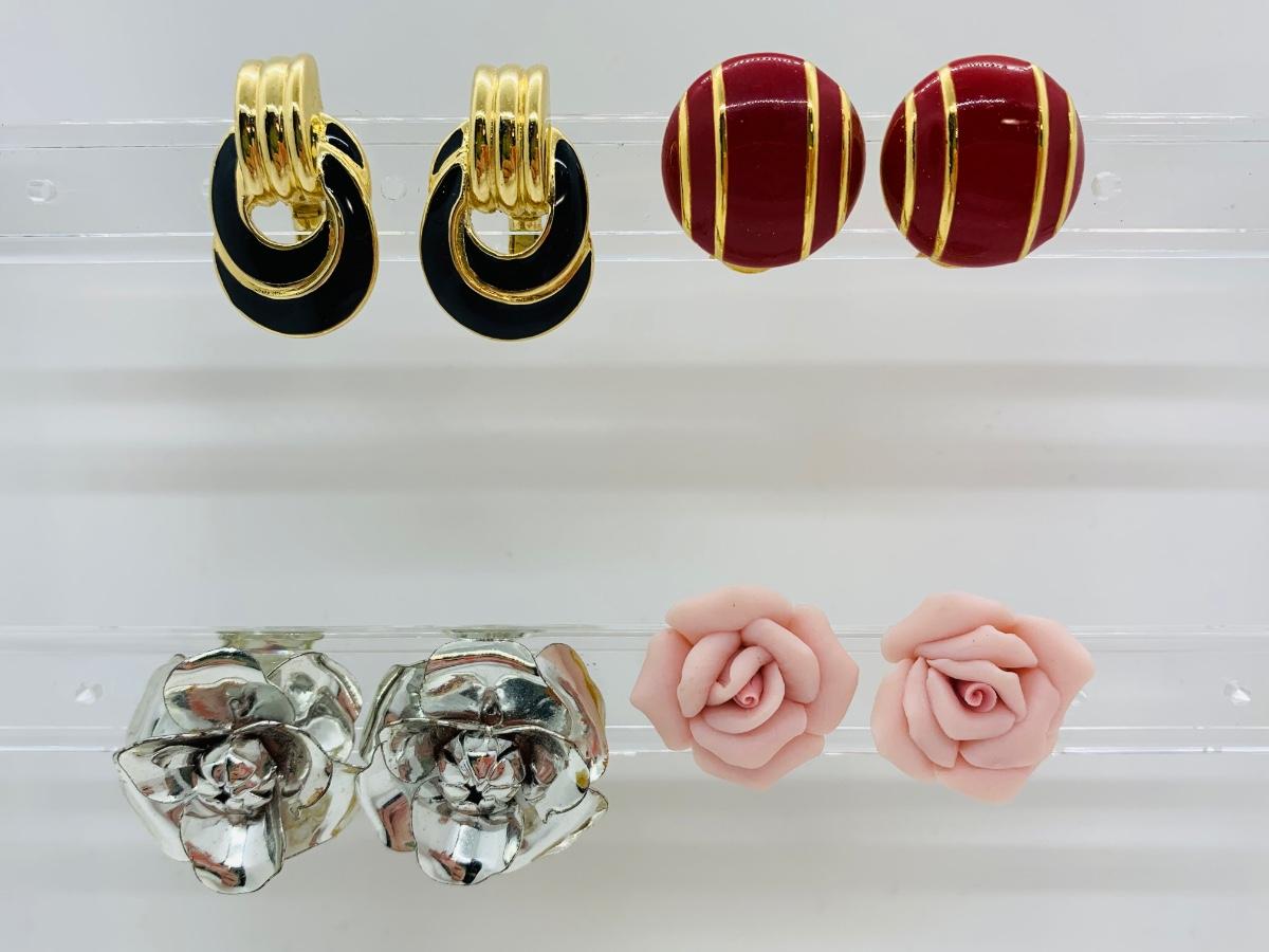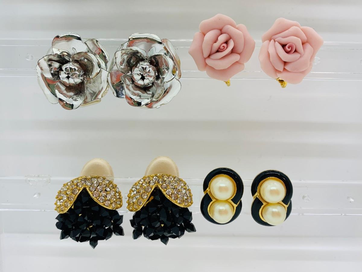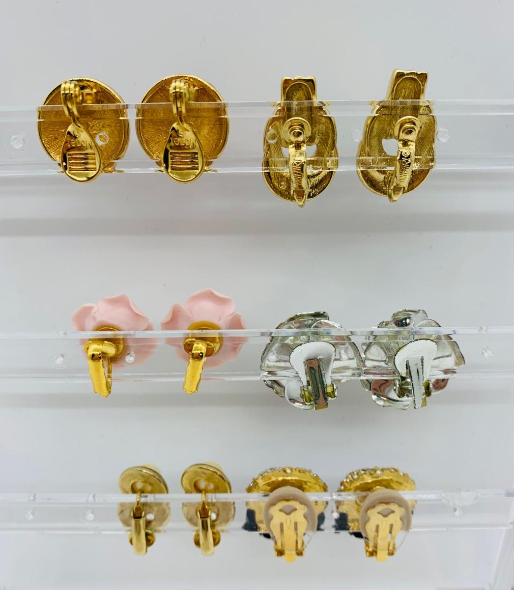 LOT 21R: Vintage Clip On Earrings: Silvertone Floral, Goldtone/Black, Faux Pearls w/Black & Goldtone & More