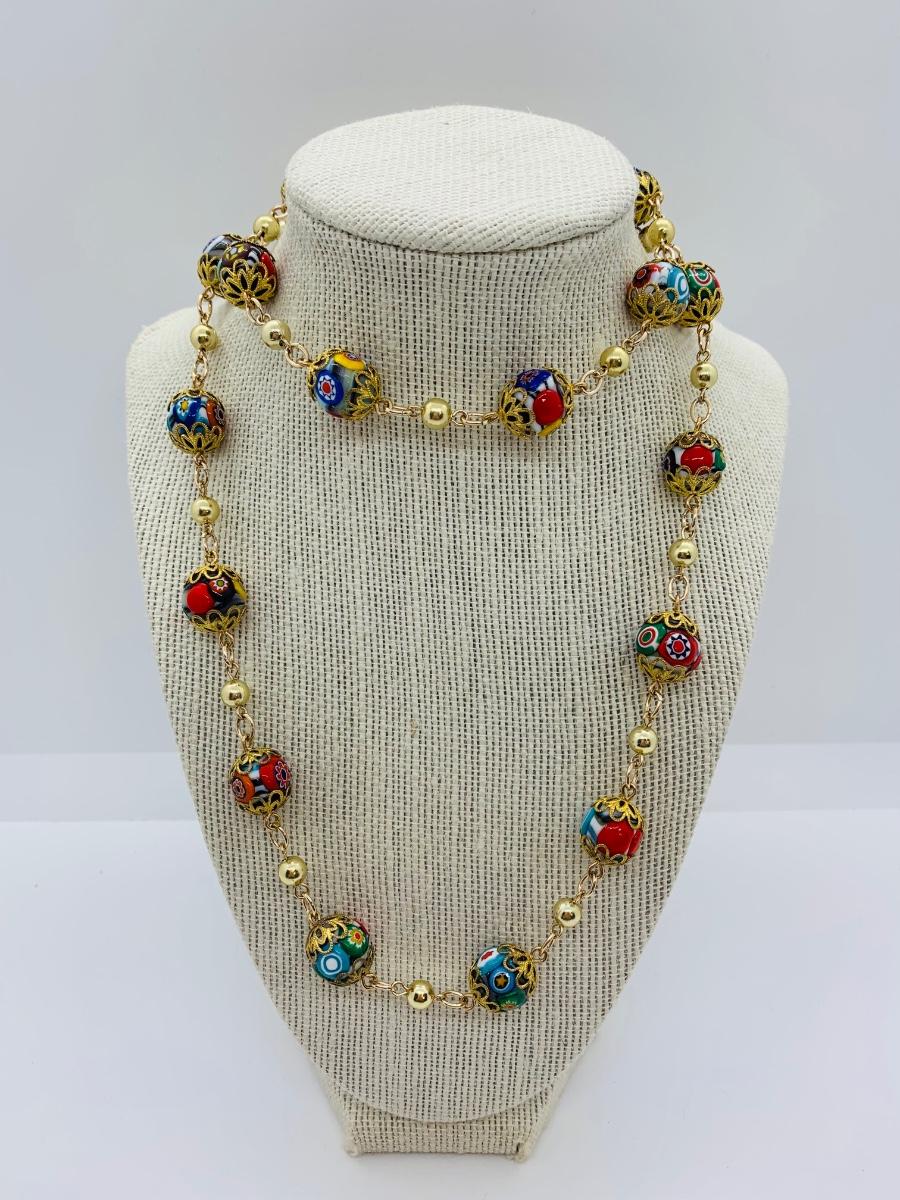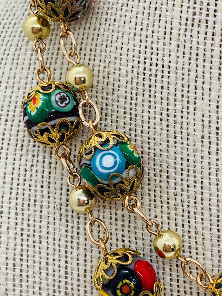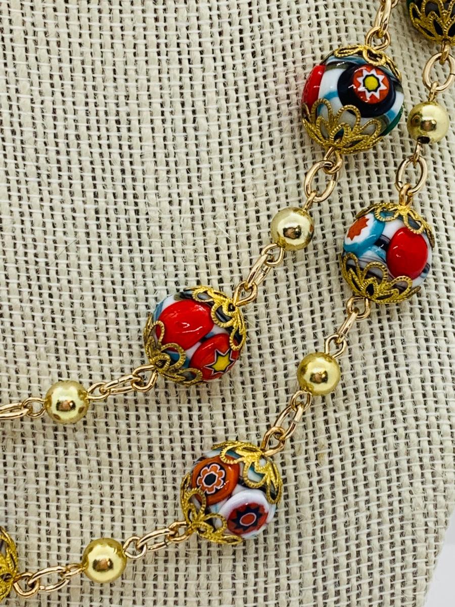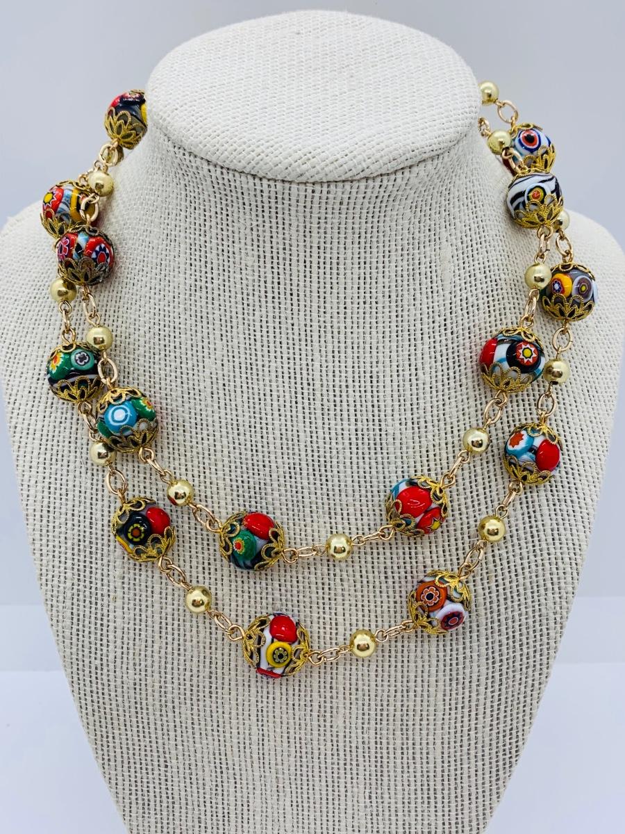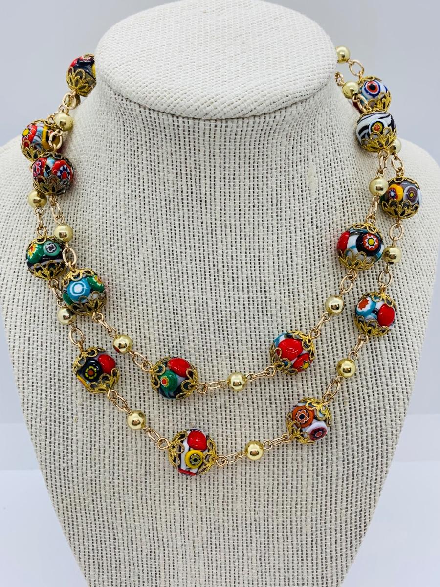 LOT 22R: Vintage "Like New" Venetian Murano Millefori Glass Beaded "Wedding Cake" Necklace 32"
