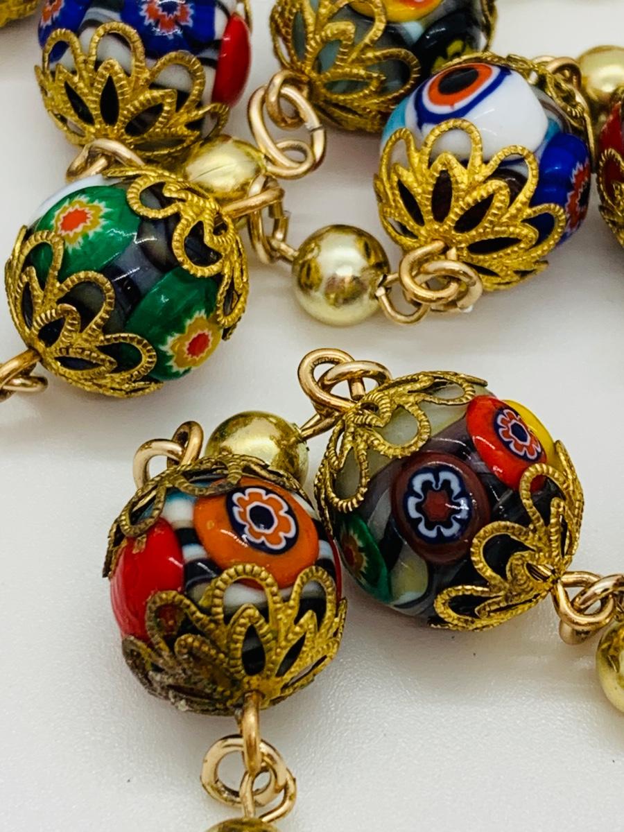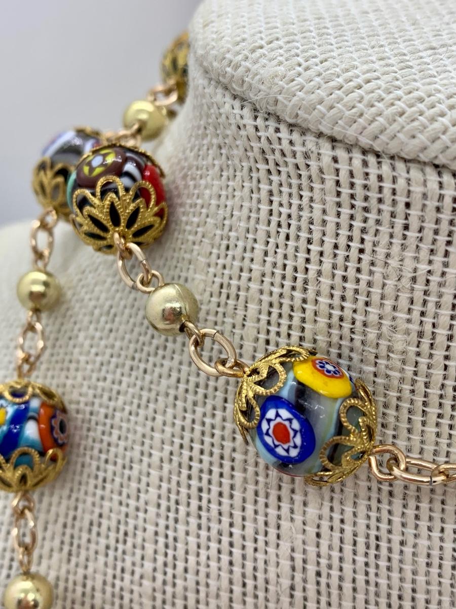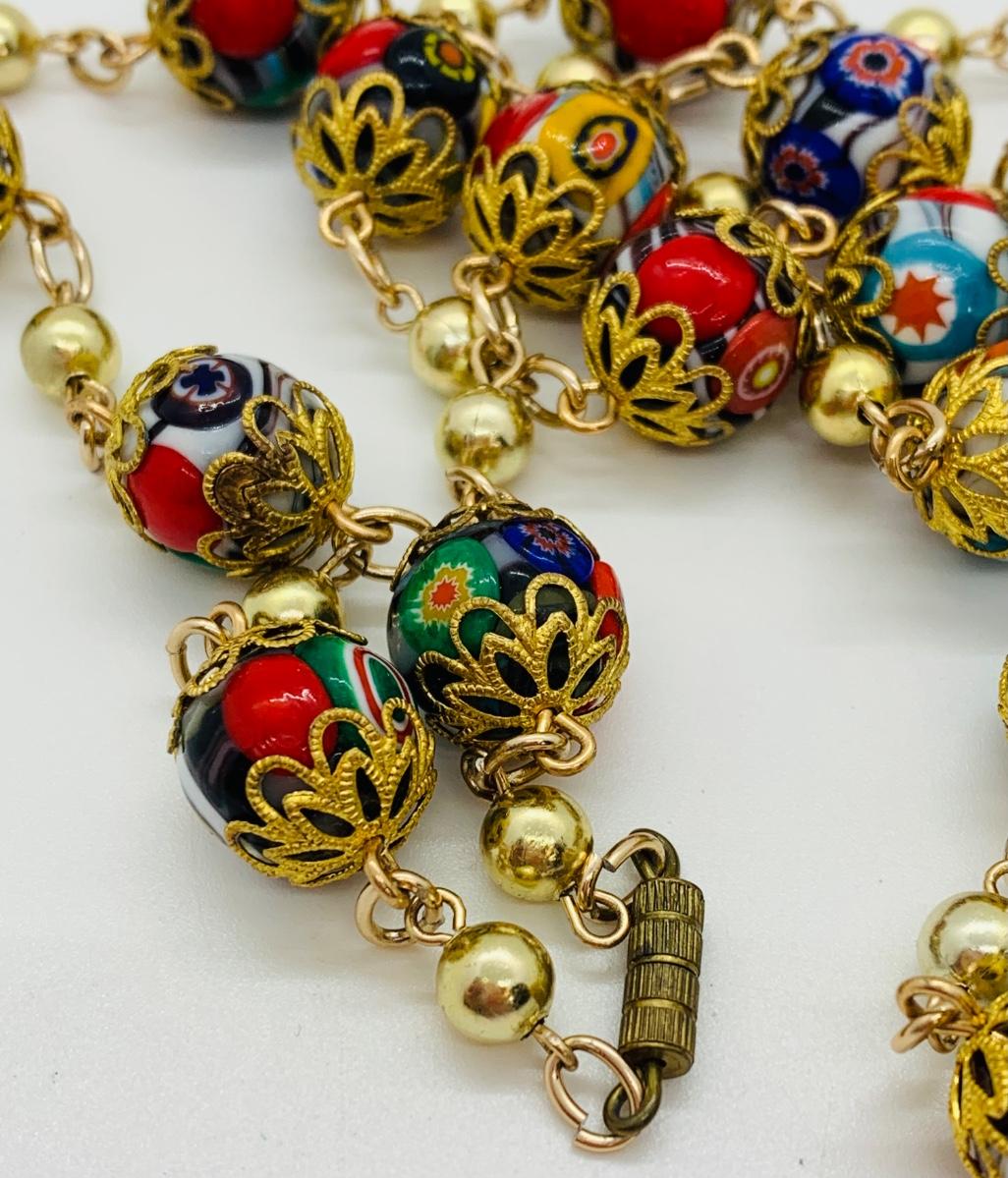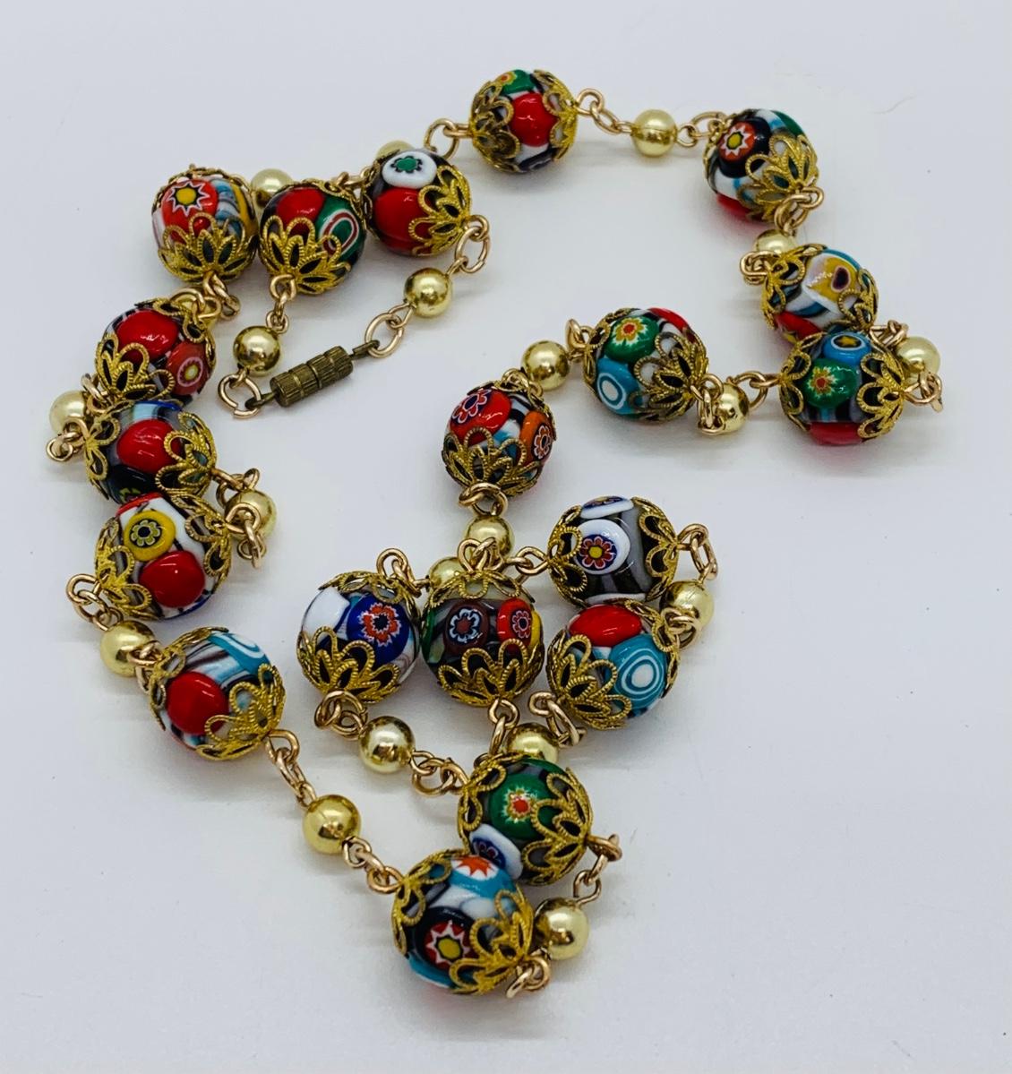 LOT 22R: Vintage "Like New" Venetian Murano Millefori Glass Beaded "Wedding Cake" Necklace 32"