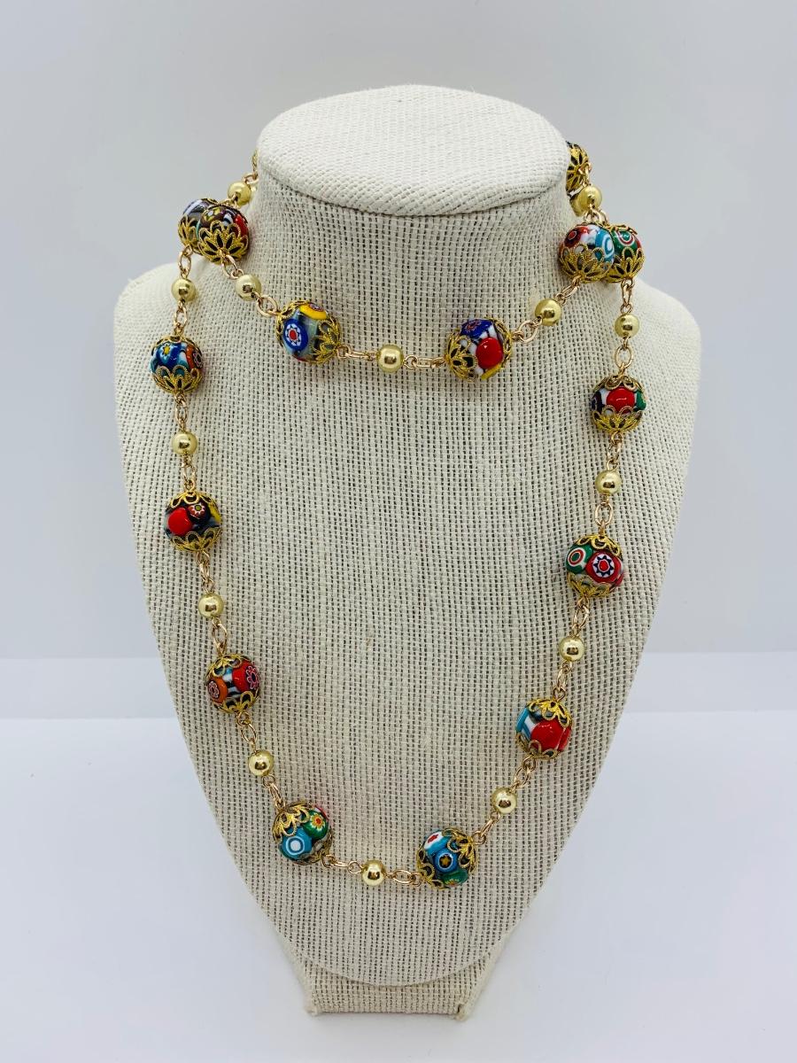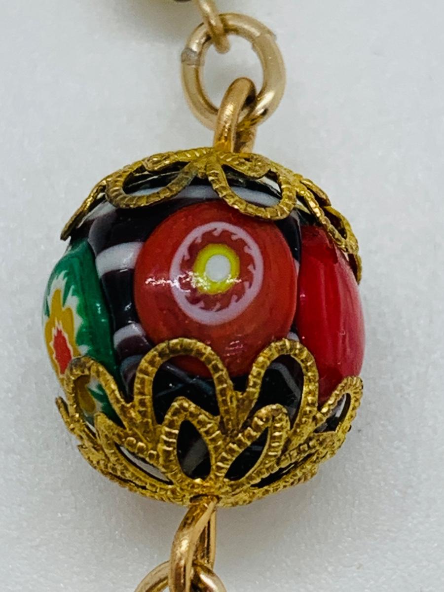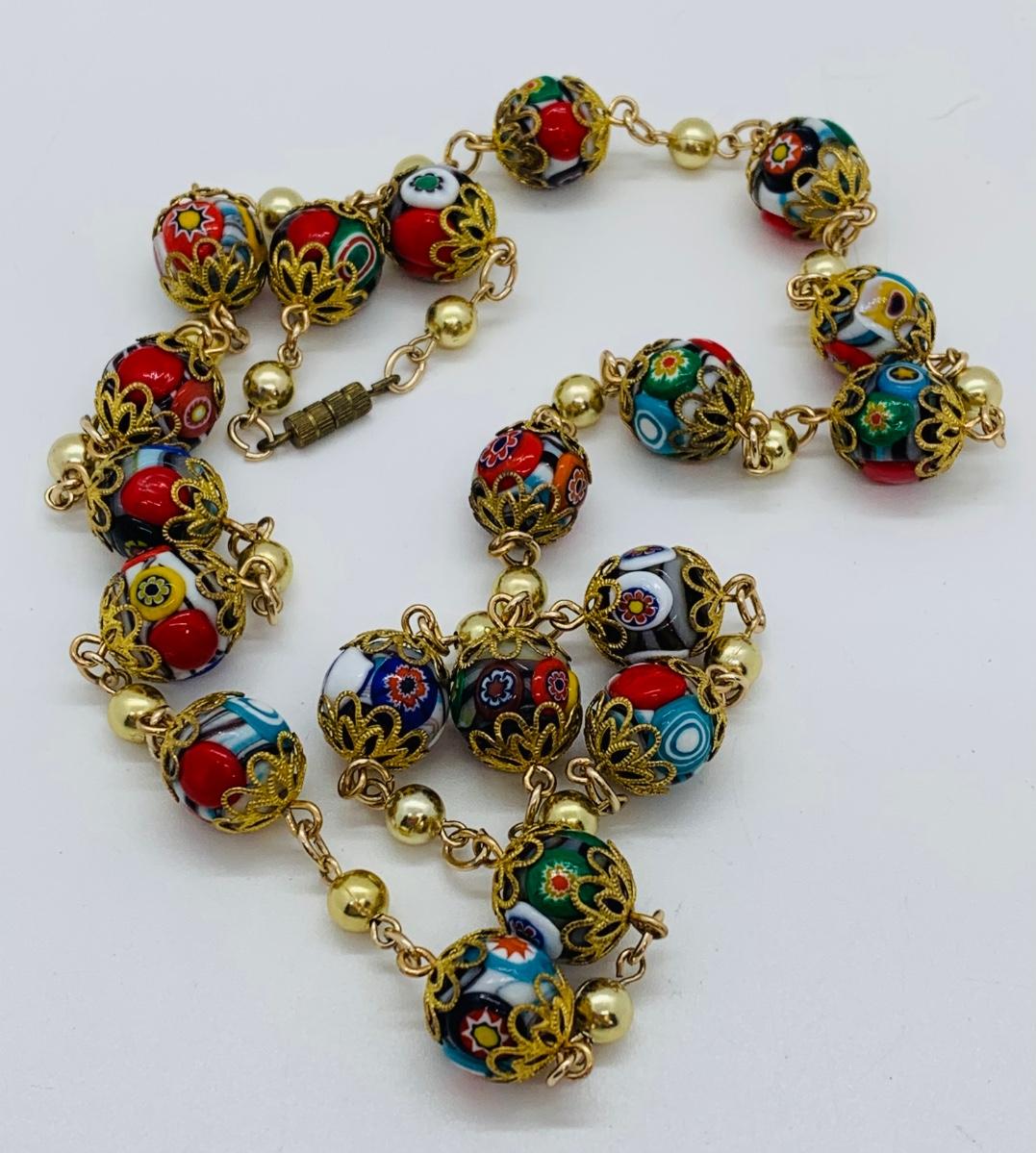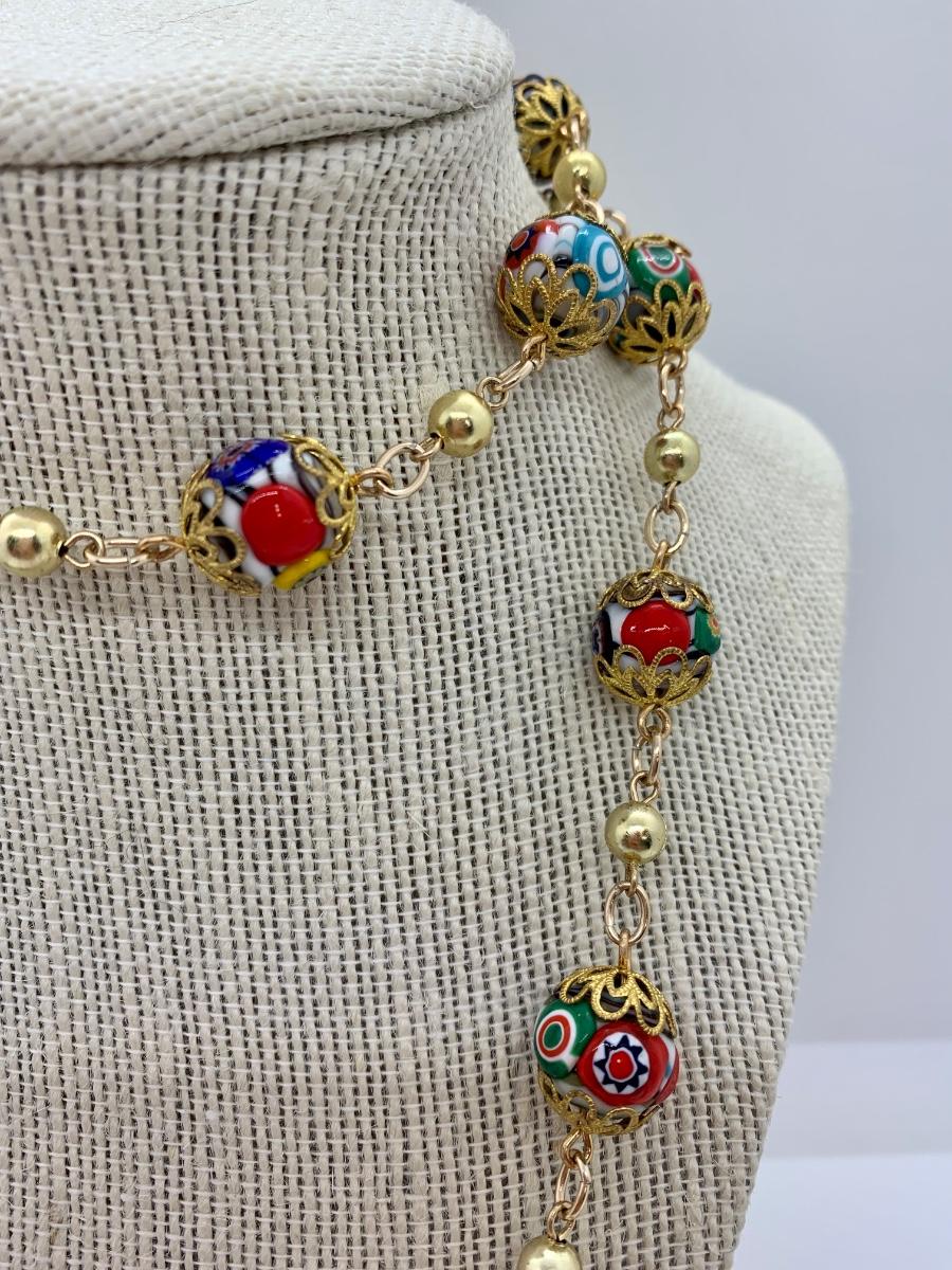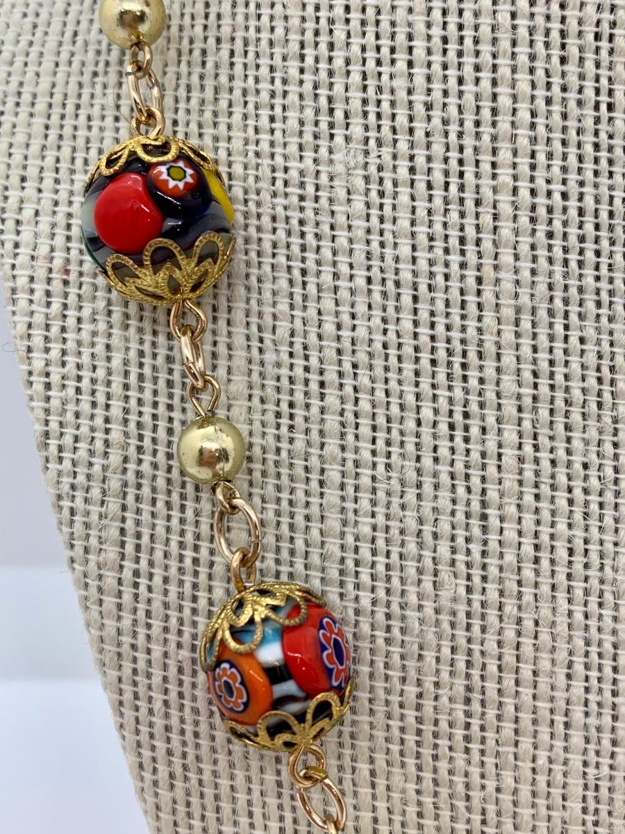 LOT 22R: Vintage "Like New" Venetian Murano Millefori Glass Beaded "Wedding Cake" Necklace 32"