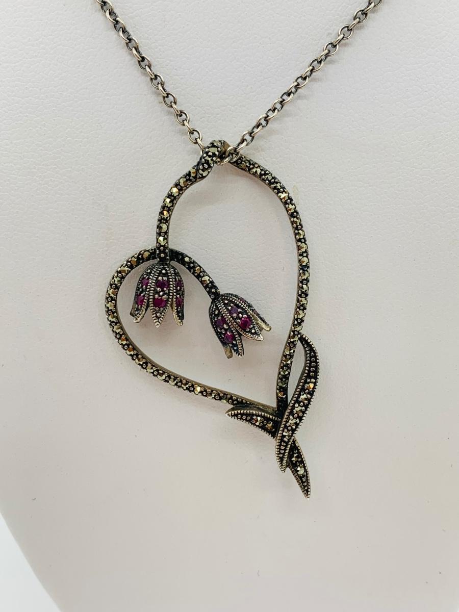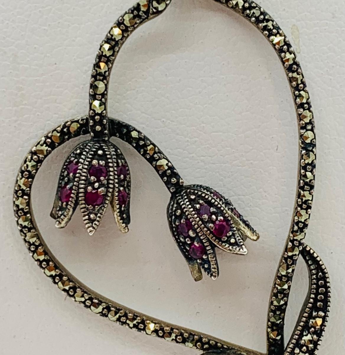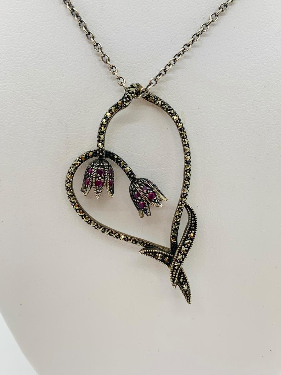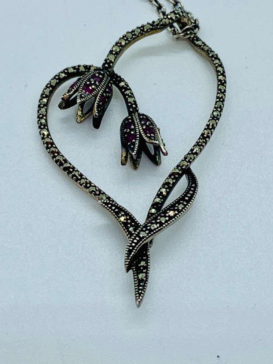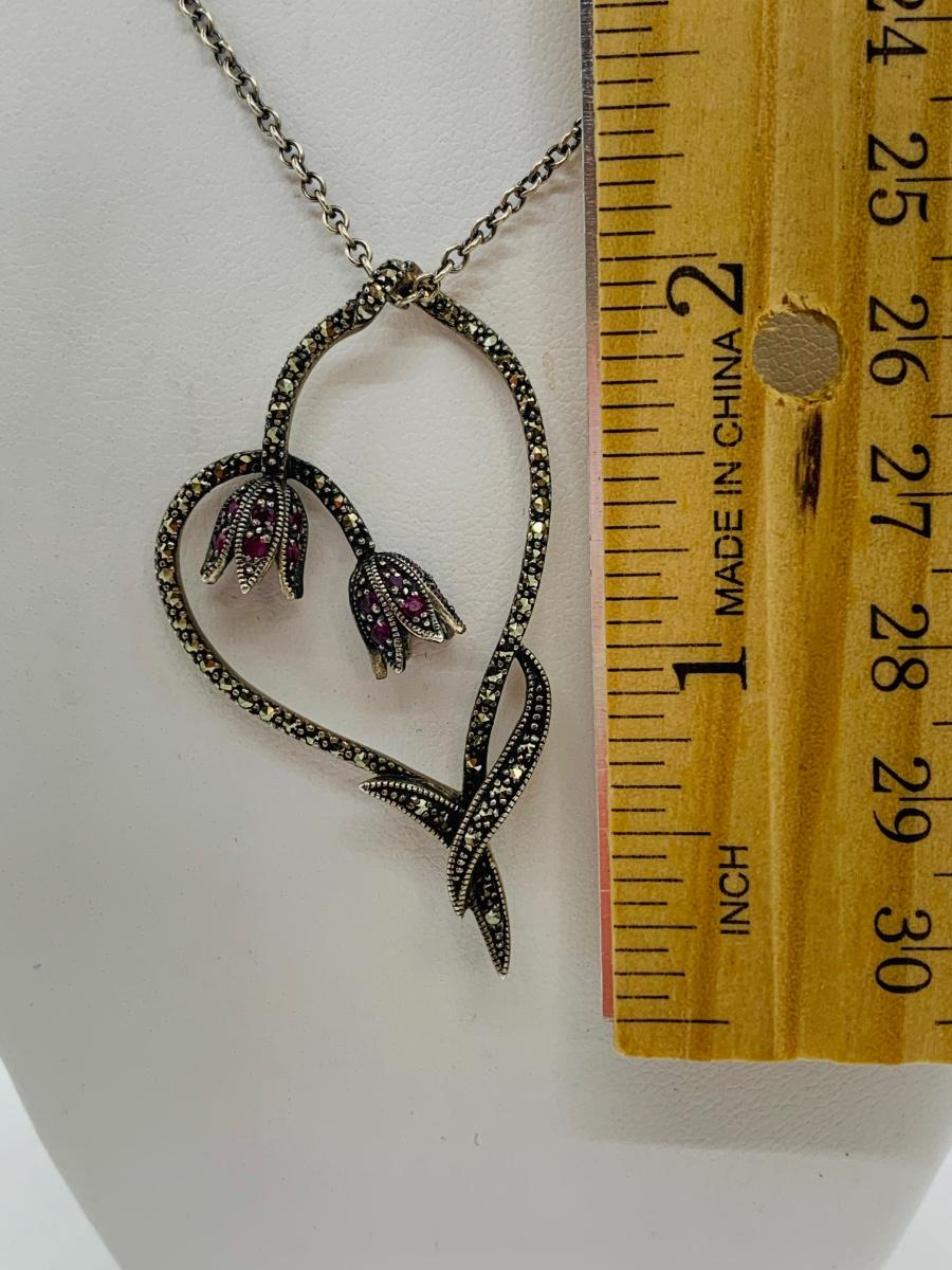 LOT 24R: Marcasite (925) Heart & Floral Pendant on 16" Chain (not sterling)