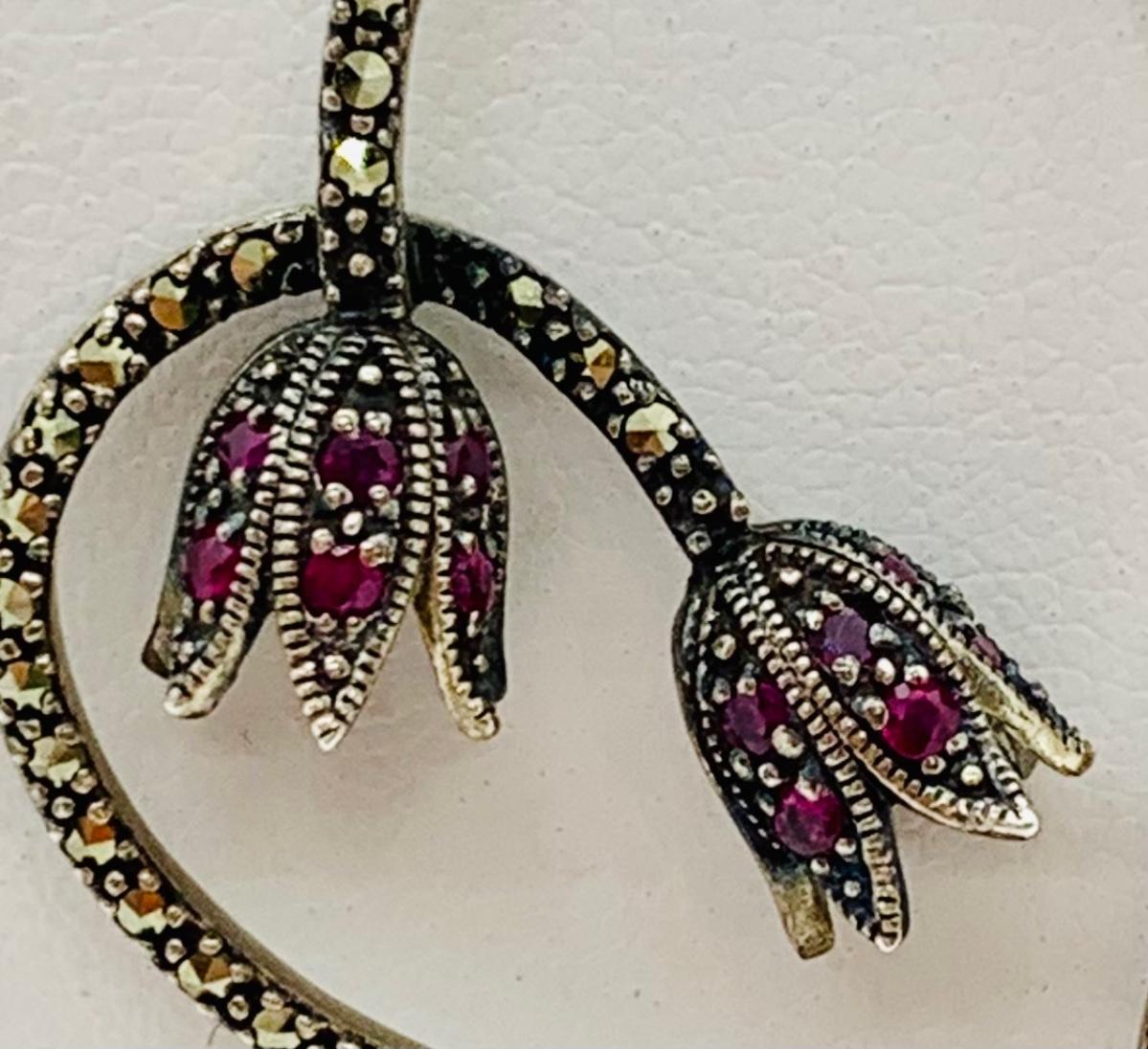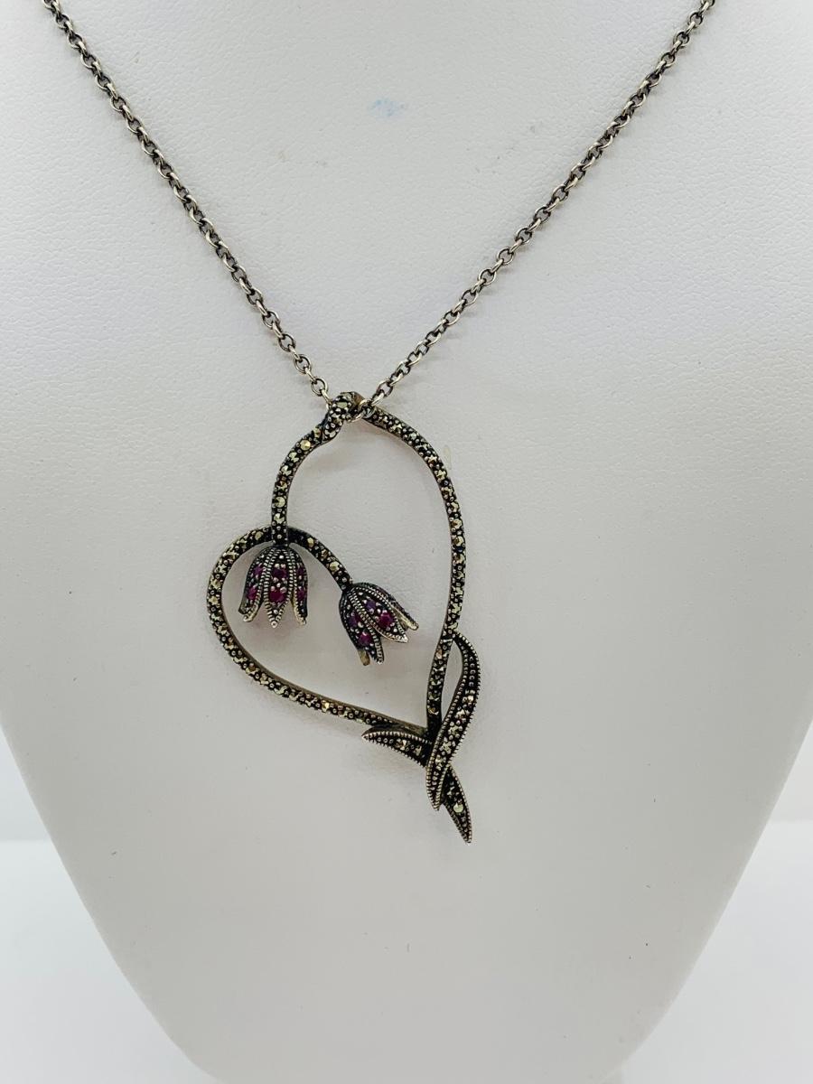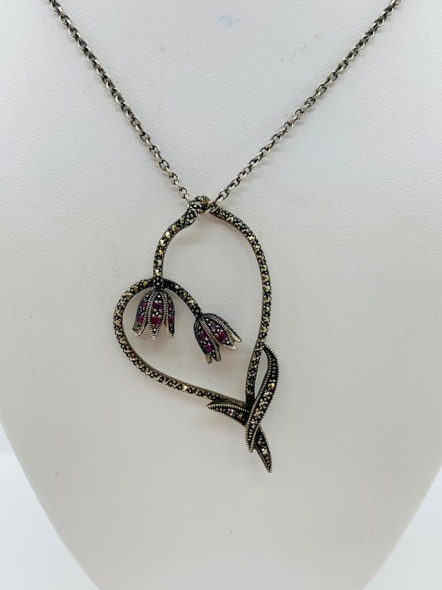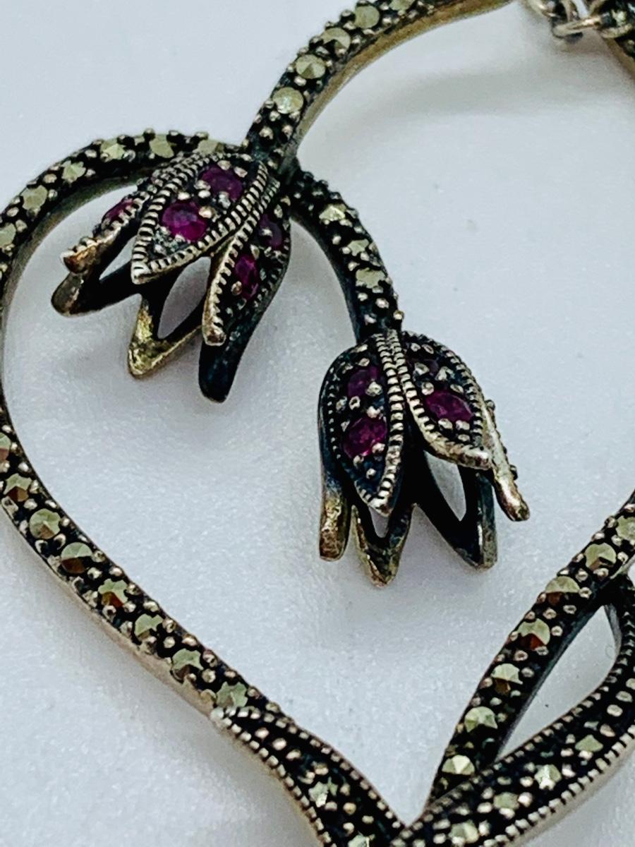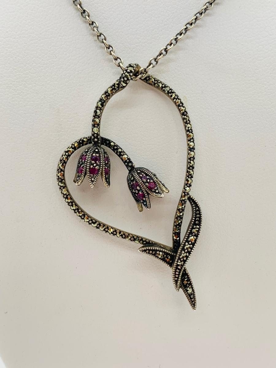 LOT 24R: Marcasite (925) Heart & Floral Pendant on 16" Chain (not sterling)
