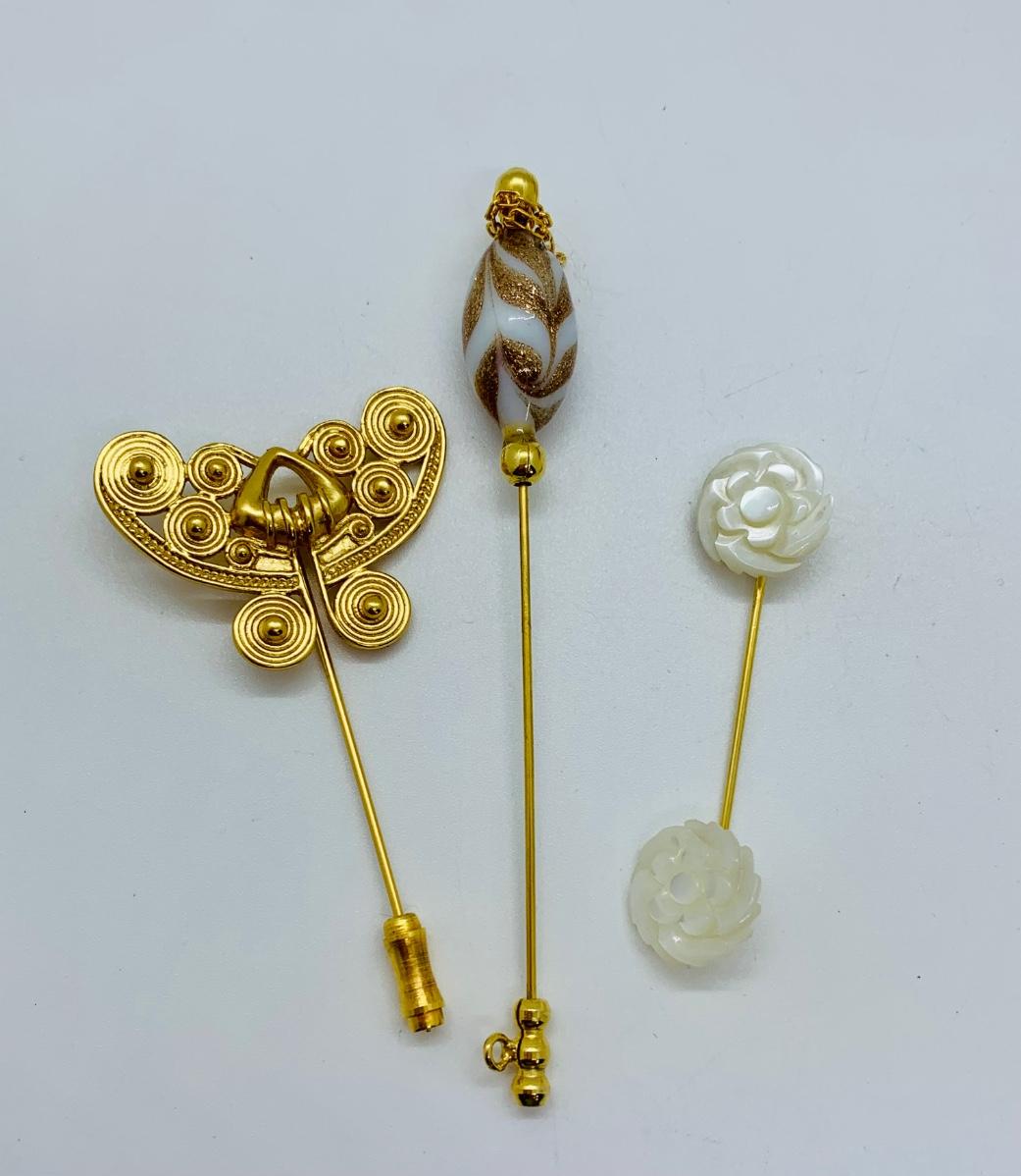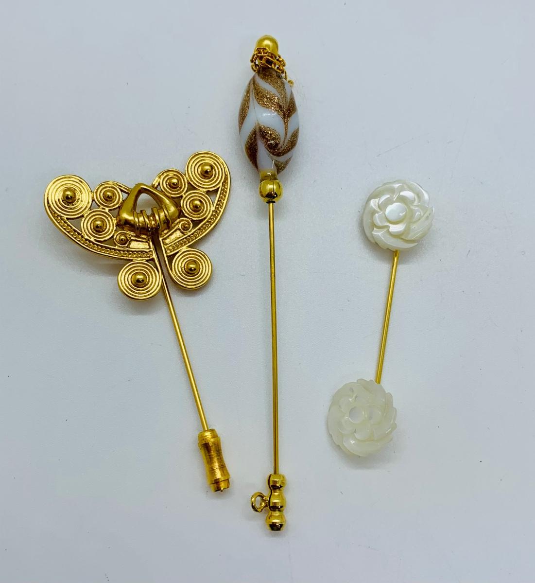 LOT 25R: Vintage Stick Pins Goldtone, Bead, Mother of Pearl
