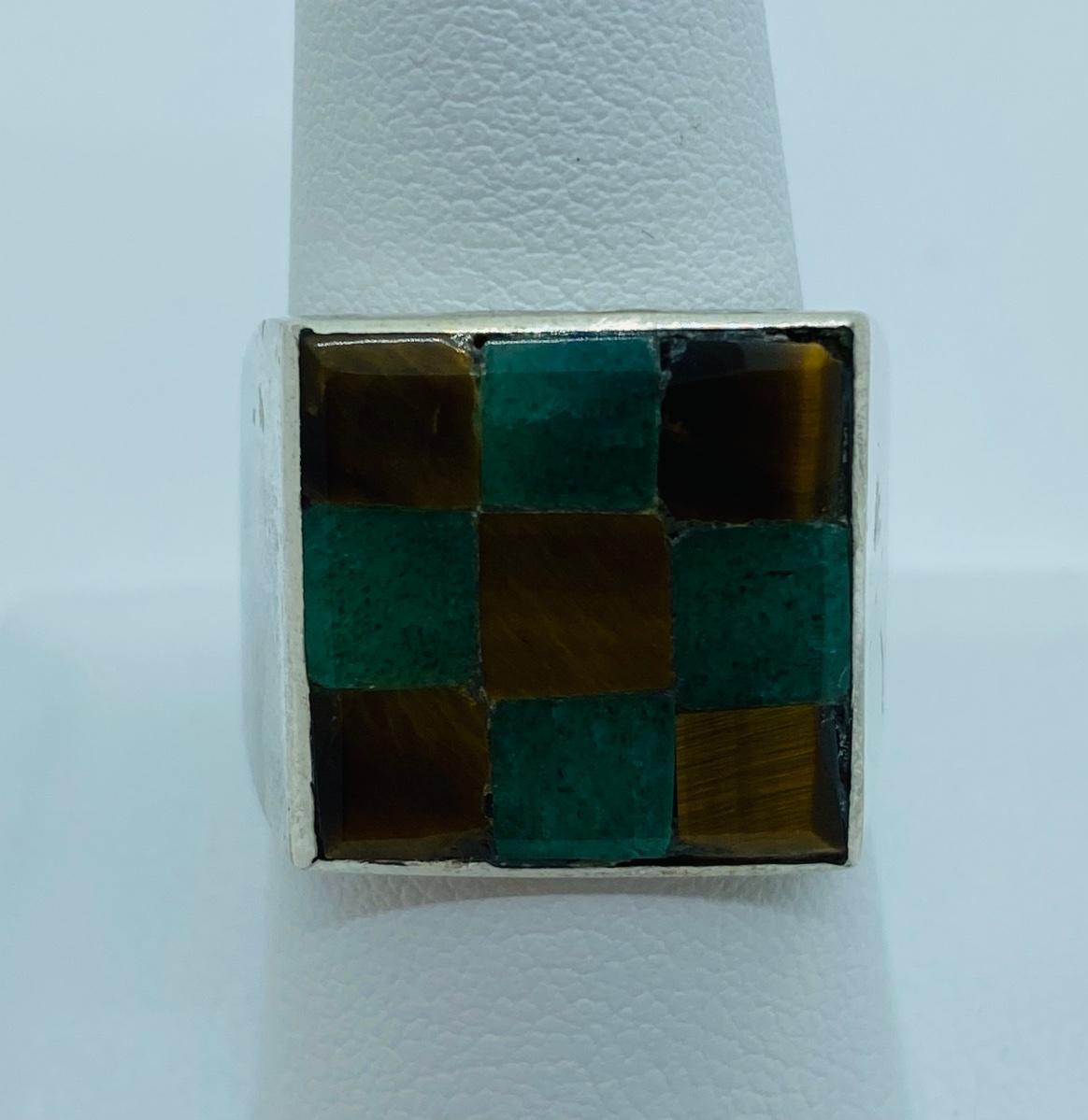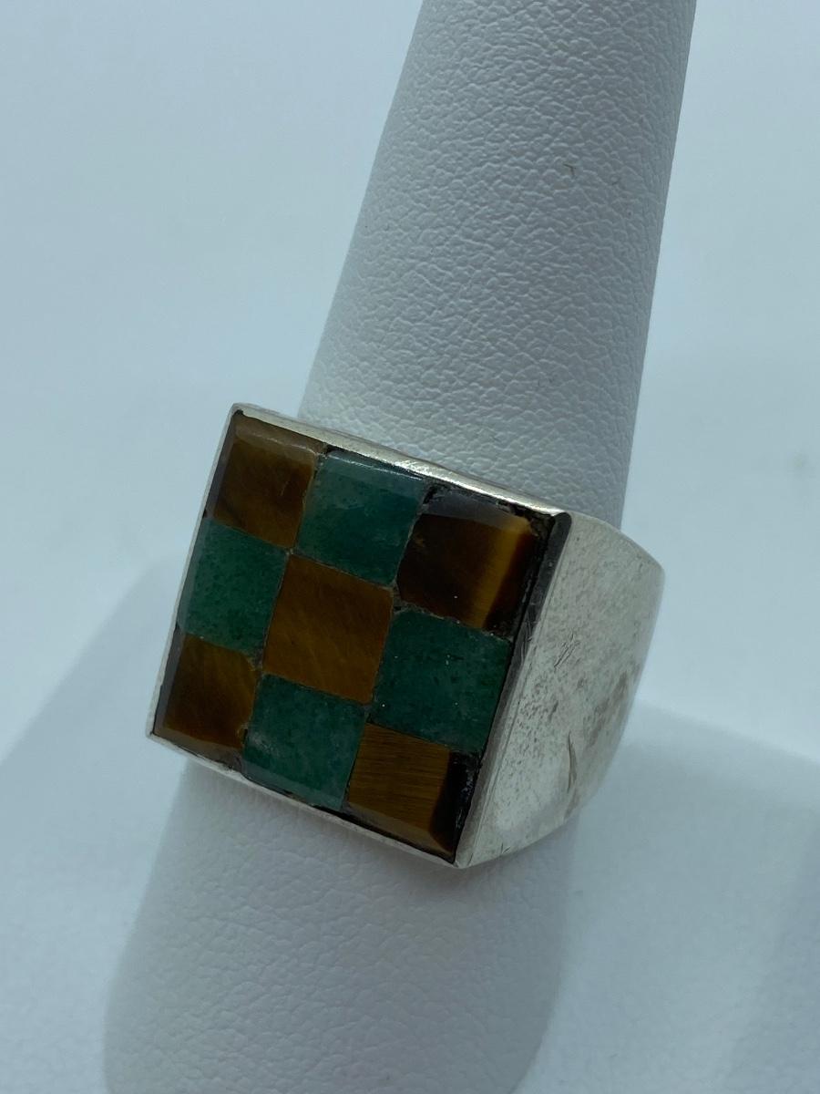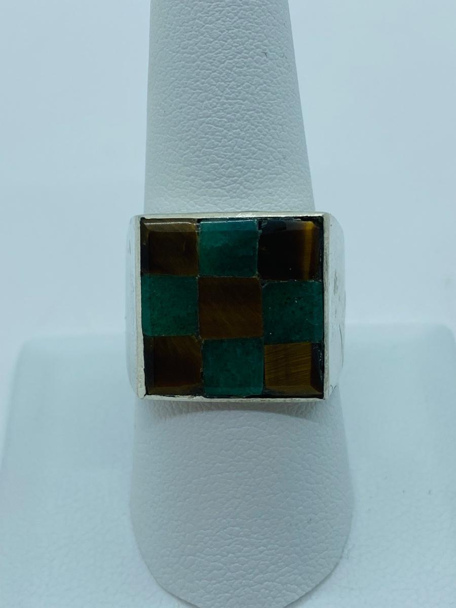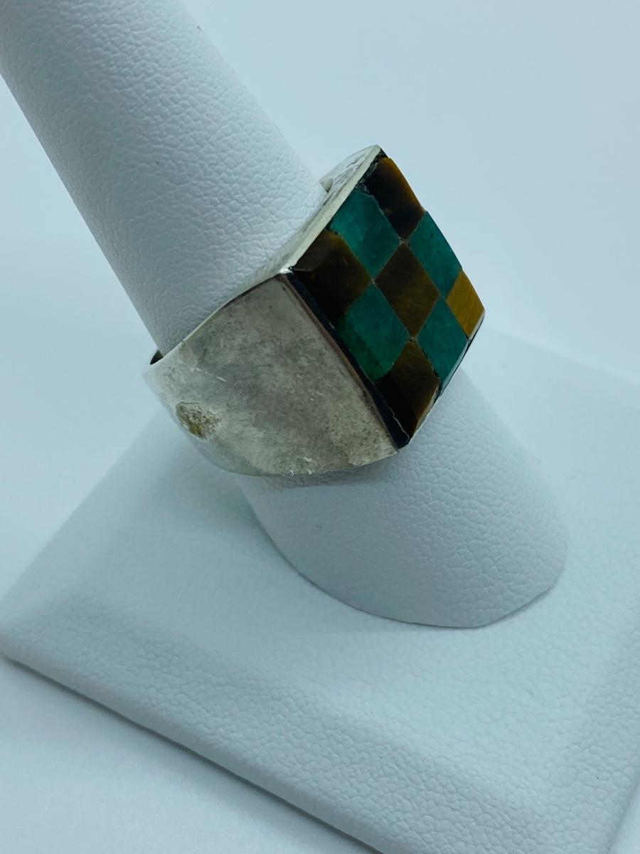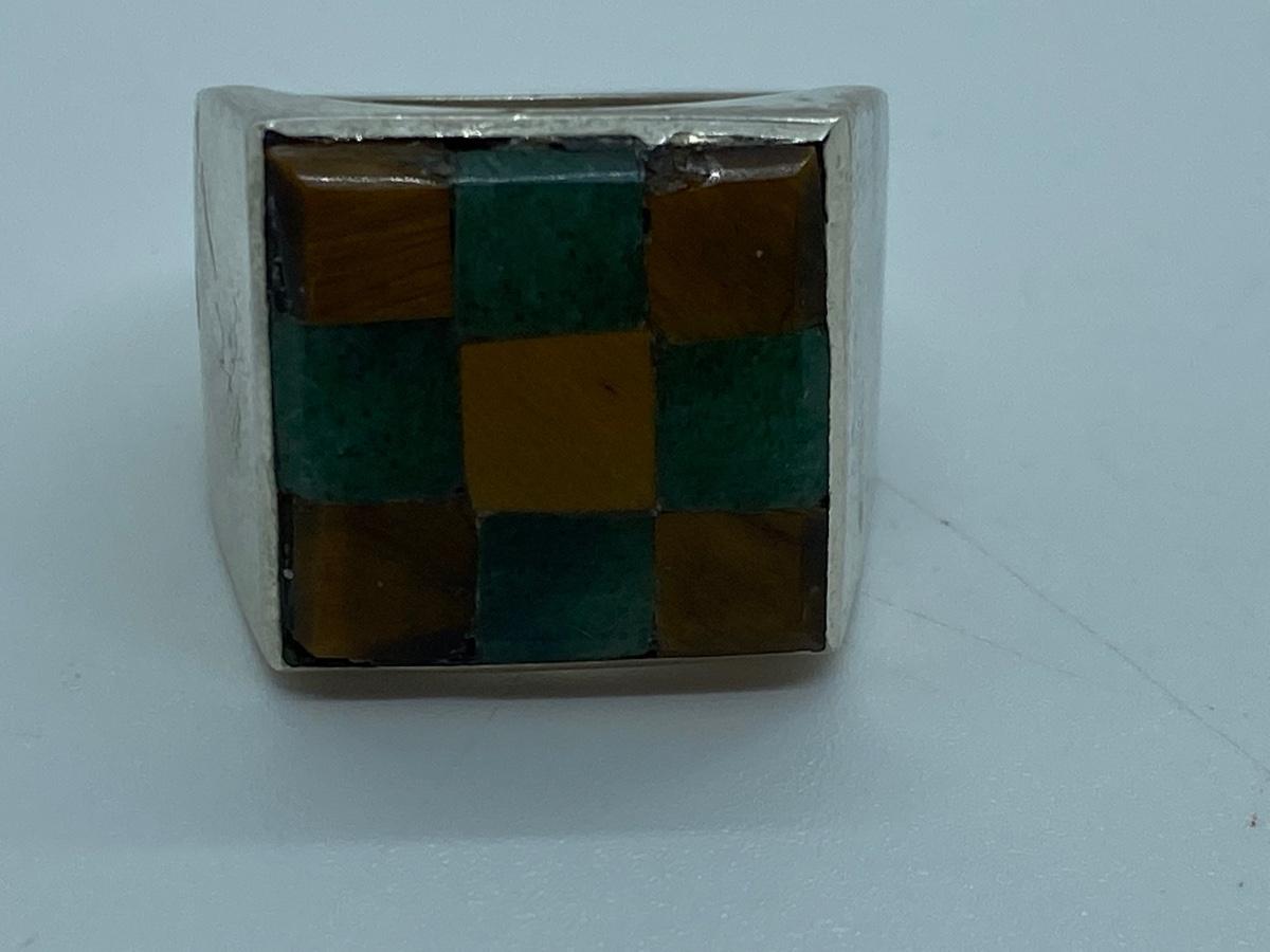 LOT 41C: Men's Sterling Silver Ring w/Multi Color Stones, sz 9