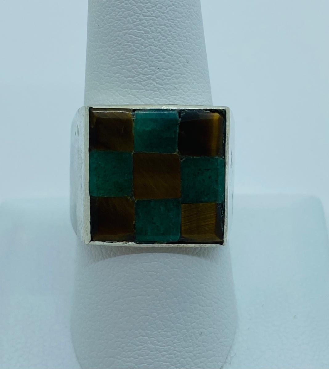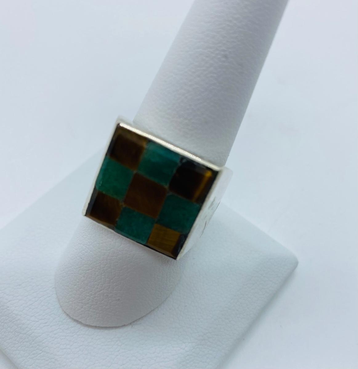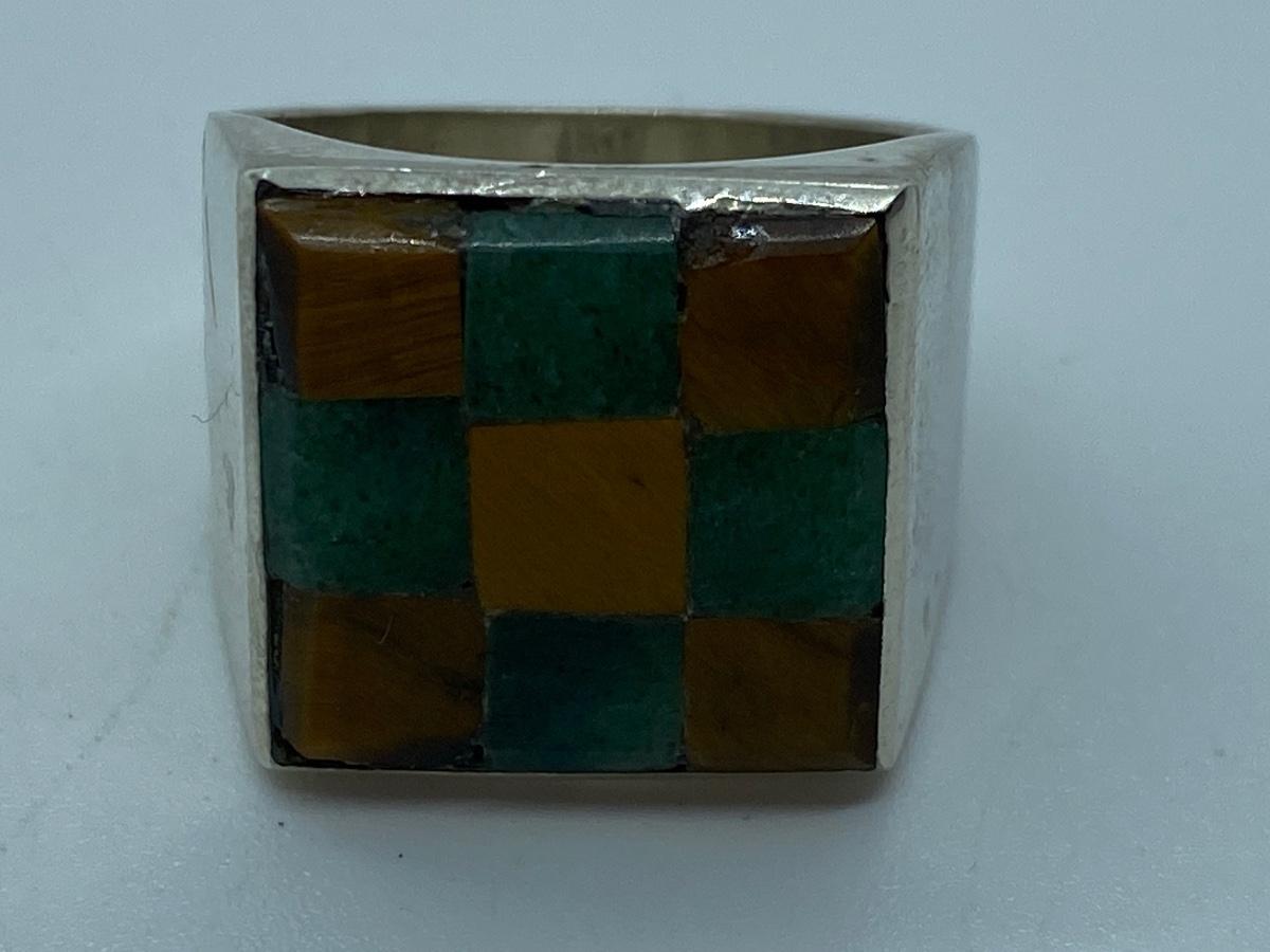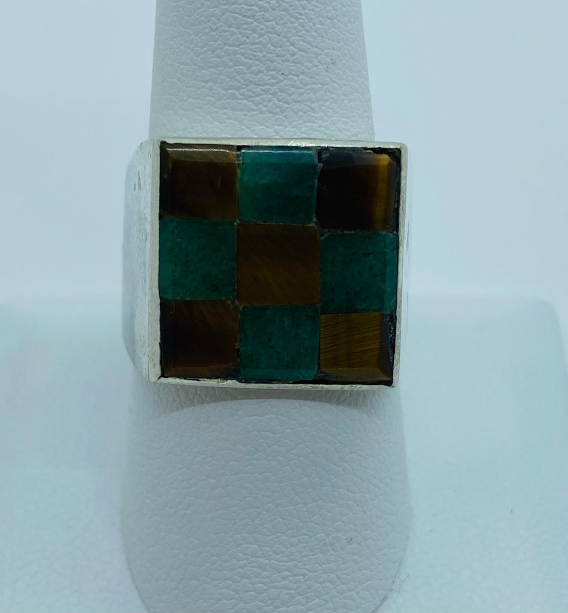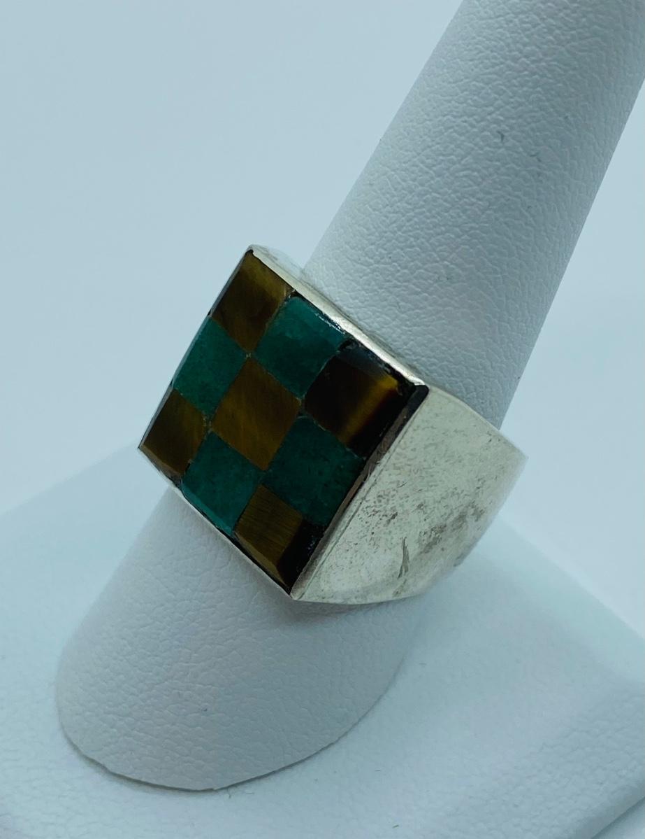 LOT 41C: Men's Sterling Silver Ring w/Multi Color Stones, sz 9
