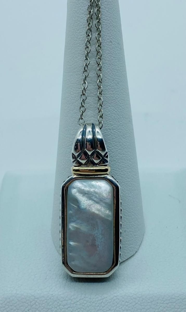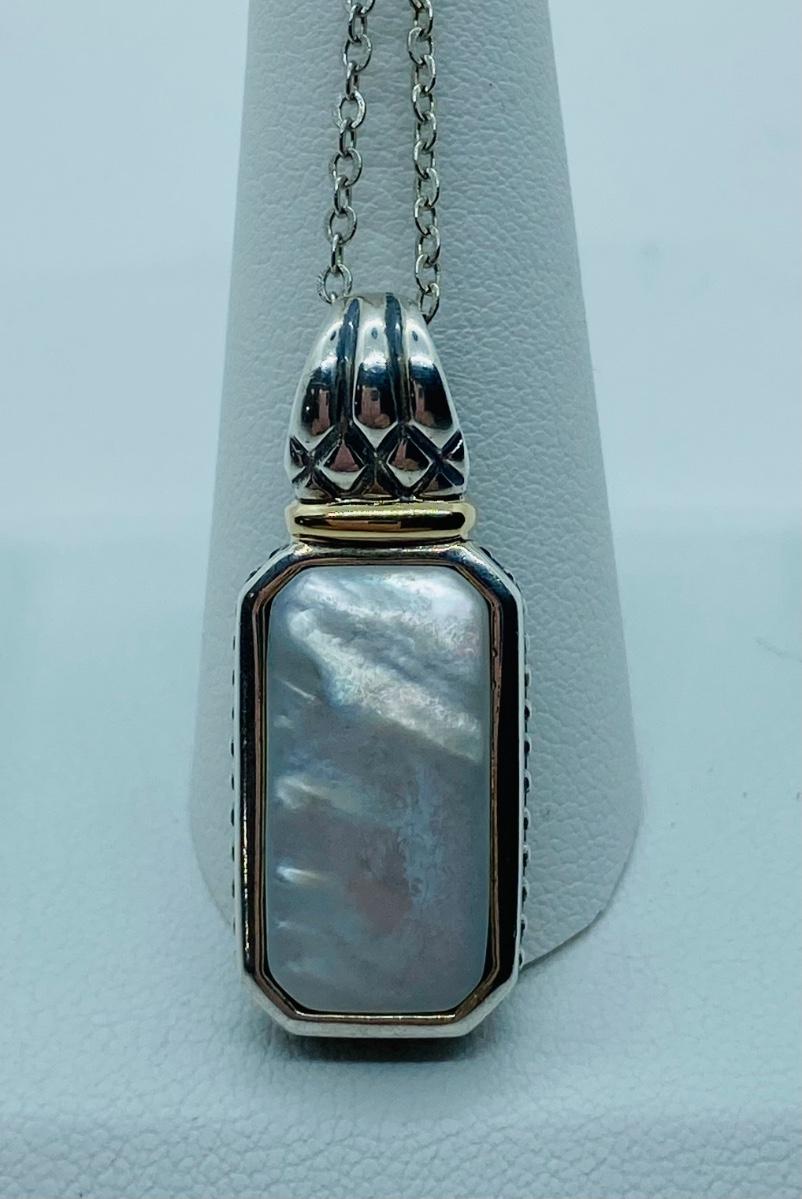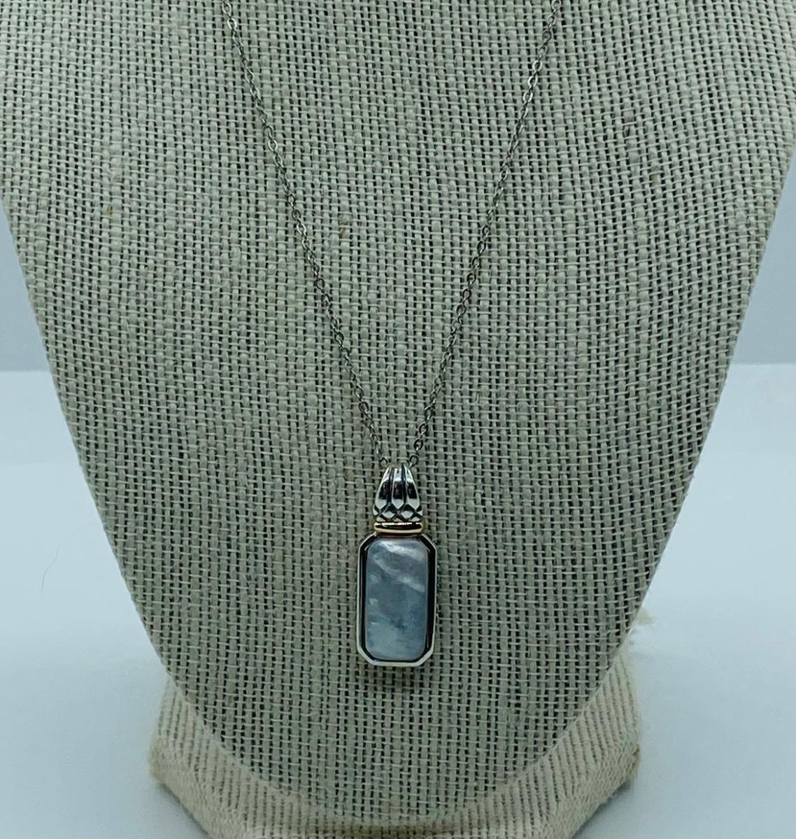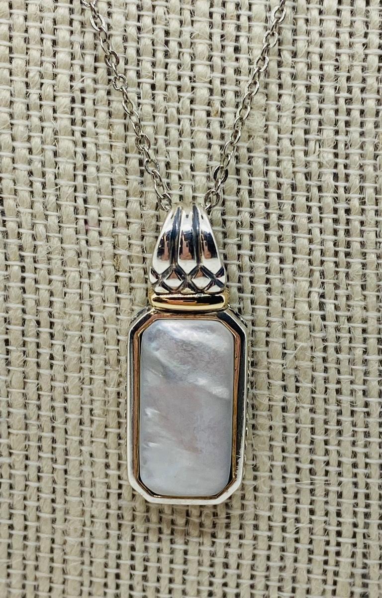 LOT 43C: Sterling Silver (925) Mother of Pearl Pendant w/Chain (not sterling)