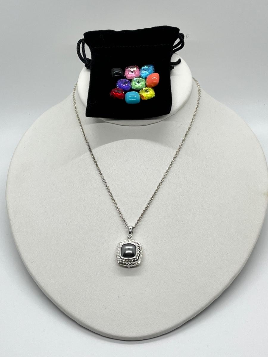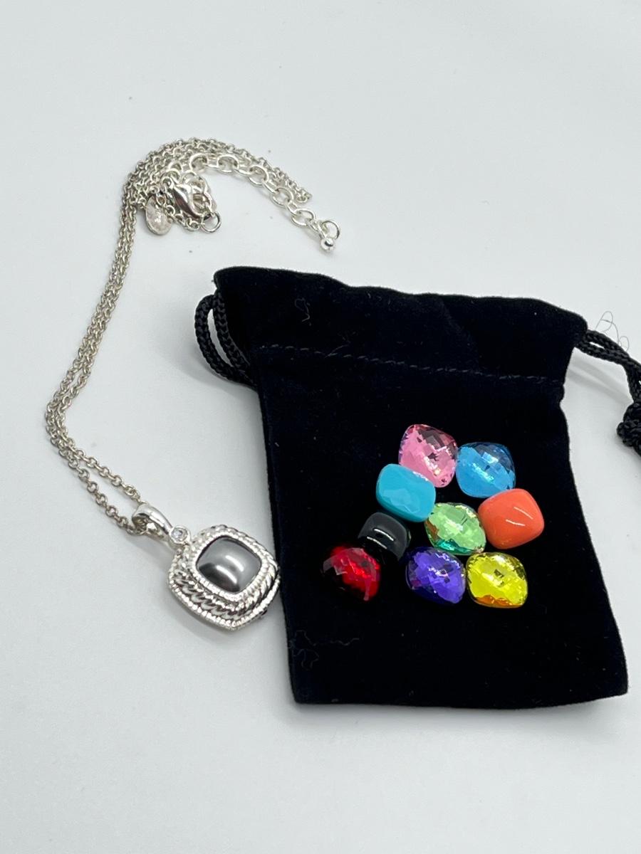 LOTJ7" Joan Rivers Silvertone Necklace w/Inter-Changeable Pendants