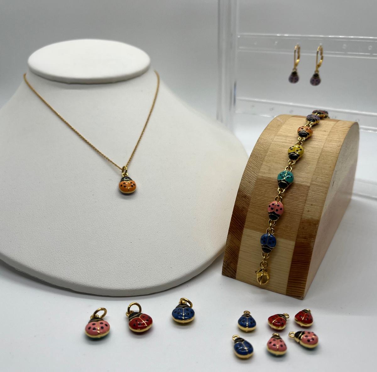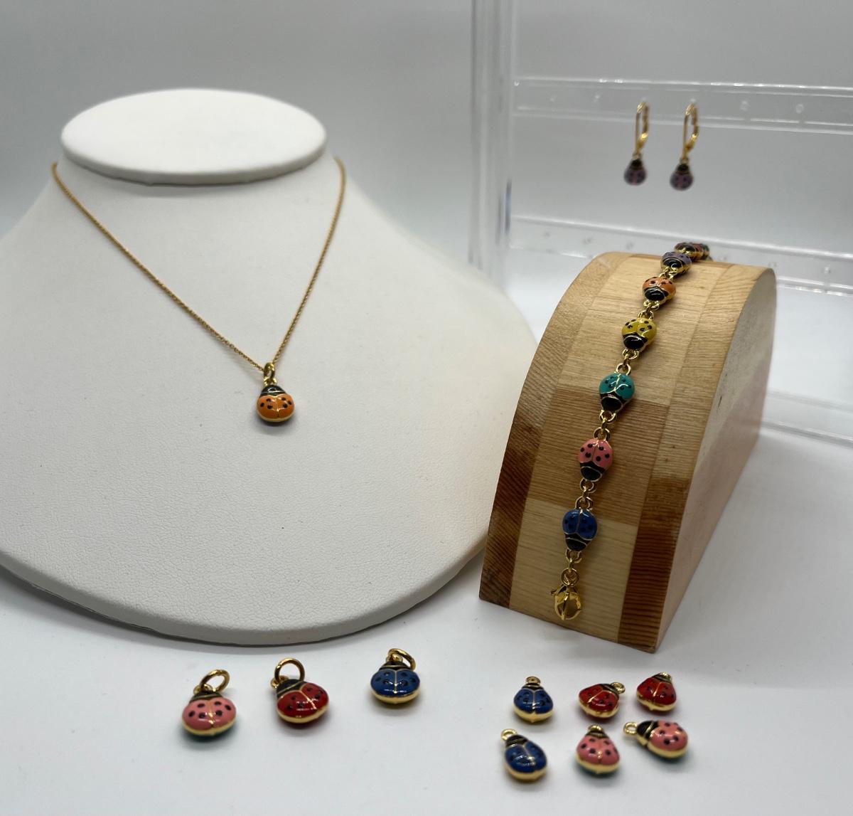 LOTJ18: Joan Rivers Inter-Changeable Ladybug Necklace (16"+3"), Bracelet (7.5"), Earrings
