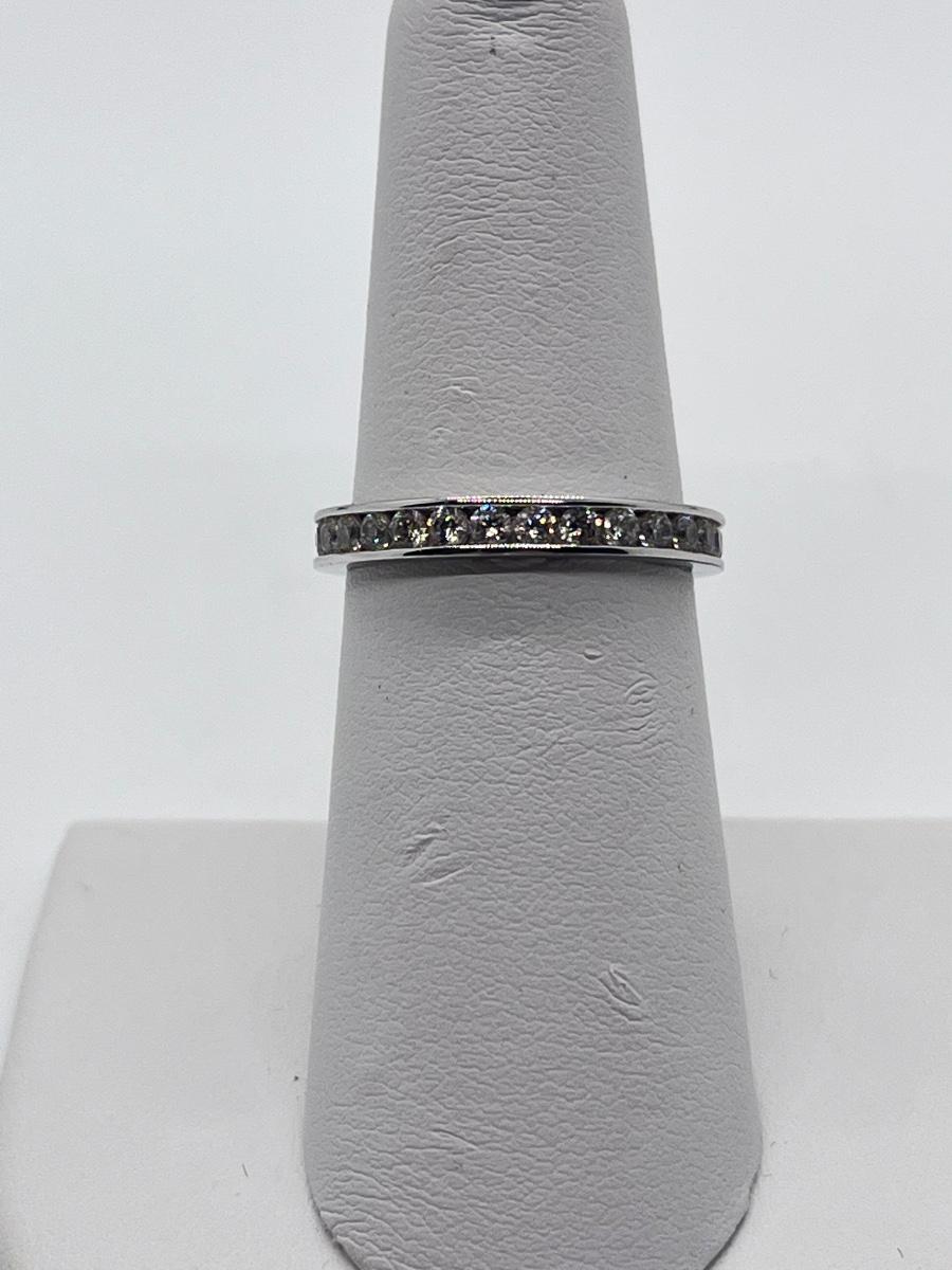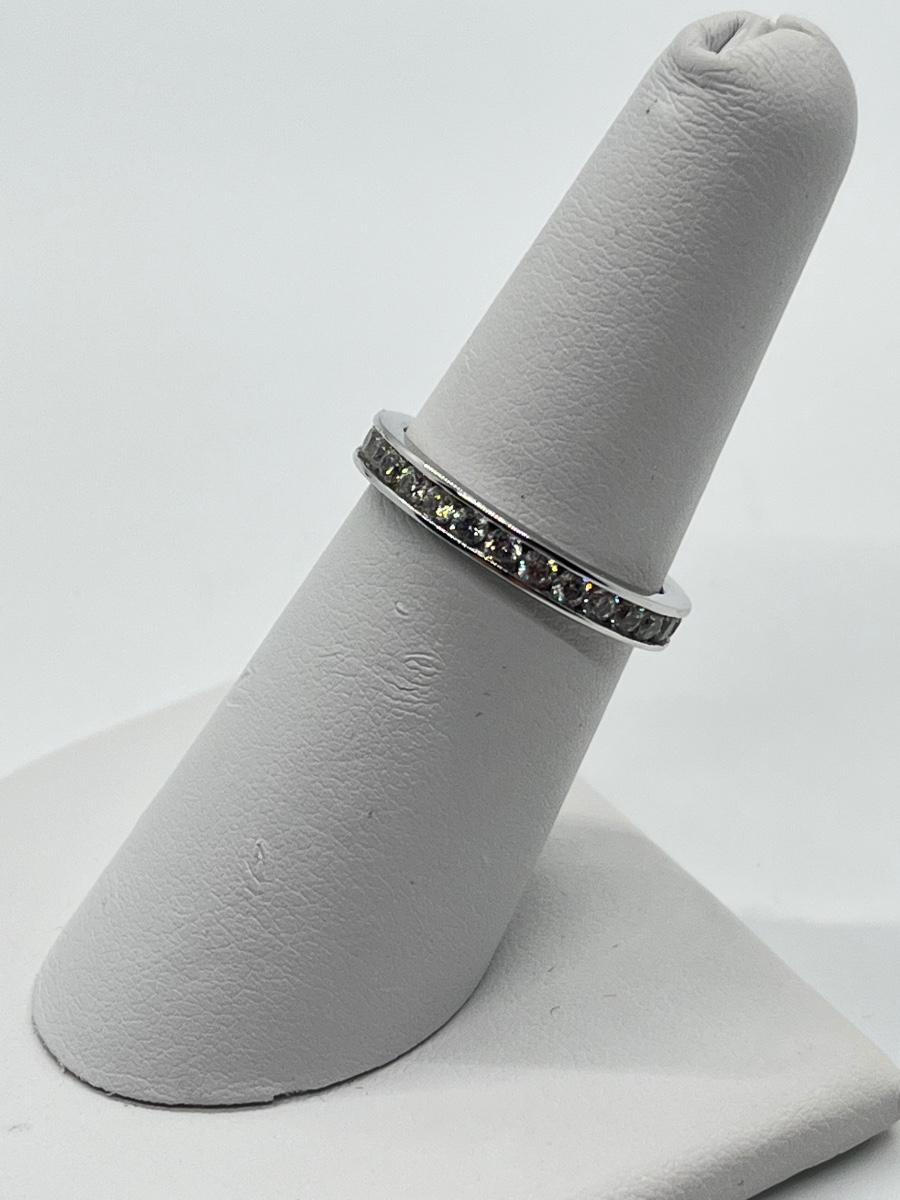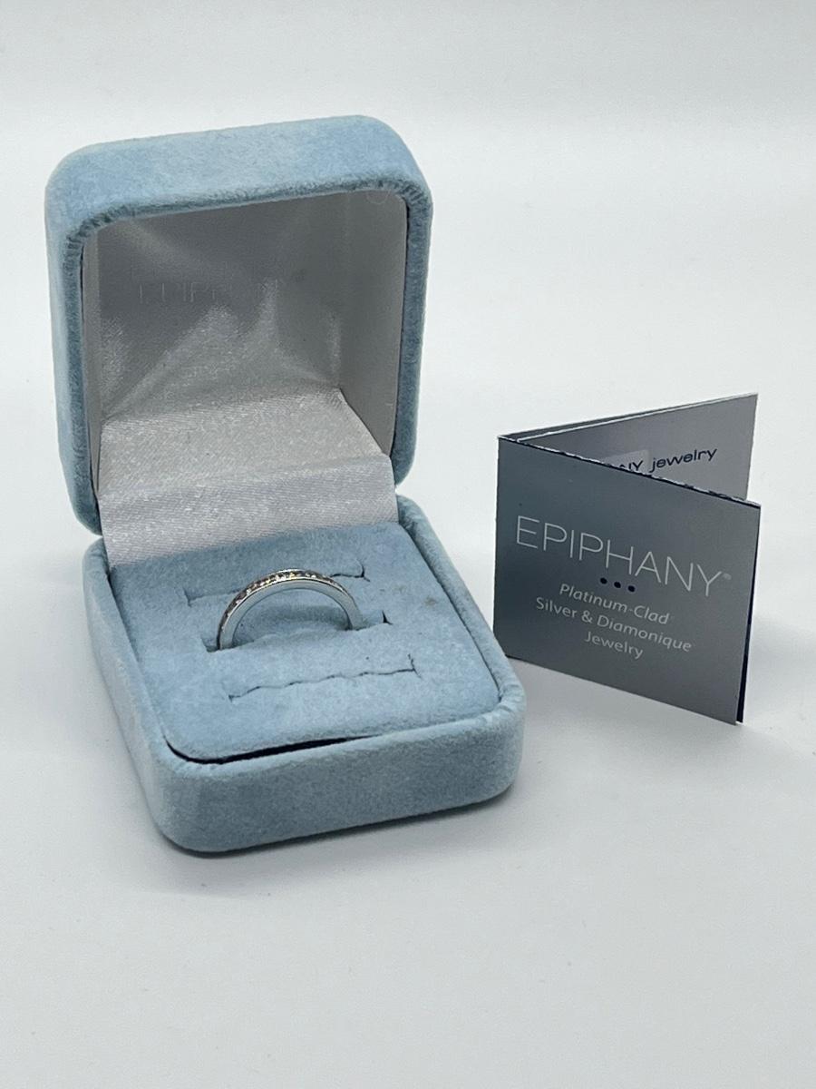 LOTJ42: Epiphany Platinum Clad Silver, 925 & Diamonique Silk Fit Round Ring, Sz6