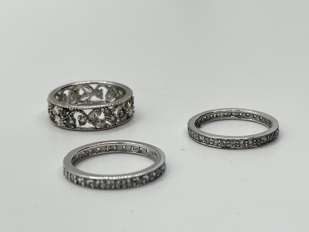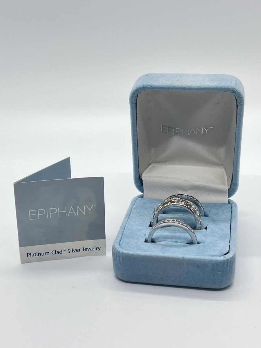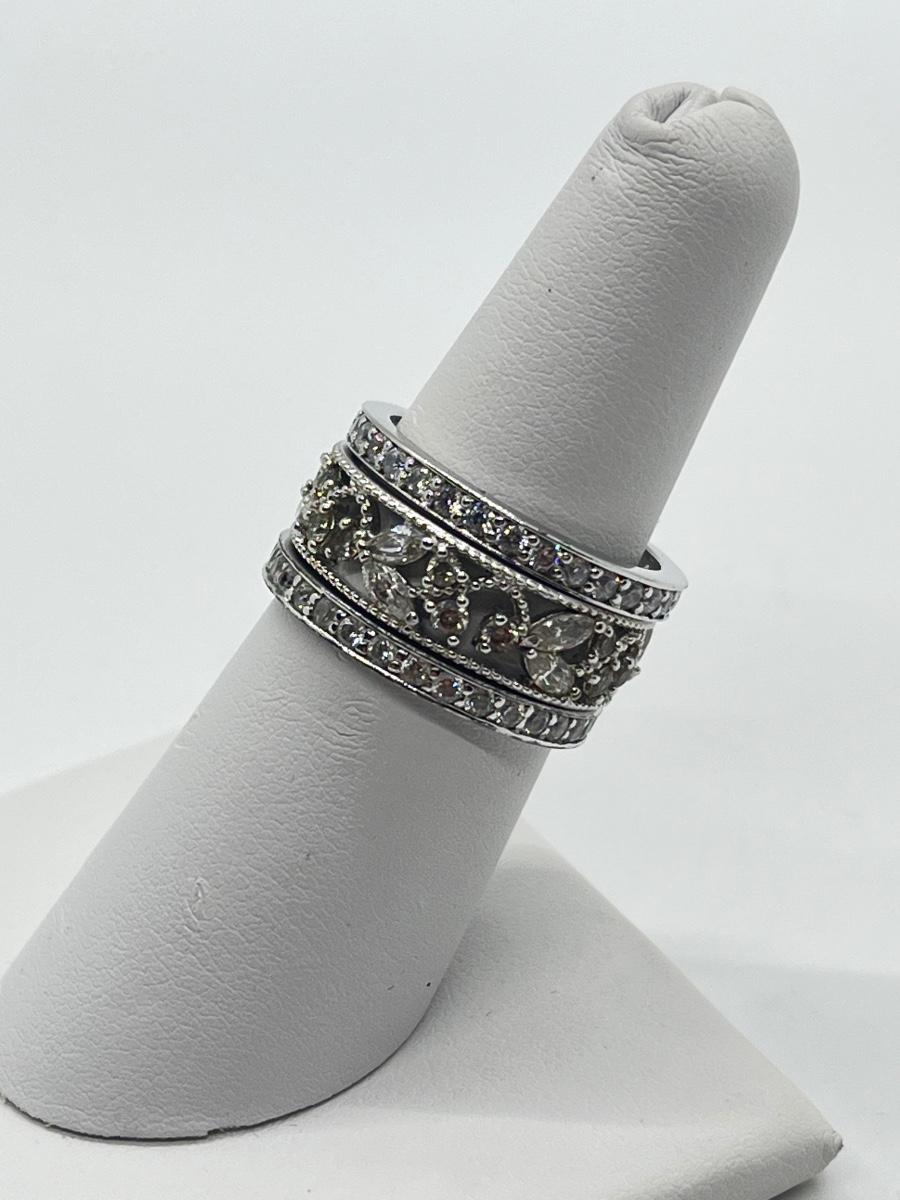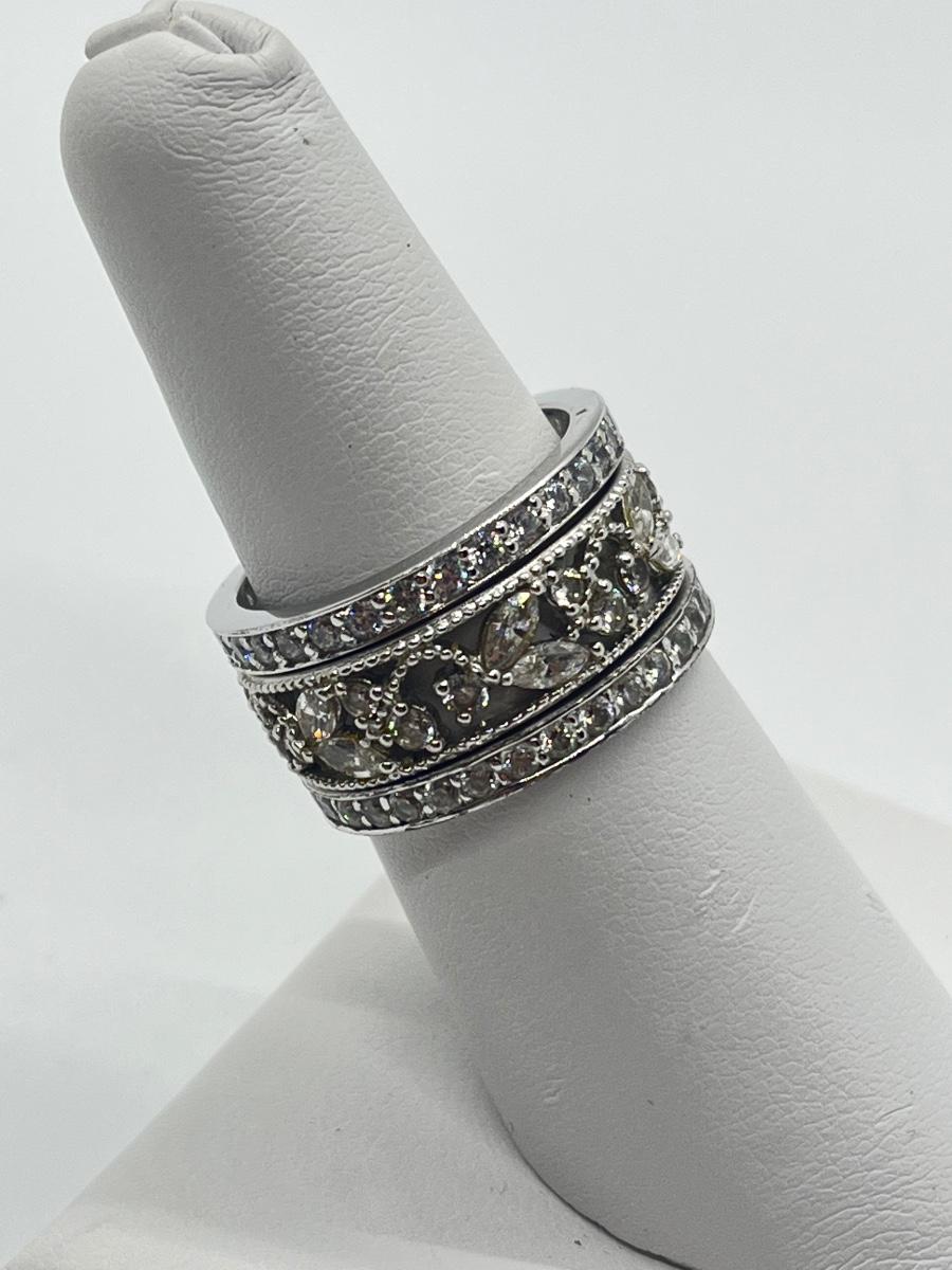 LOTJ43: Epiphany Platinum Clad Sterling Silver & Diamonique, 3-Ring Set, Sz7