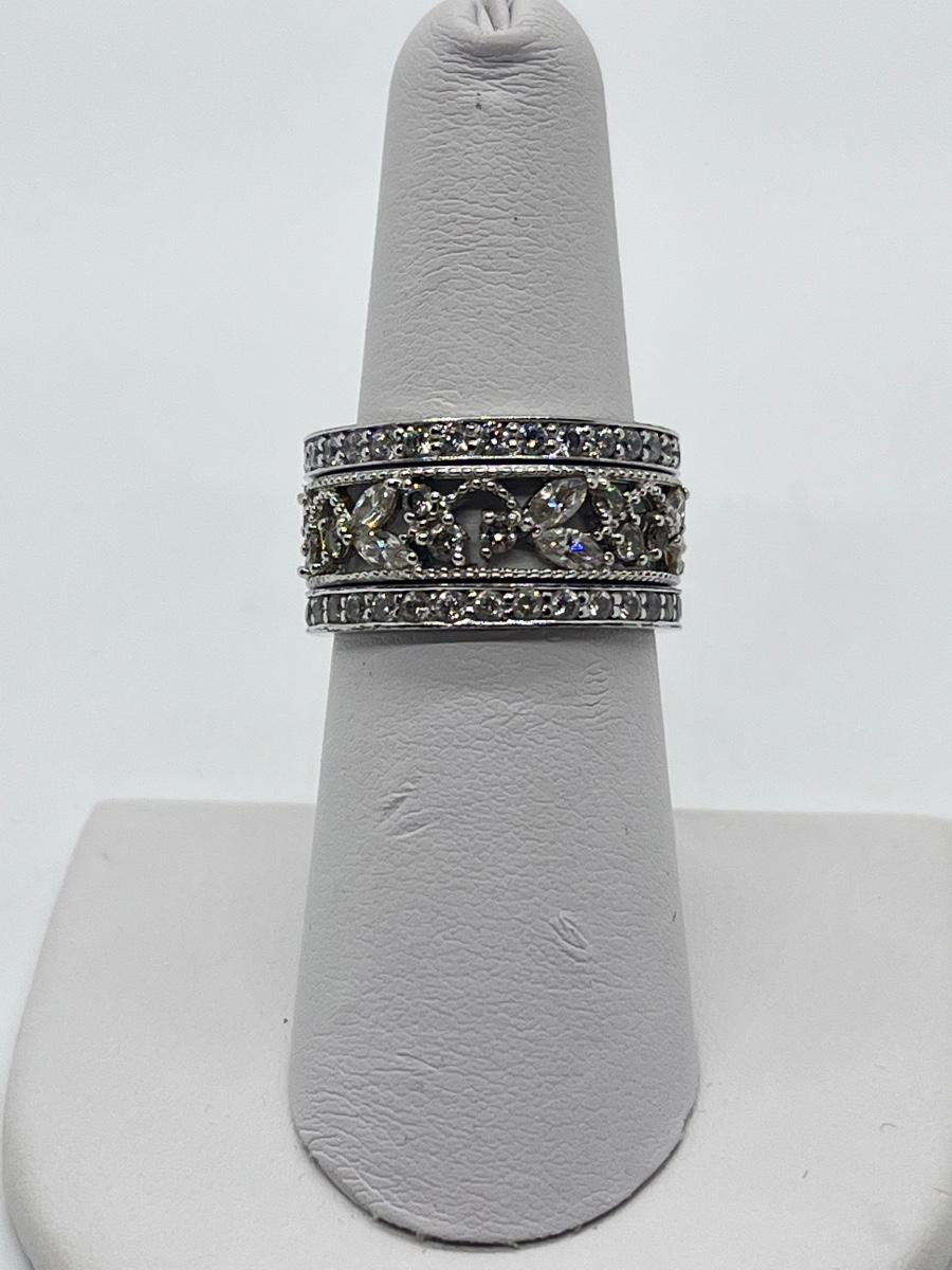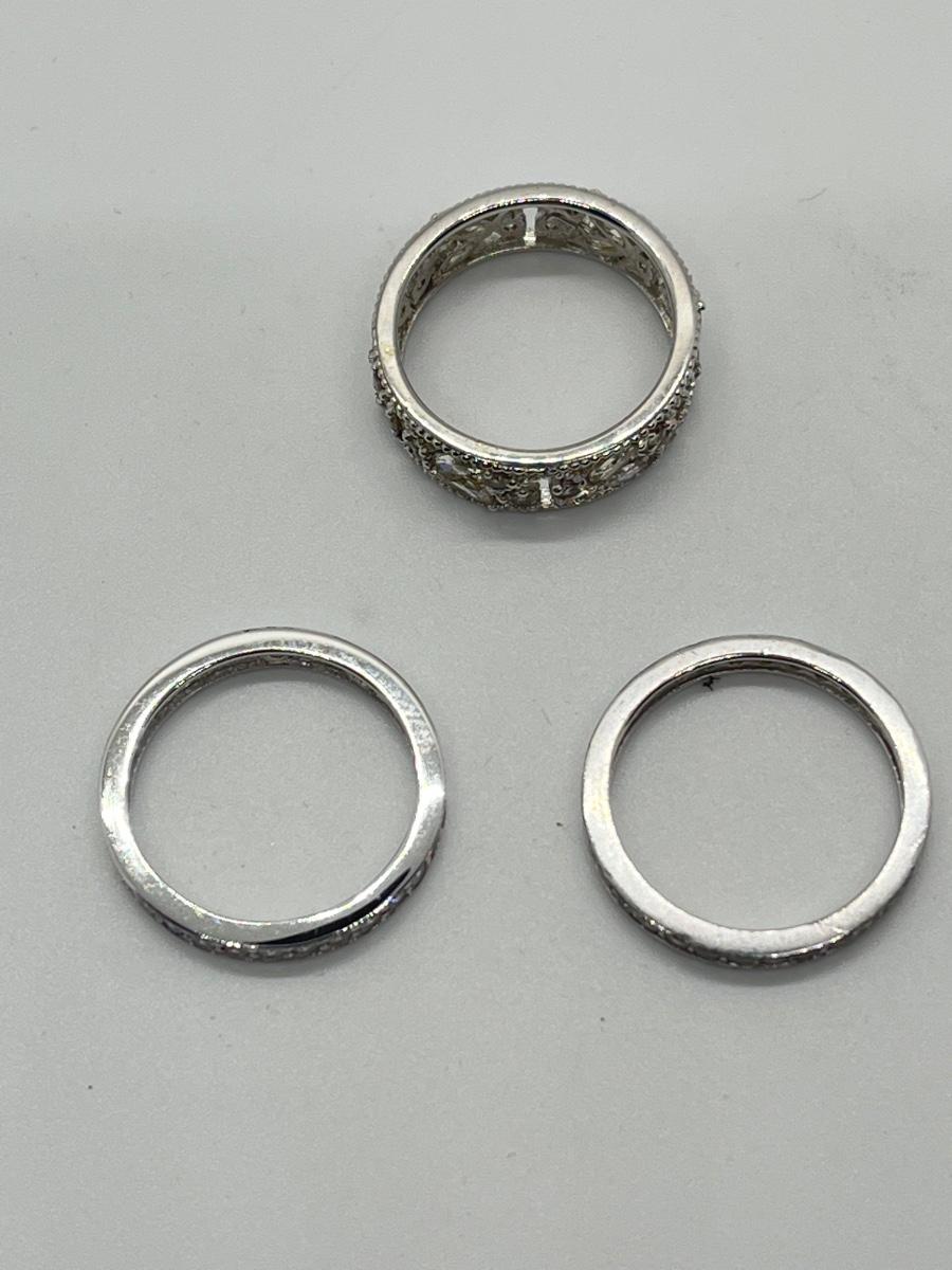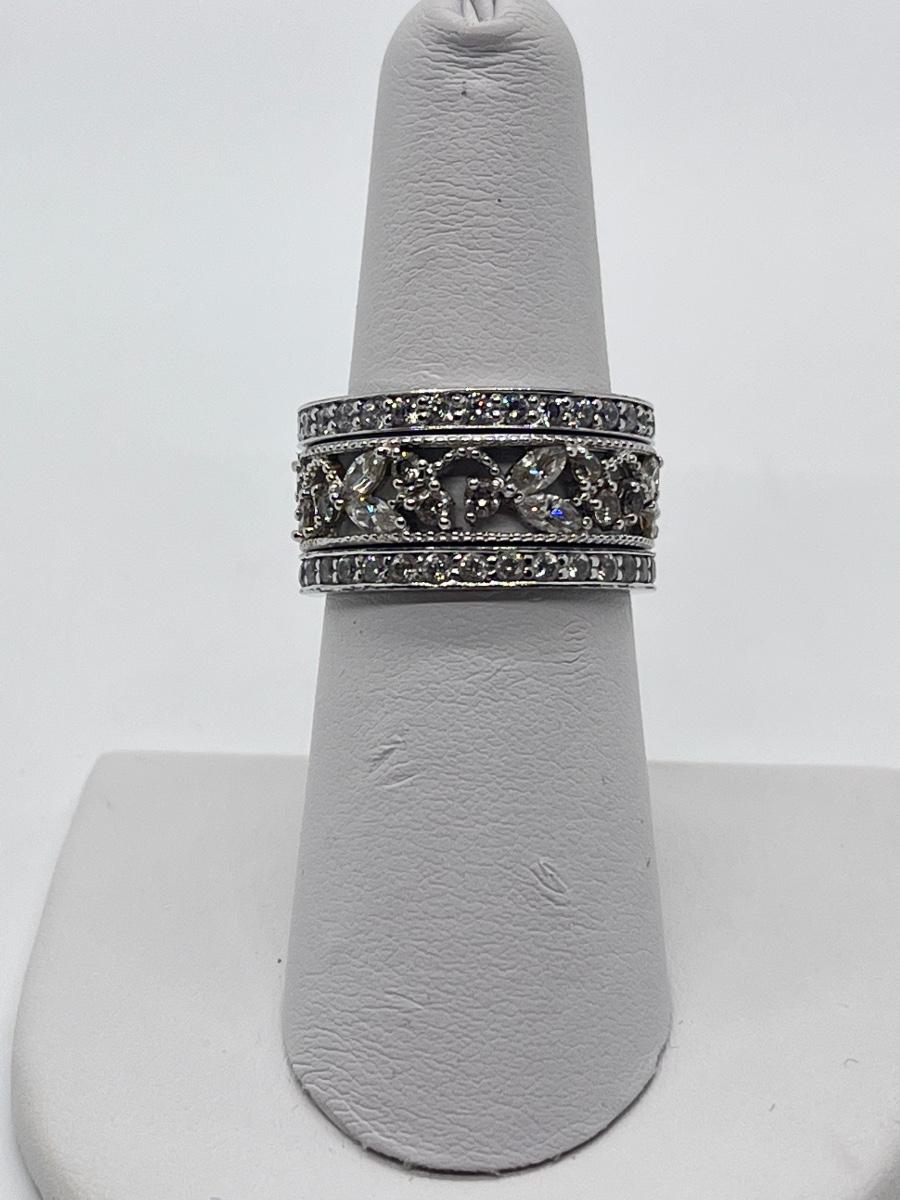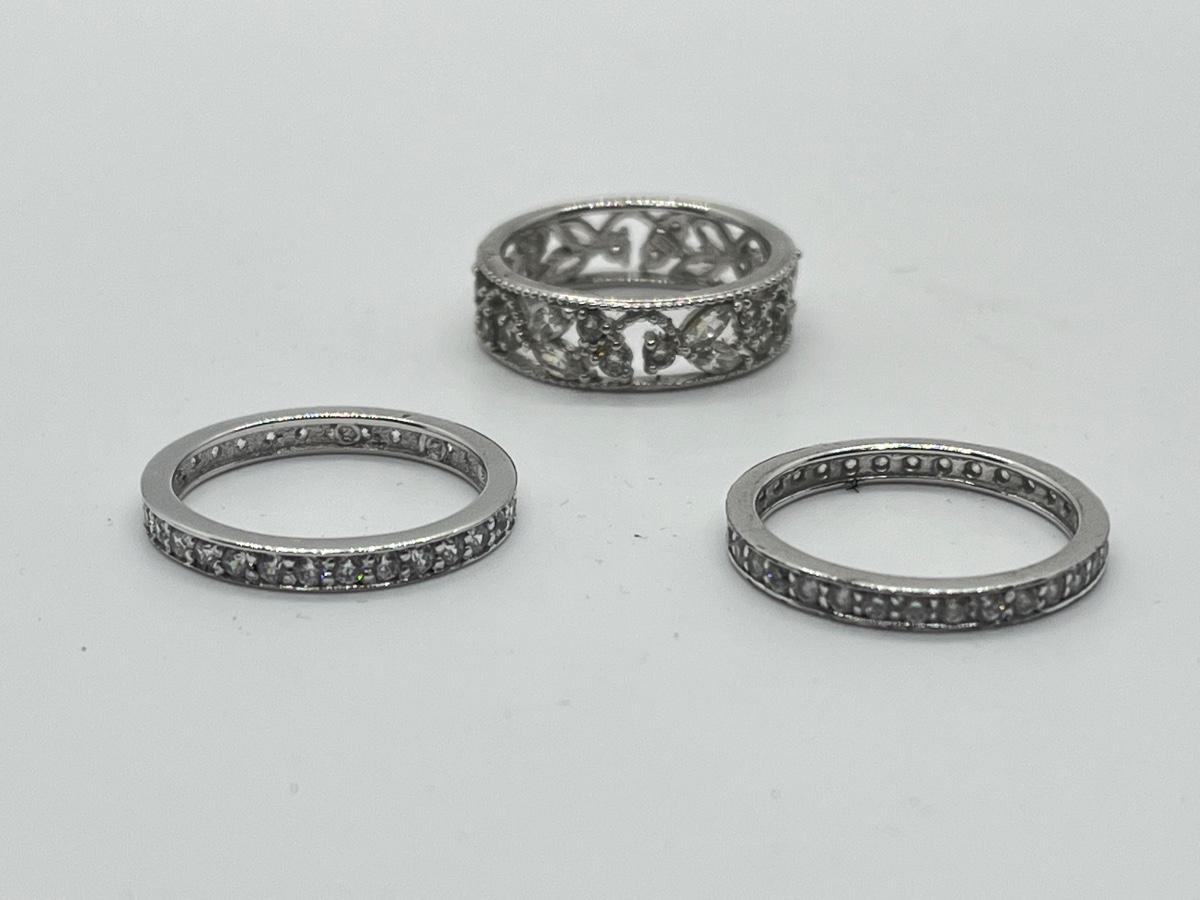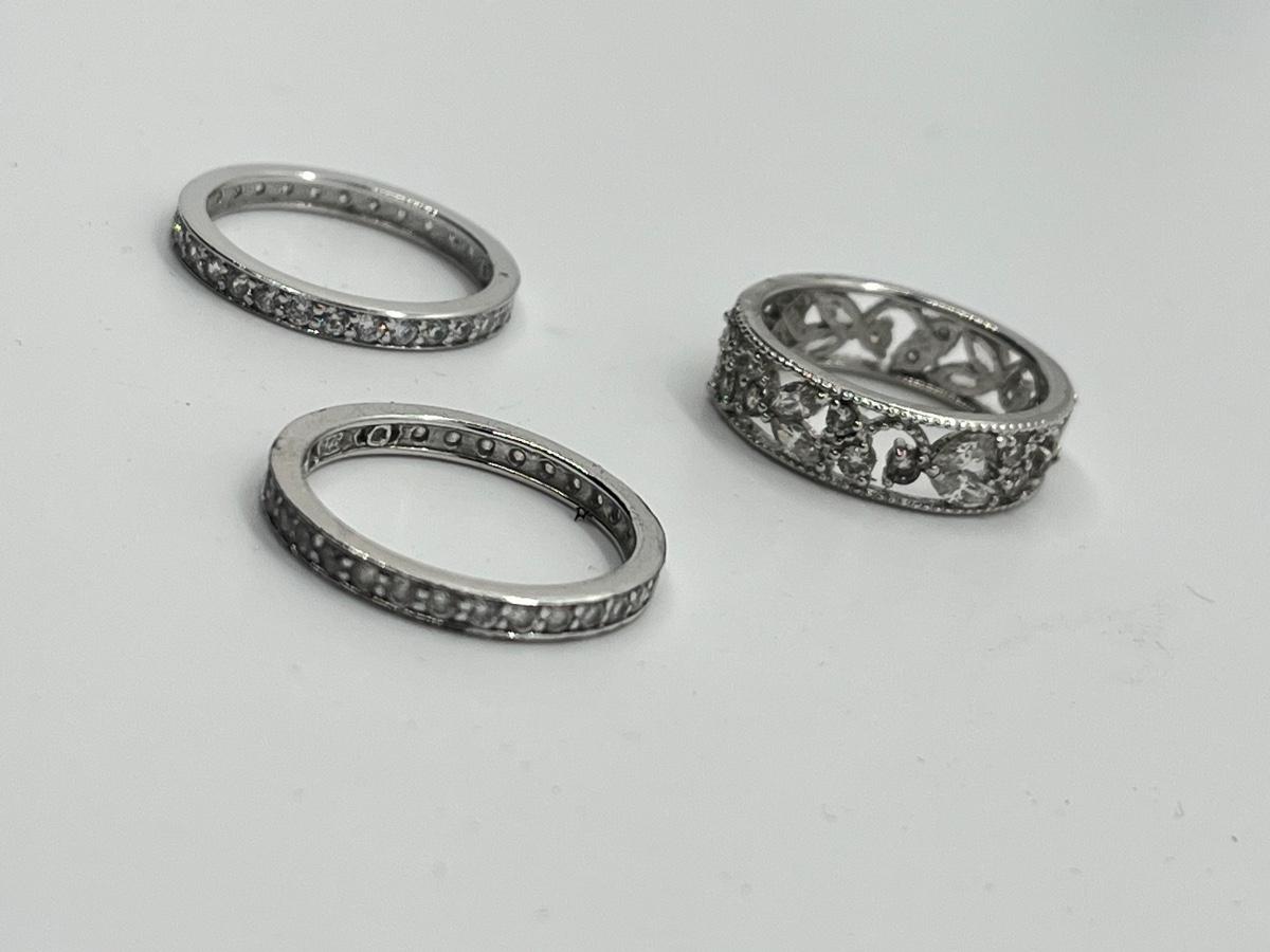 LOTJ43: Epiphany Platinum Clad Sterling Silver & Diamonique, 3-Ring Set, Sz7