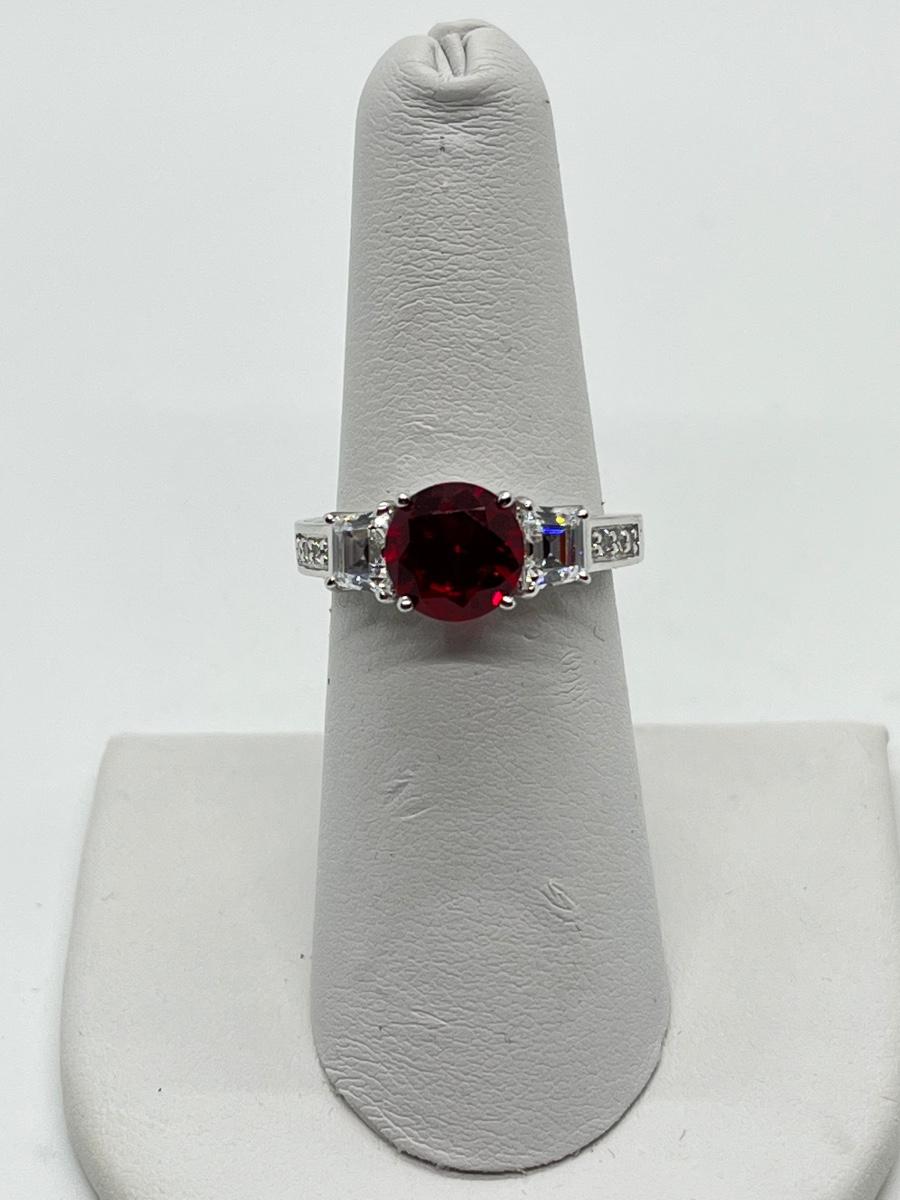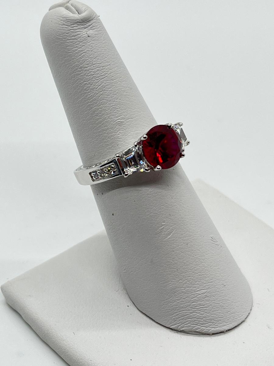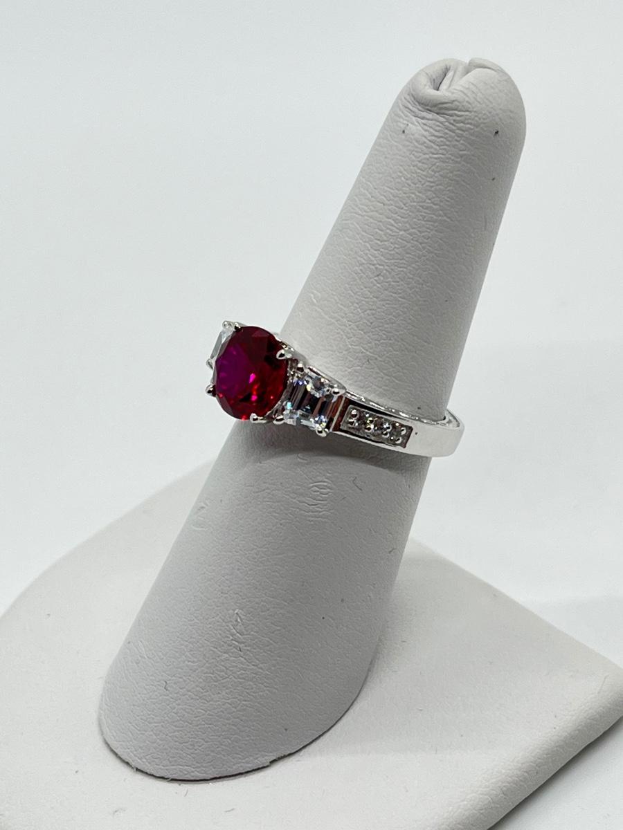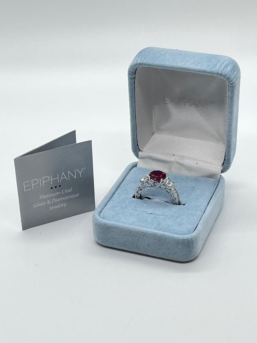 LOTJ45: Epiphany Platinum Clad Silver & Diamonique Simulated Ruby Ring, Sz6