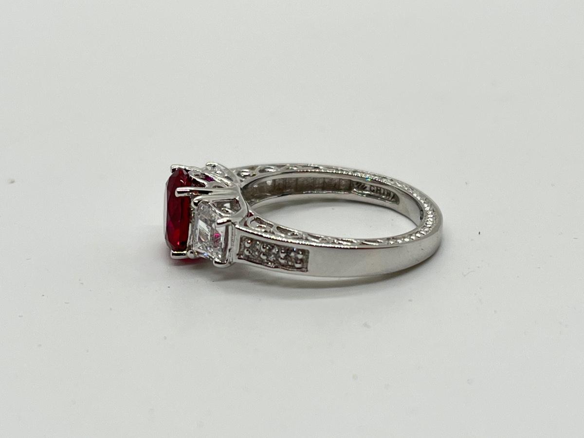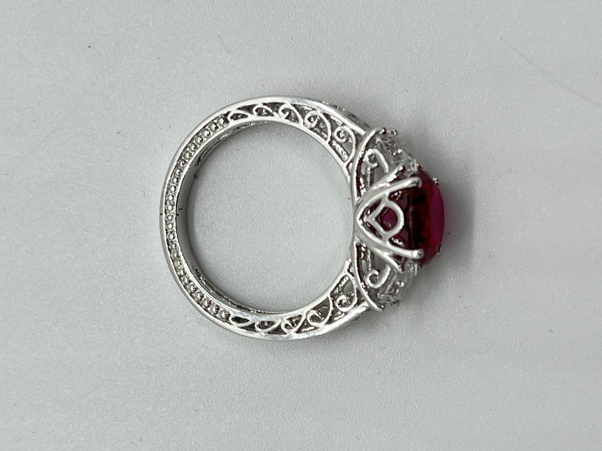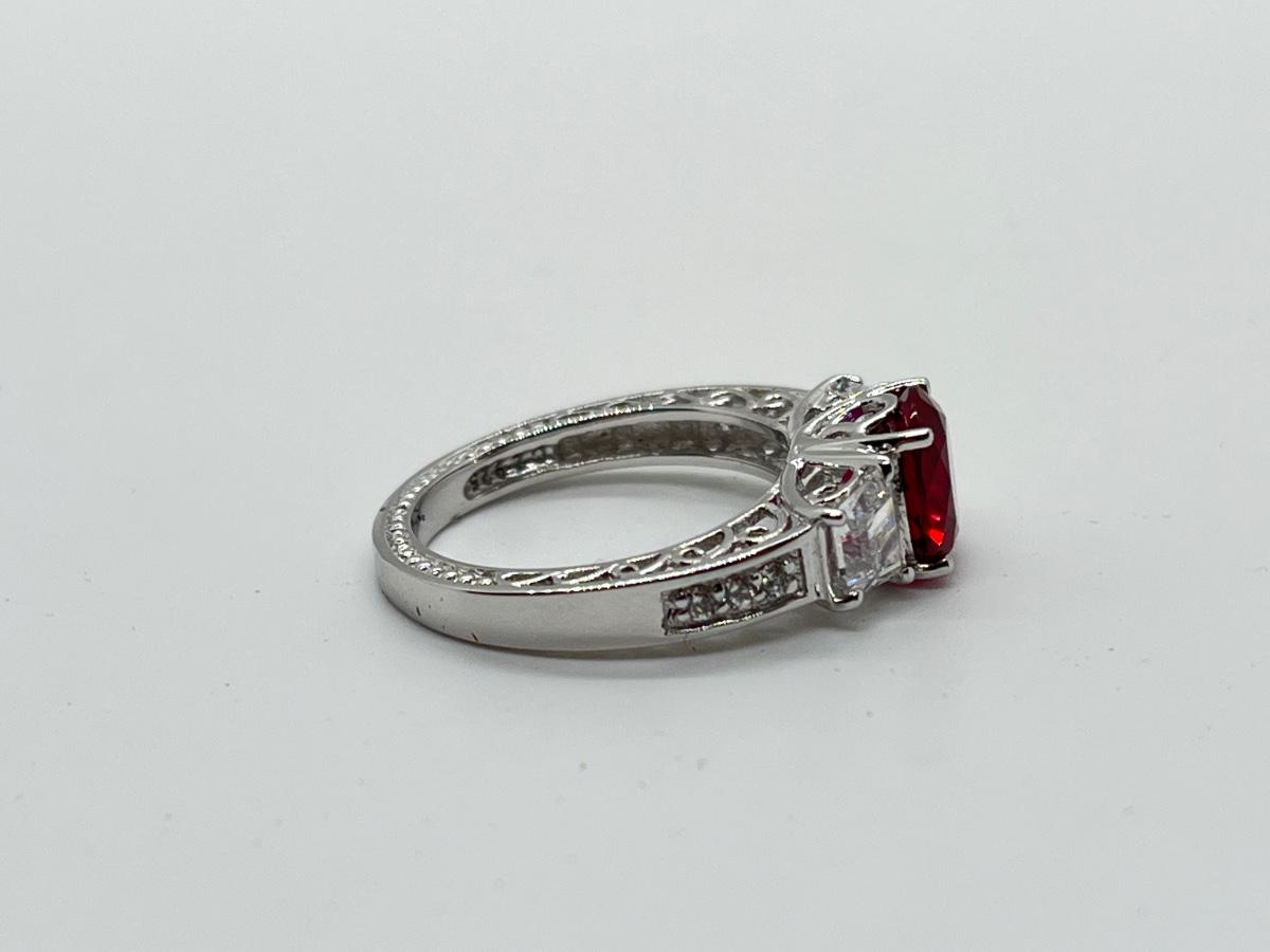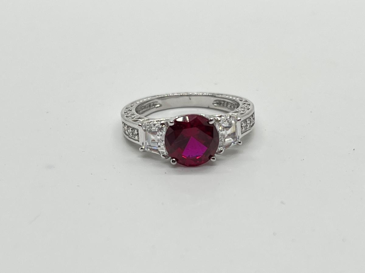 LOTJ45: Epiphany Platinum Clad Silver & Diamonique Simulated Ruby Ring, Sz6