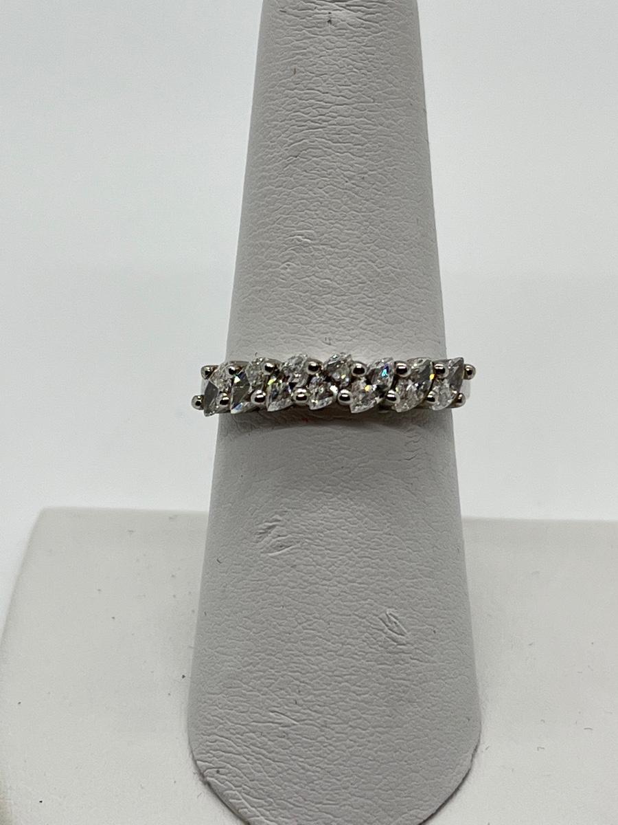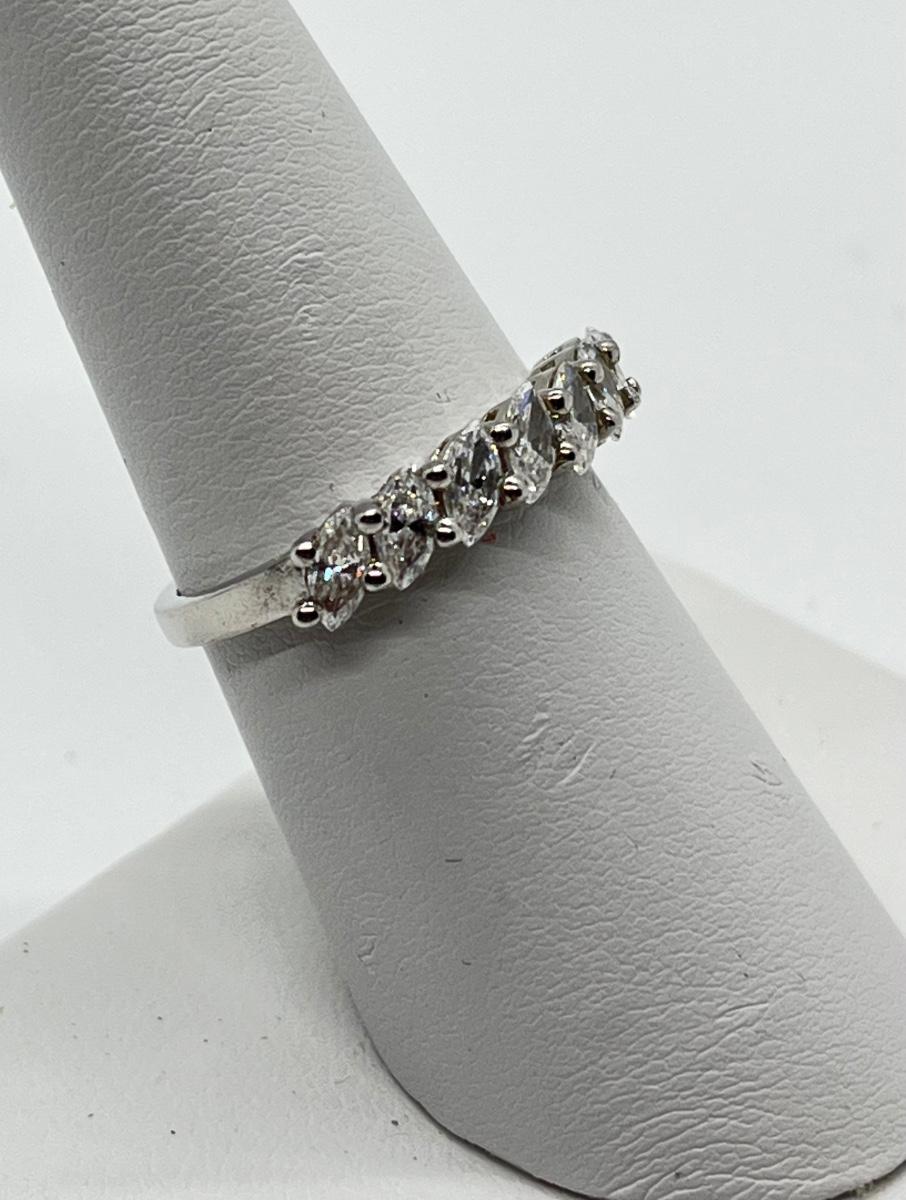 LOTJ: Epiphany Platinum Clad Sterling Silver,925 & Diamonique 7Stone Marquise Ring, Sz7