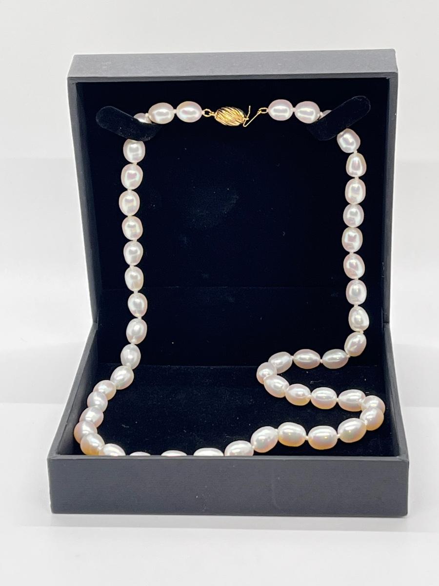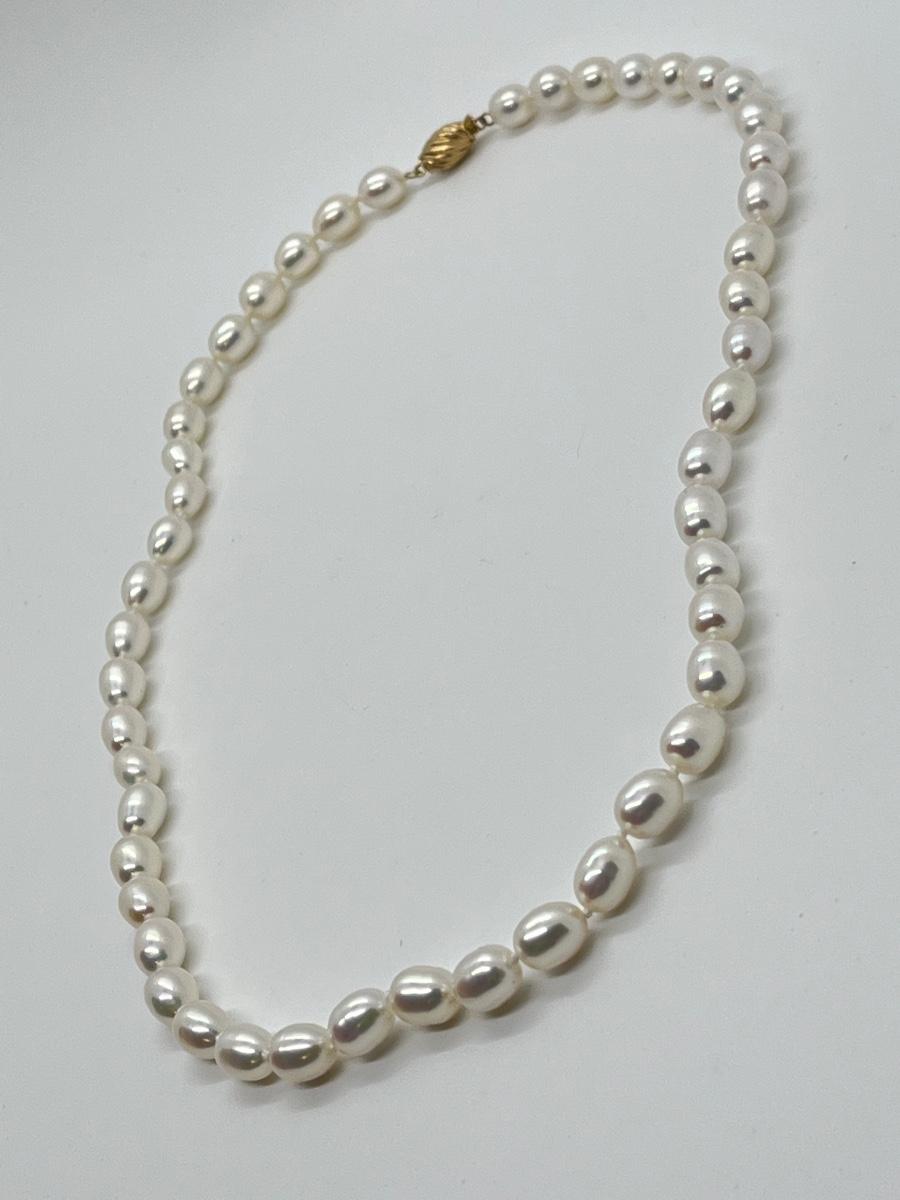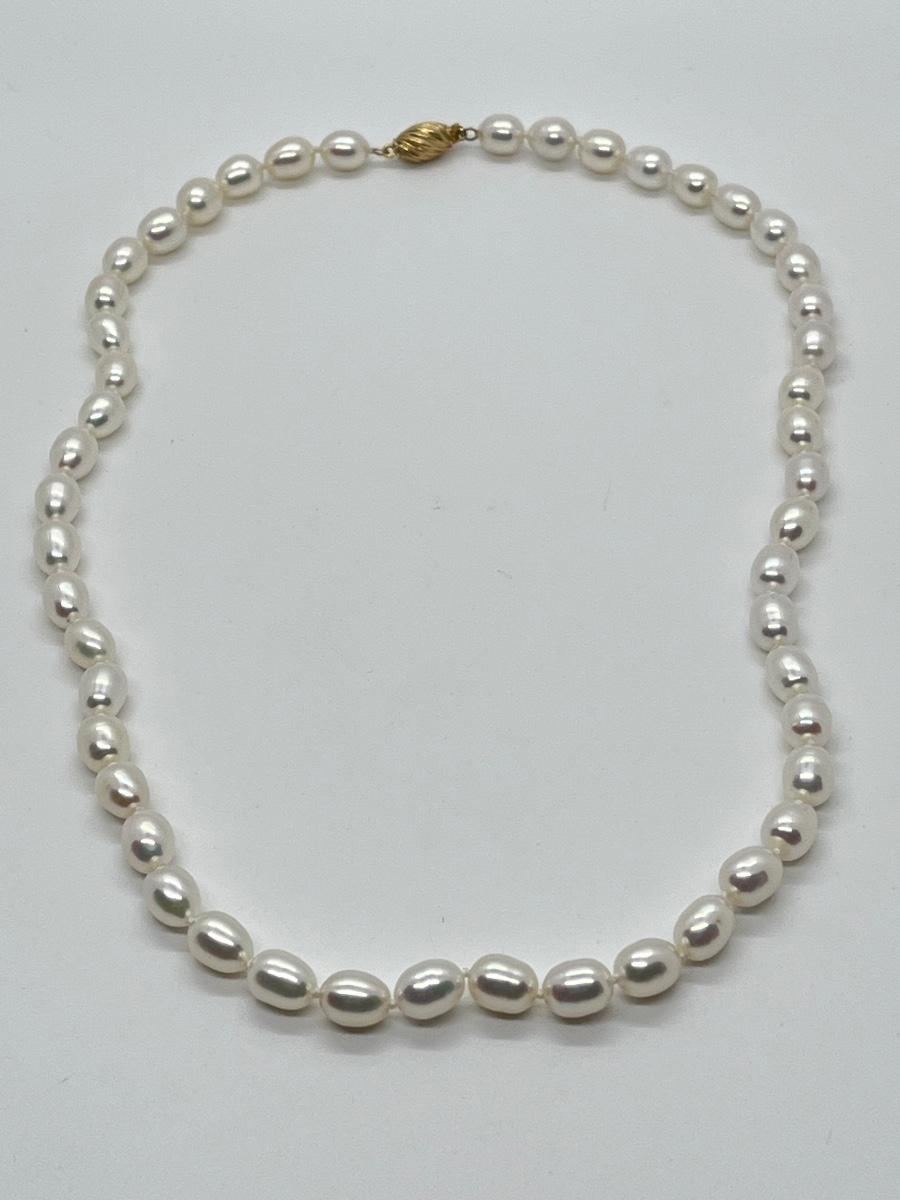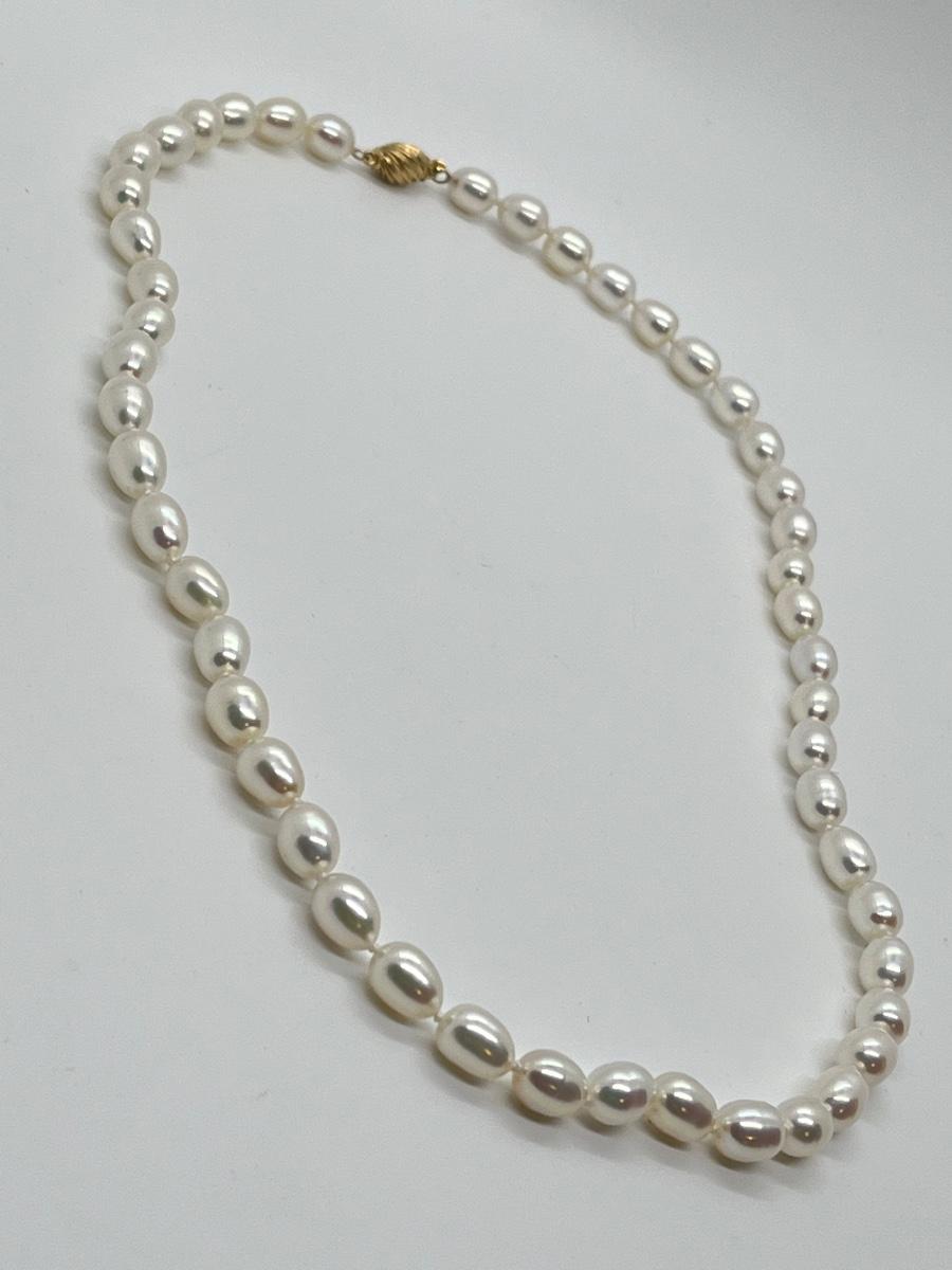 LOTJ58: Honora Culture Freshwater Pearl 7mm Oval 20" Strand,14K Clasp, White Pearl Necklace
