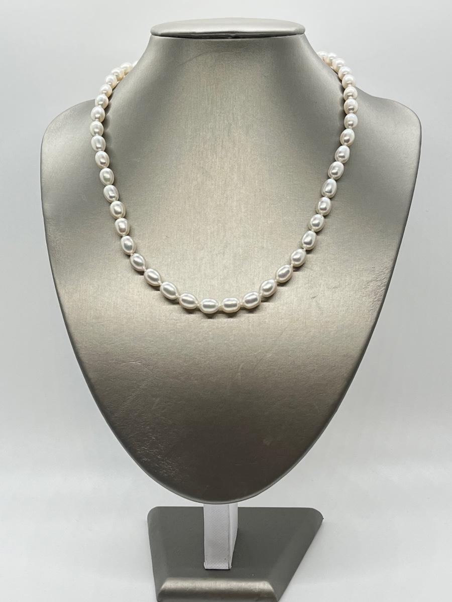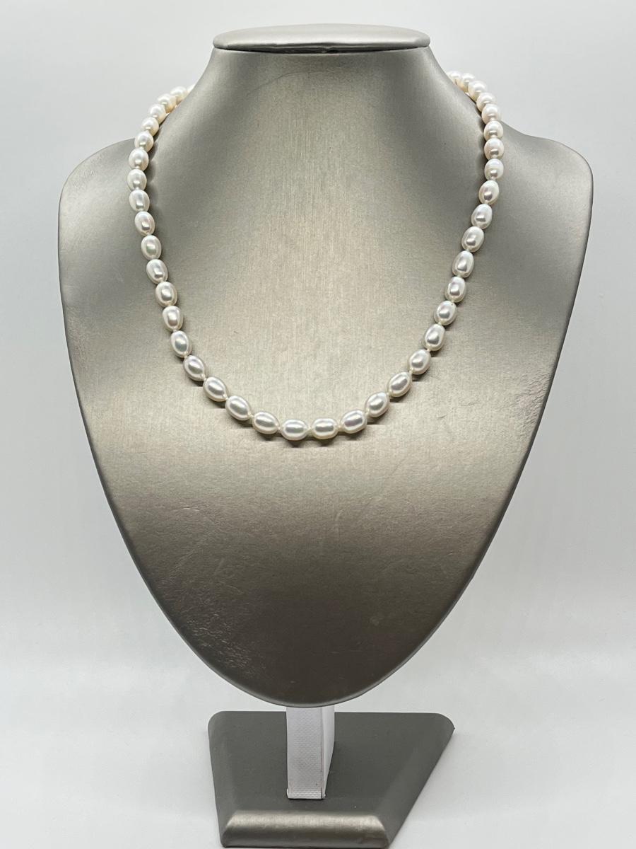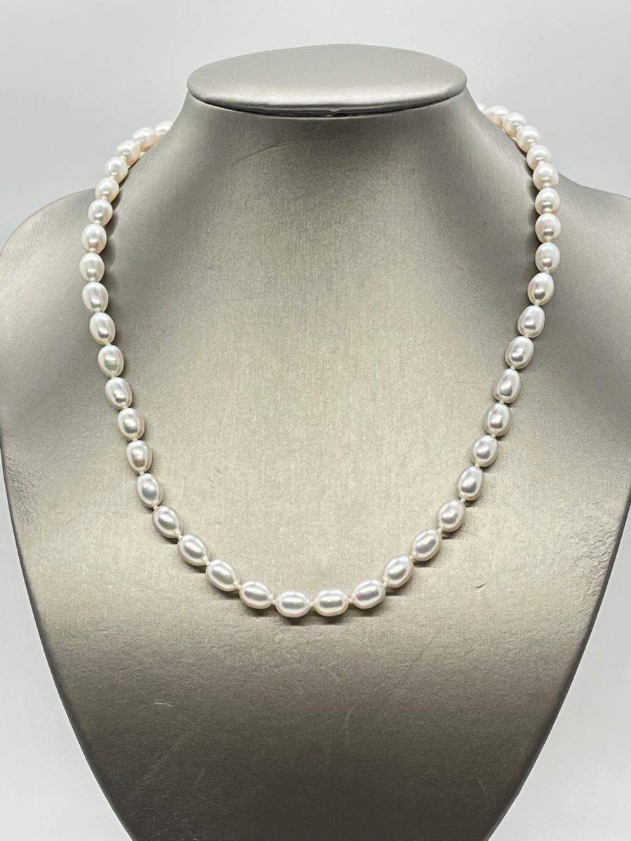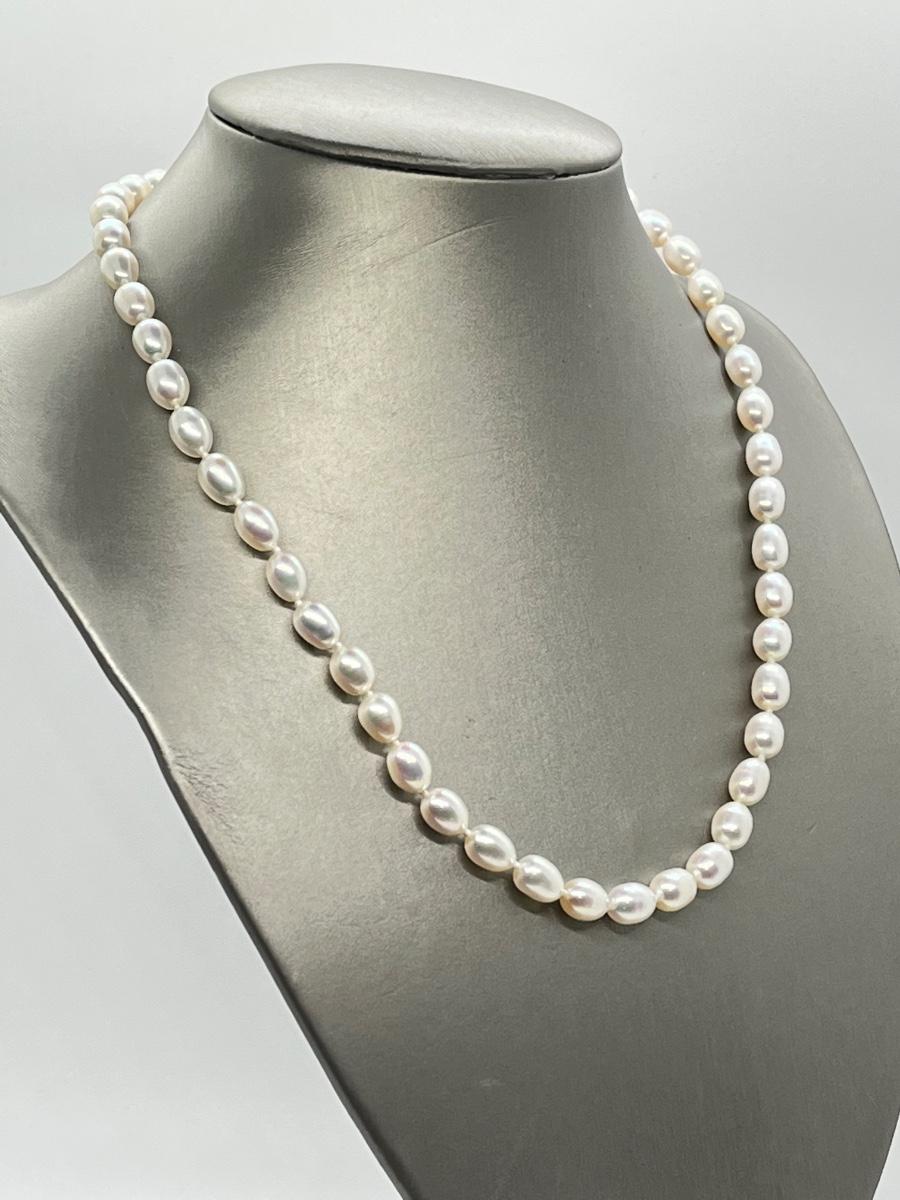 LOTJ58: Honora Culture Freshwater Pearl 7mm Oval 20" Strand,14K Clasp, White Pearl Necklace