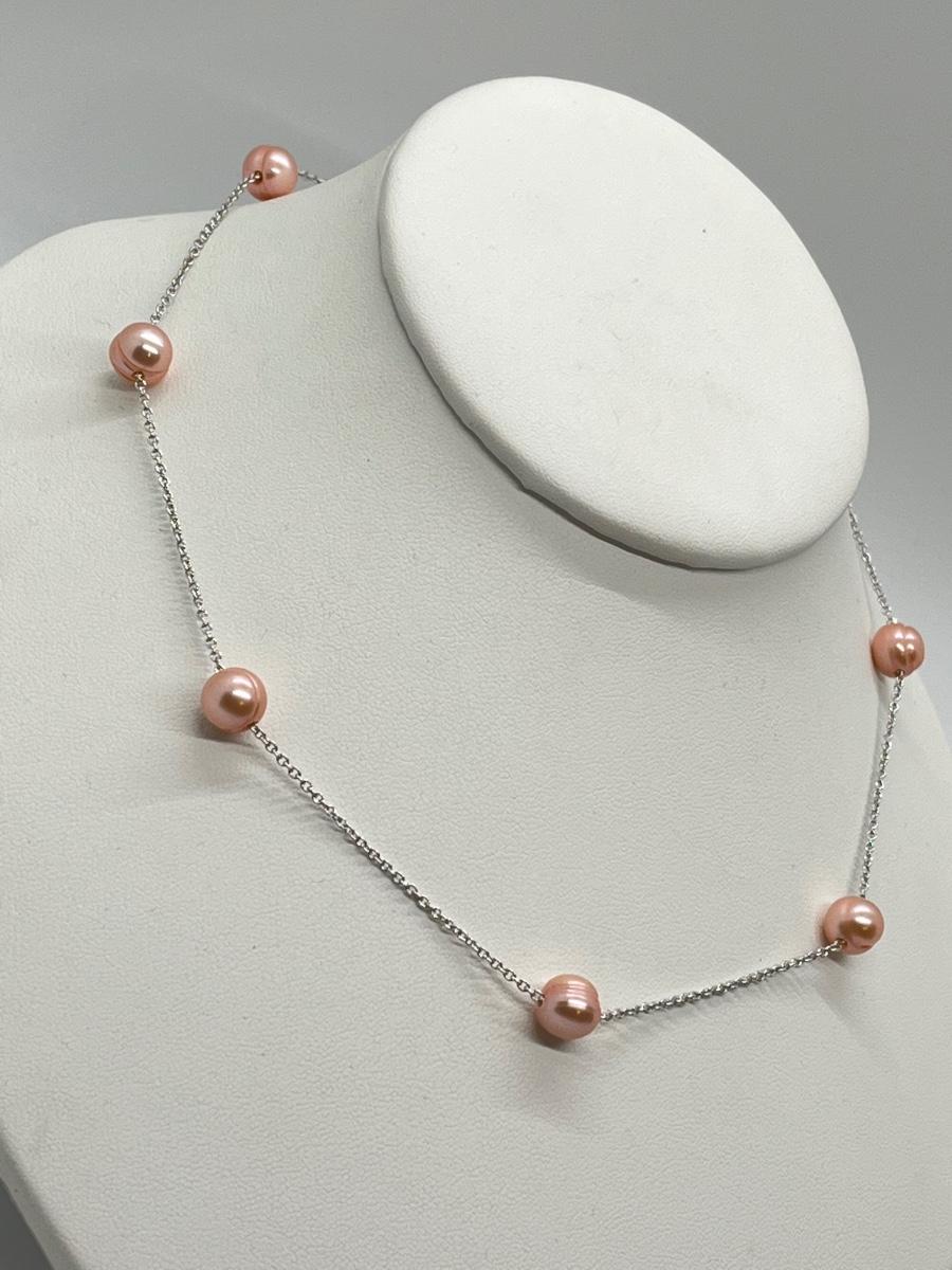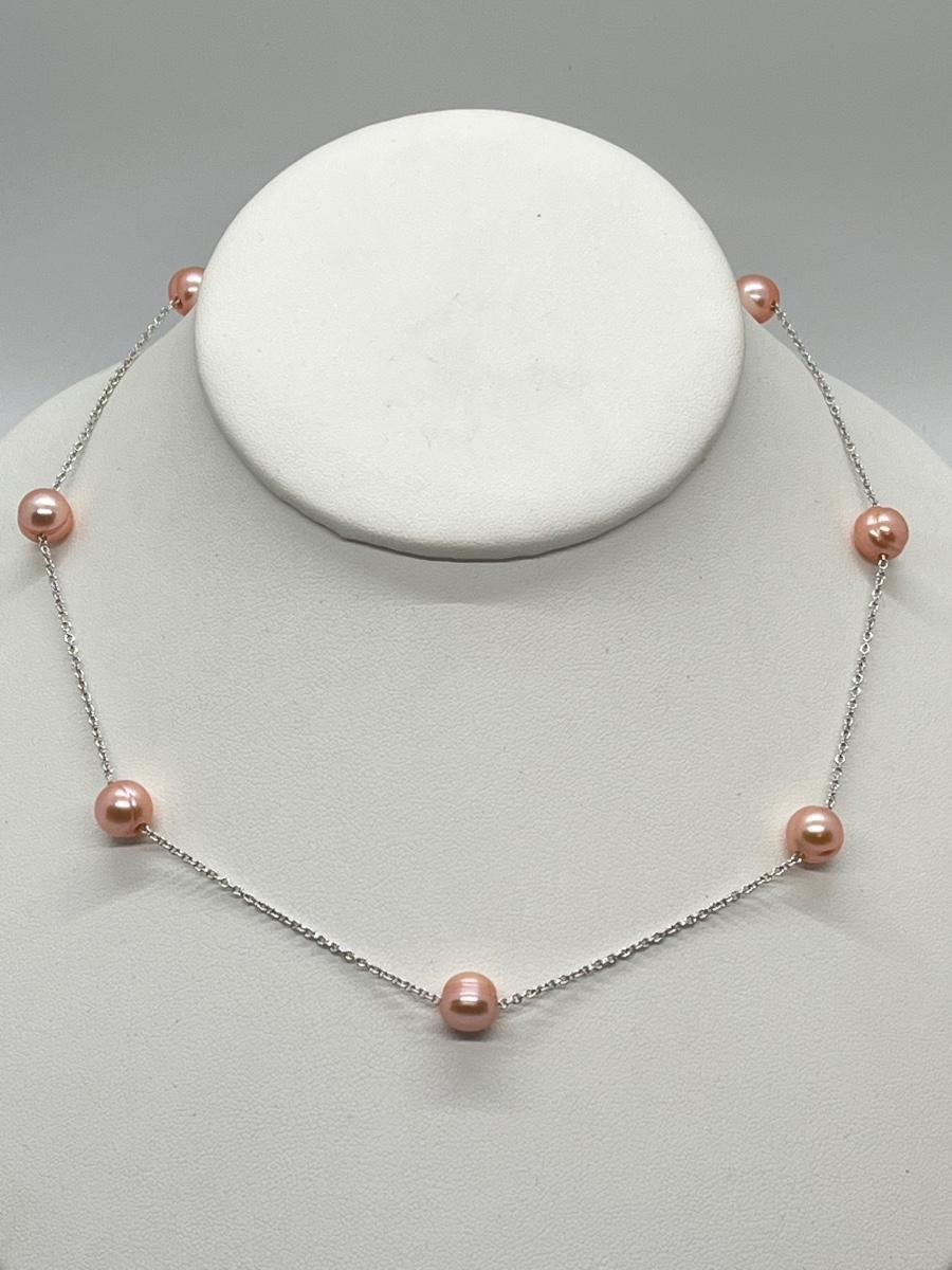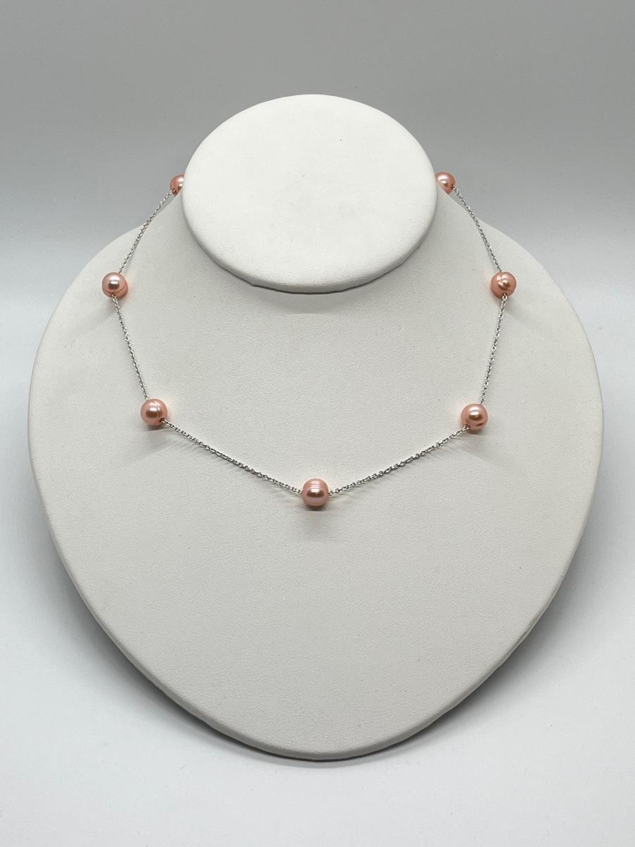 LOTJ60: Honora Cultured Pearl 8.0mm, Stainless Steel Station Necklace, 19"