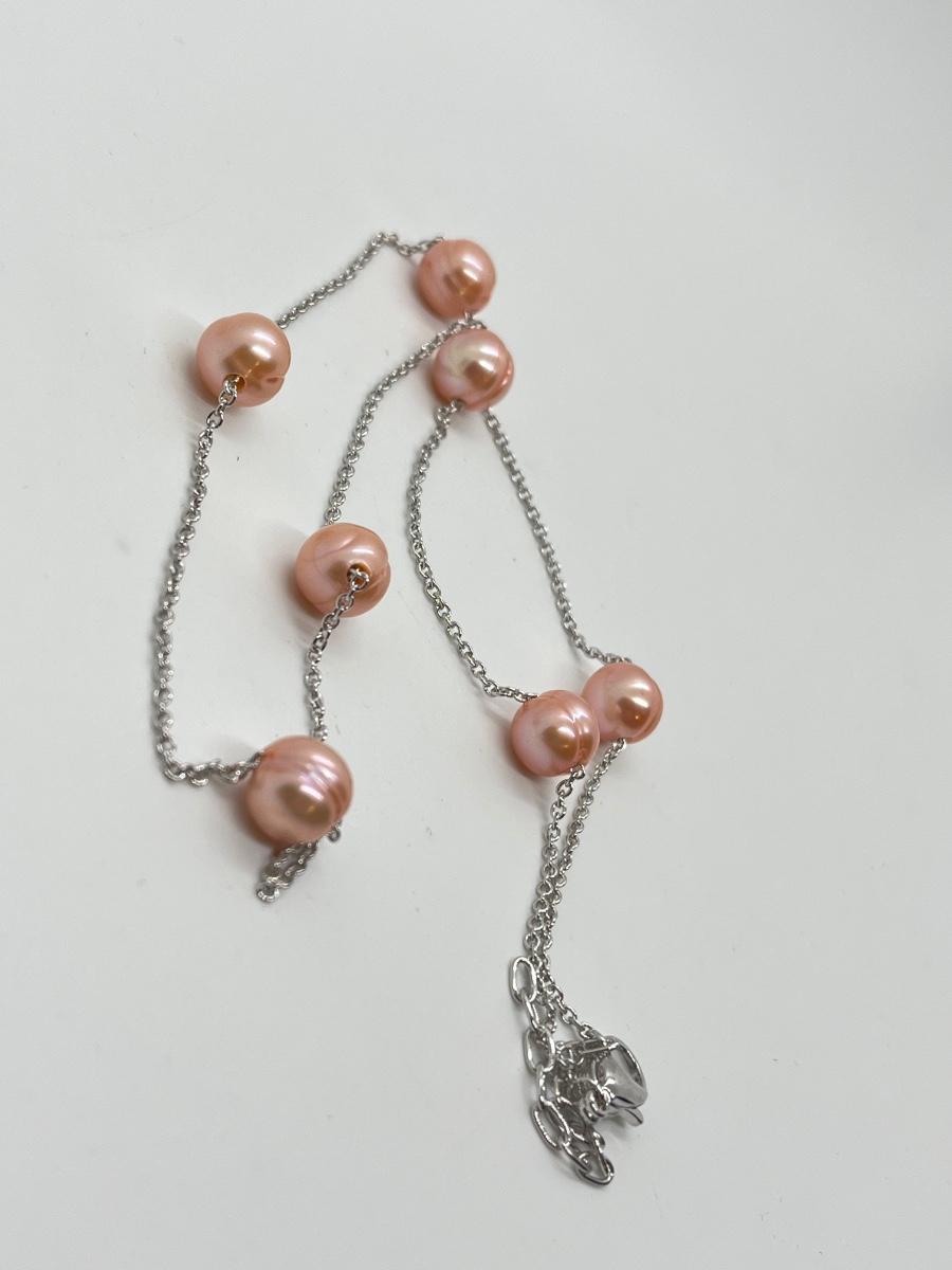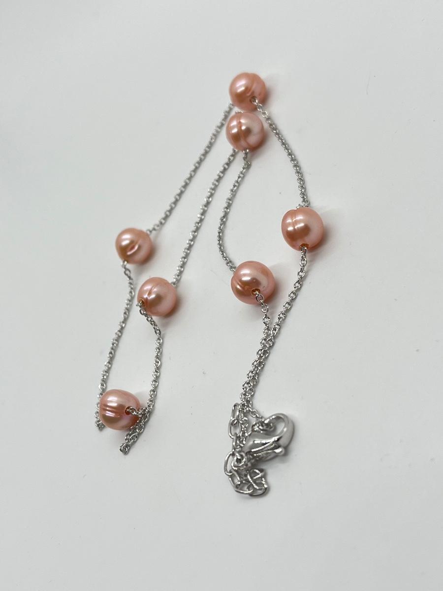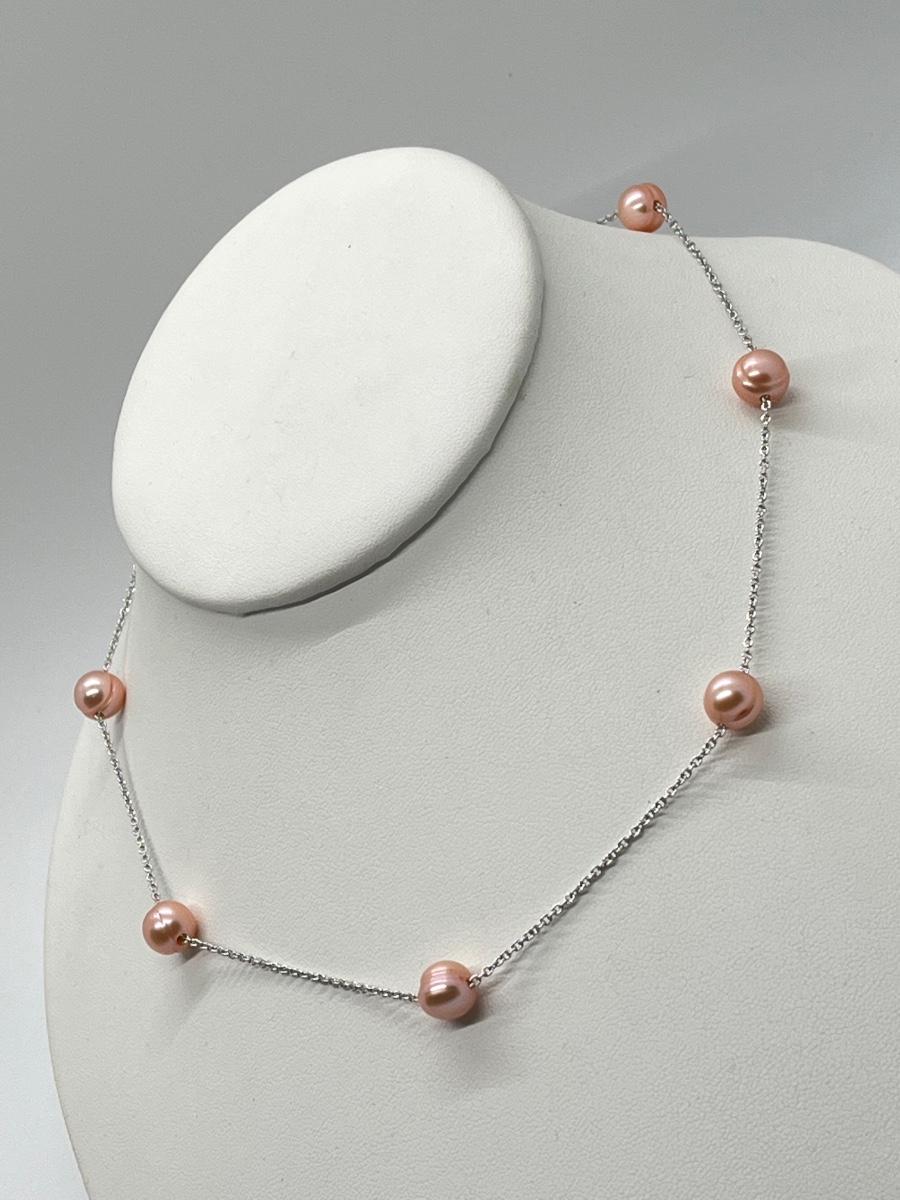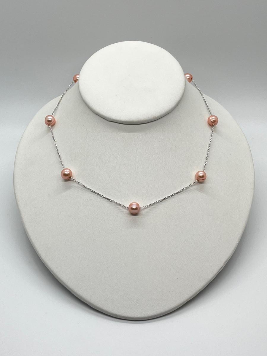 LOTJ60: Honora Cultured Pearl 8.0mm, Stainless Steel Station Necklace, 19"
