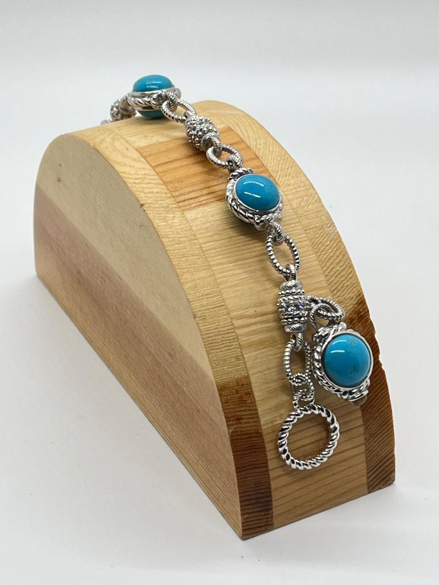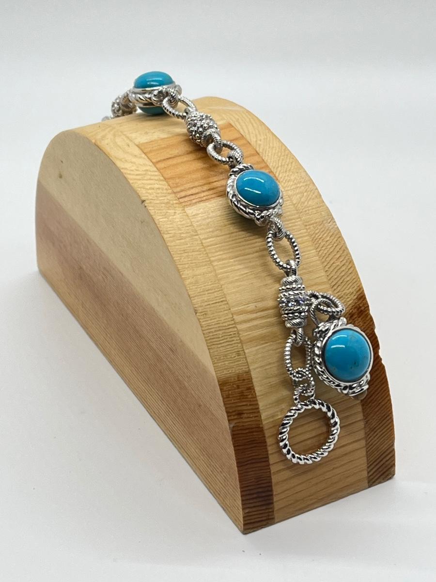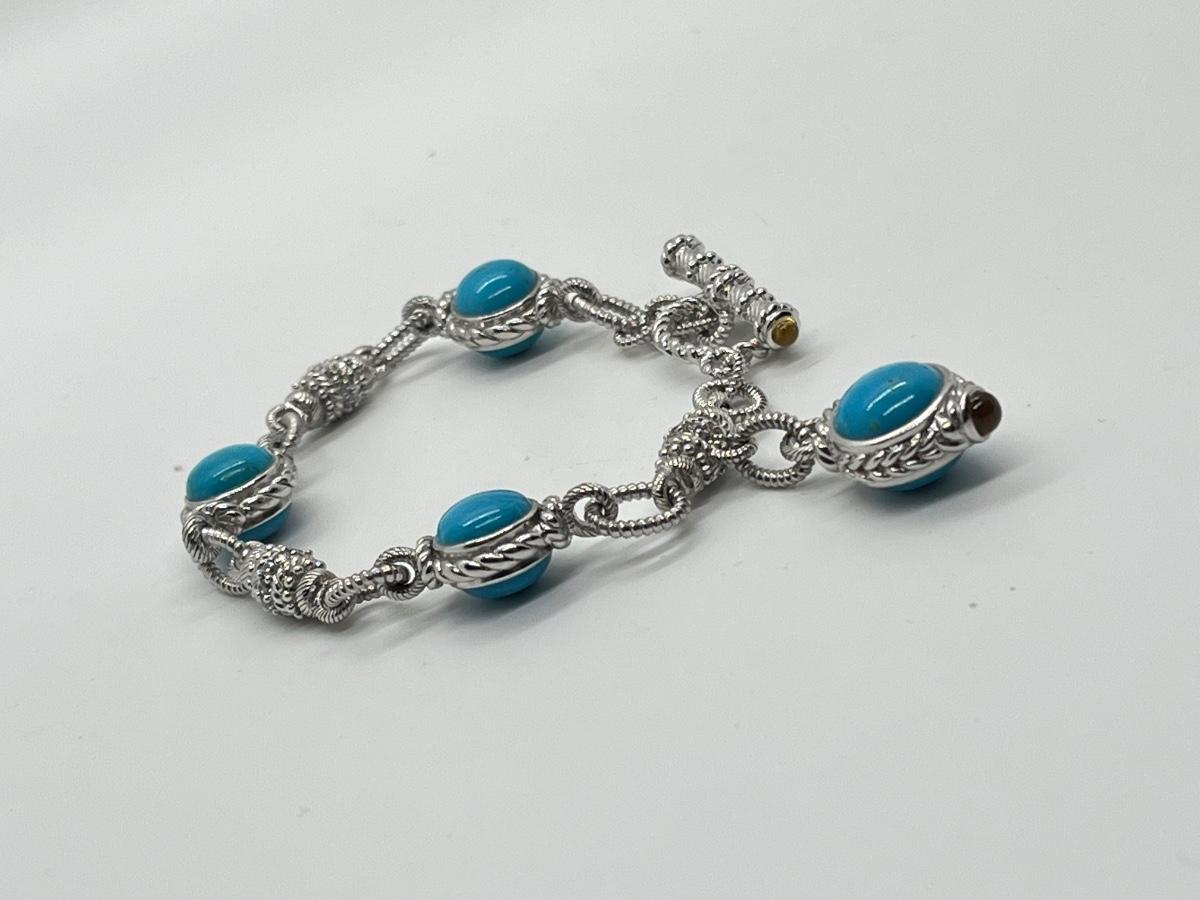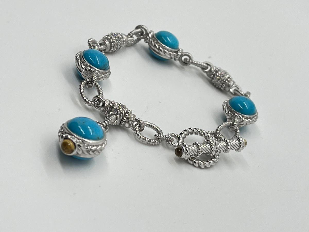 LOTJ 64: Judith Ripka Sterling Turquoise Bangle A-D Bracelet, 7.25"