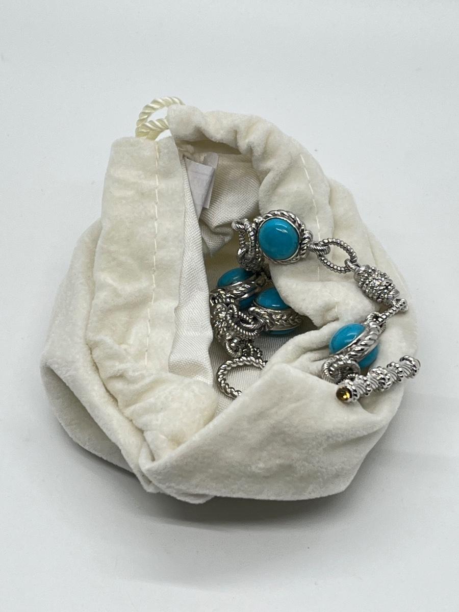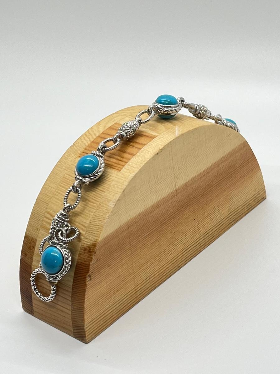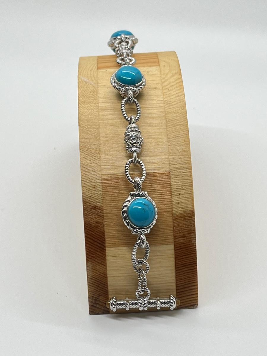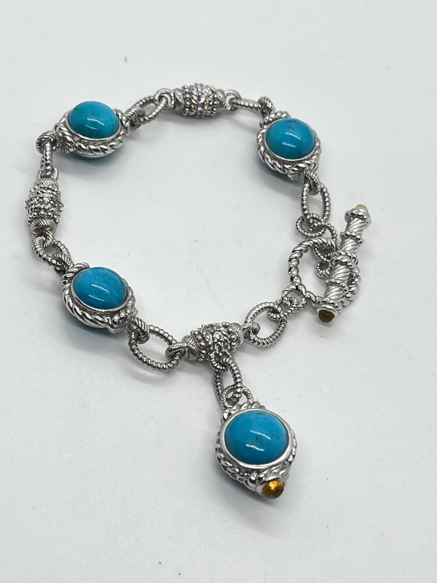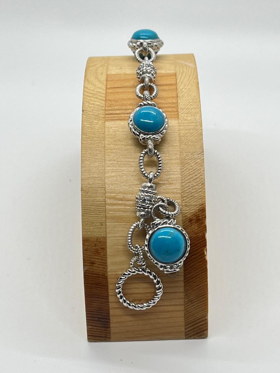 LOTJ 64: Judith Ripka Sterling Turquoise Bangle A-D Bracelet, 7.25"