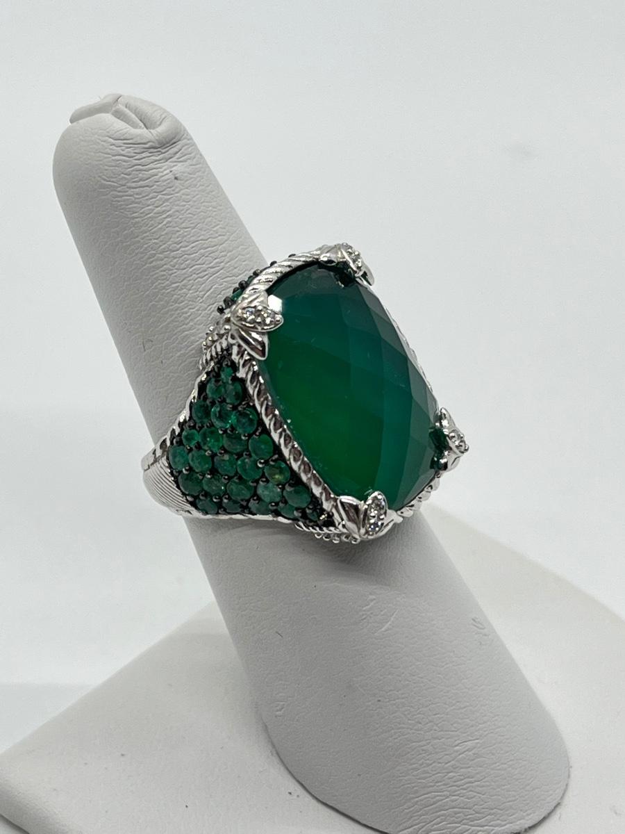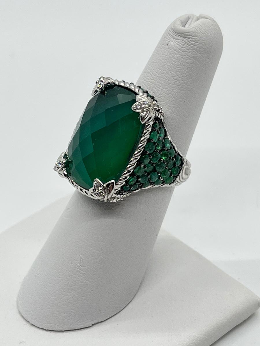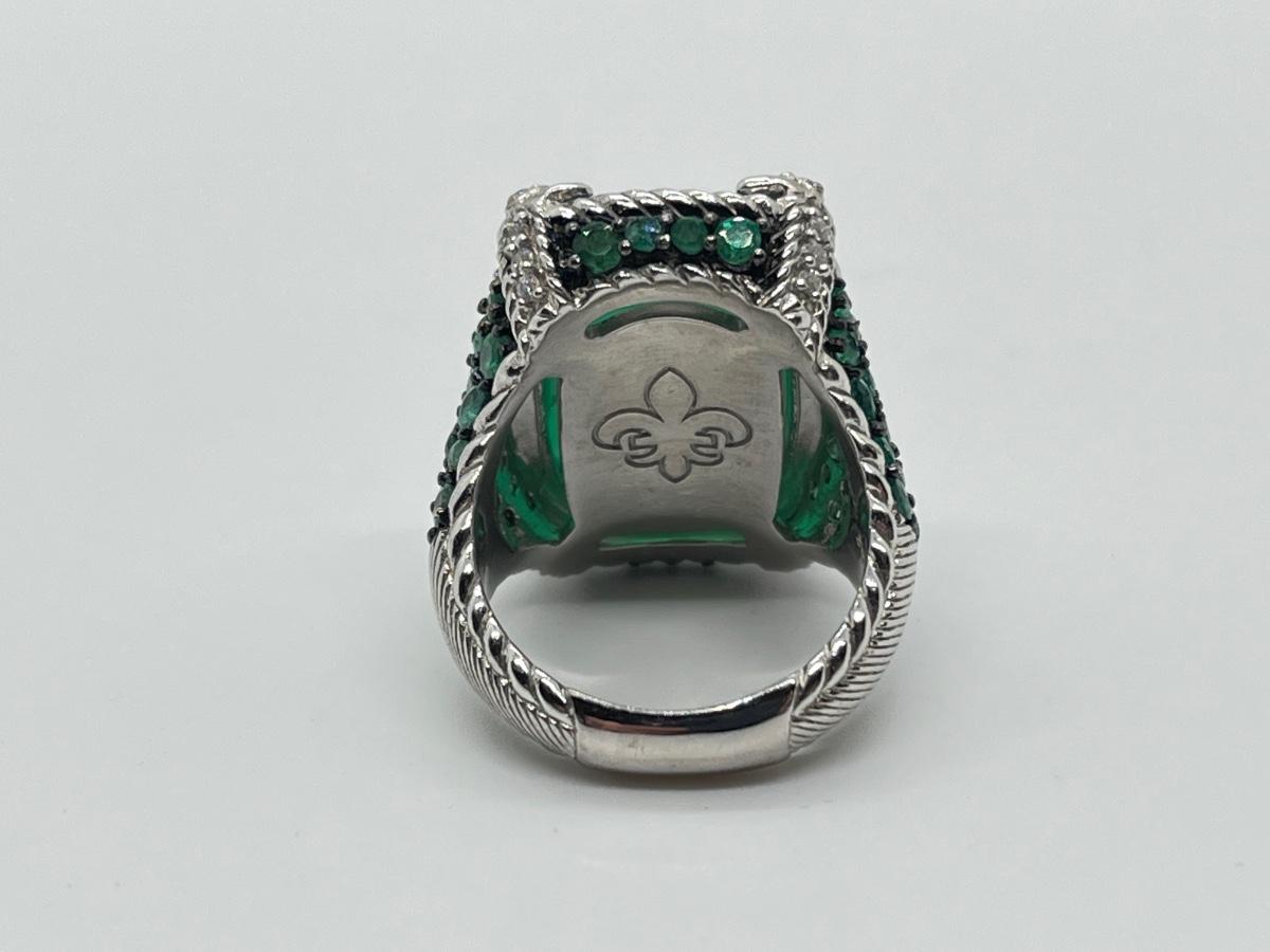 LOTJ 68: Judith Ripka Sterling Monaco Green Goddess Ring w/Emerald, Sz6