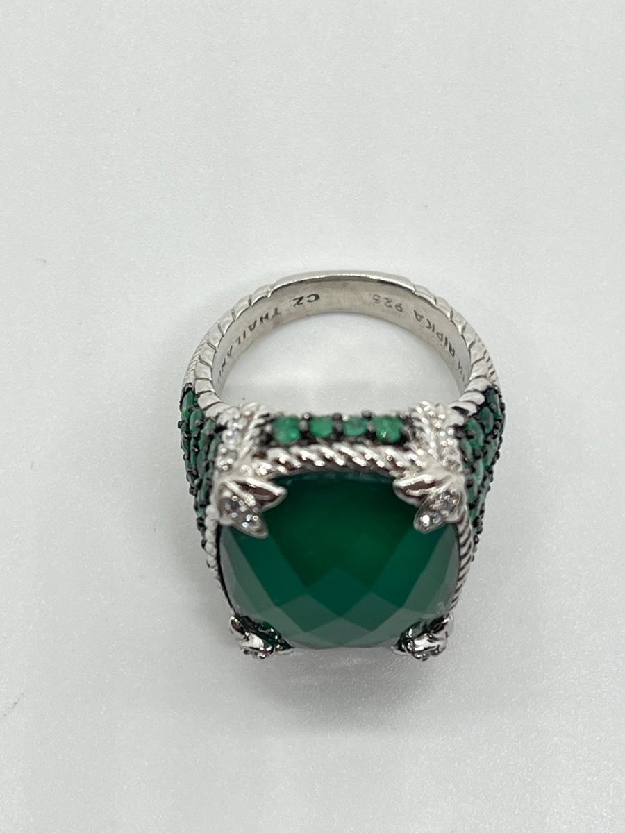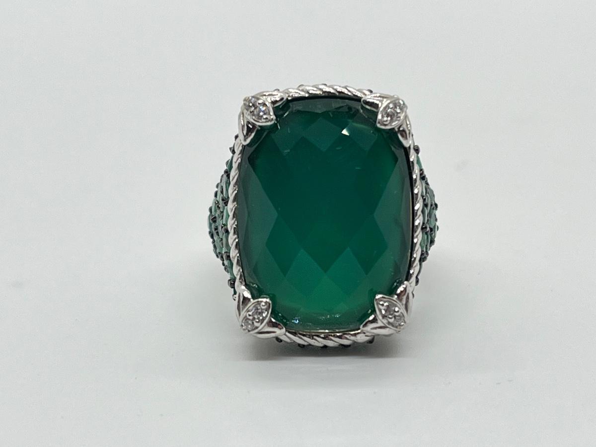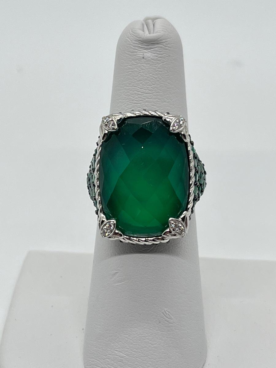 LOTJ 68: Judith Ripka Sterling Monaco Green Goddess Ring w/Emerald, Sz6