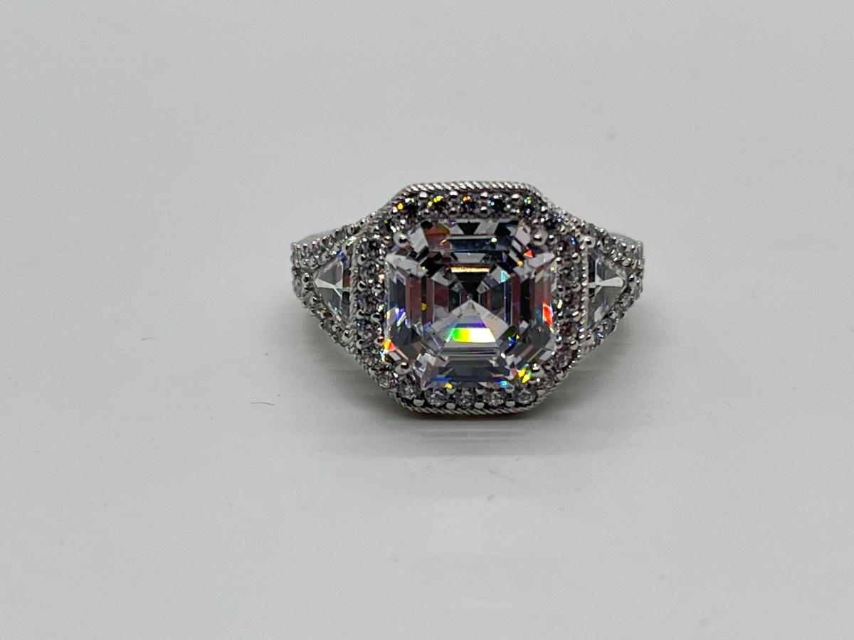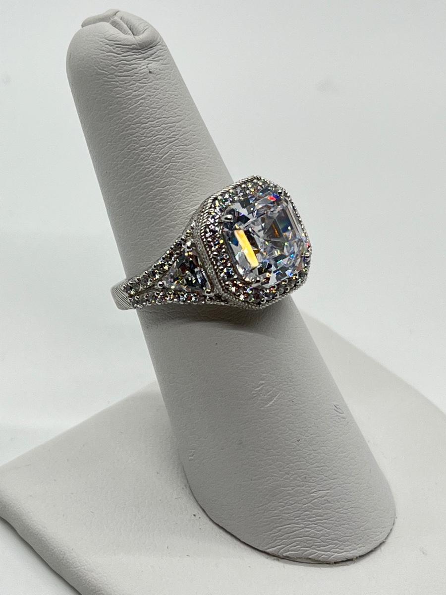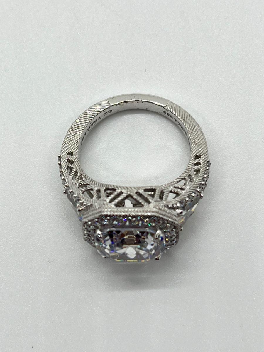 LOTJ69: Judith Ripka Sterling Silver  Asscher Cut Diamonique Ring, Sz6