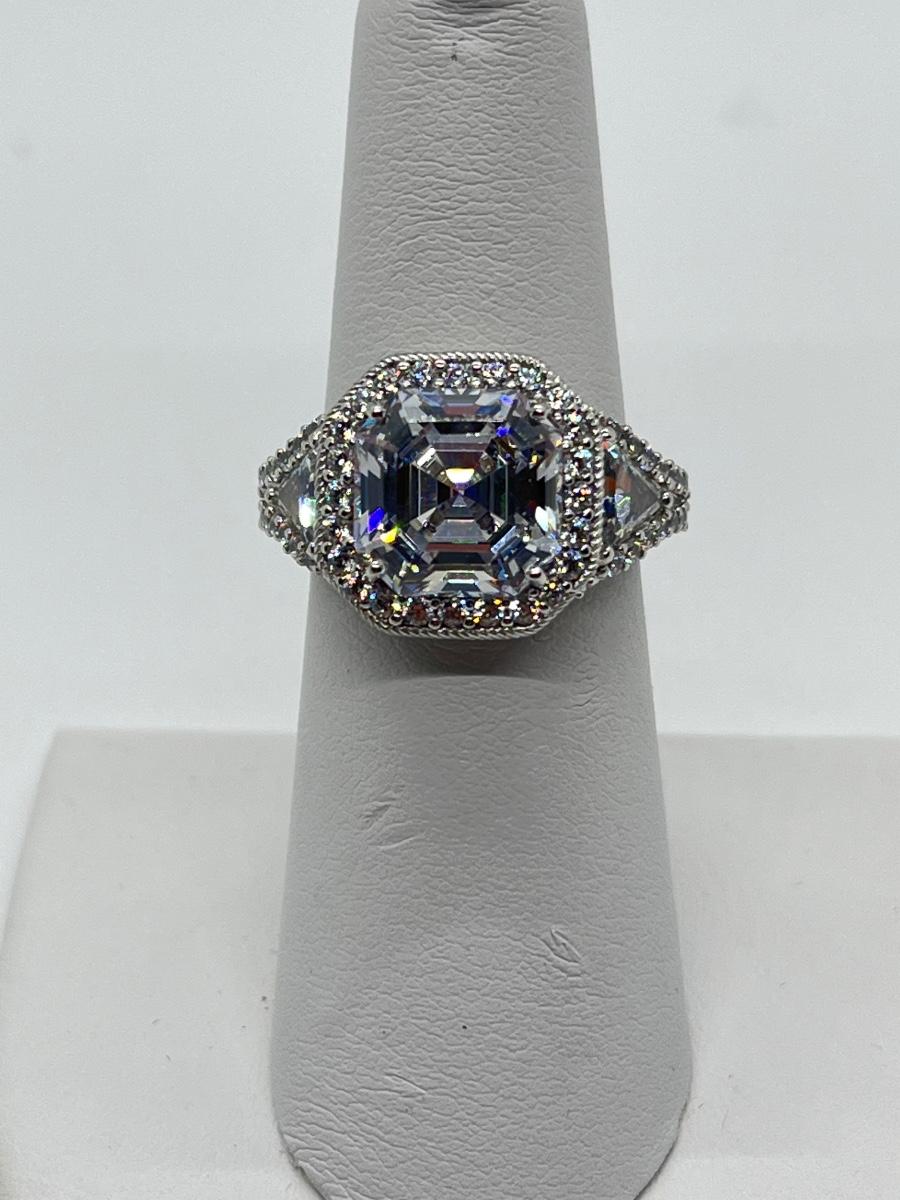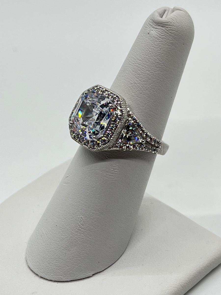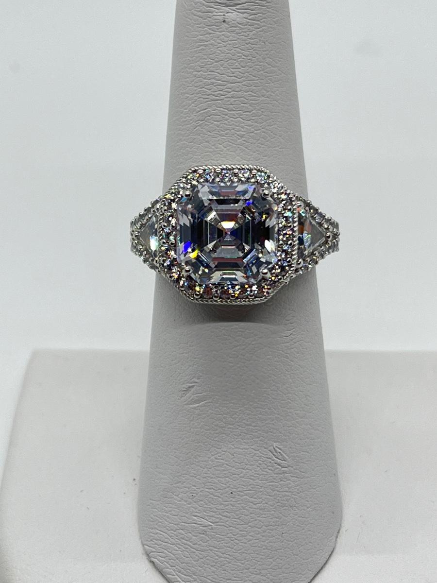 LOTJ69: Judith Ripka Sterling Silver  Asscher Cut Diamonique Ring, Sz6