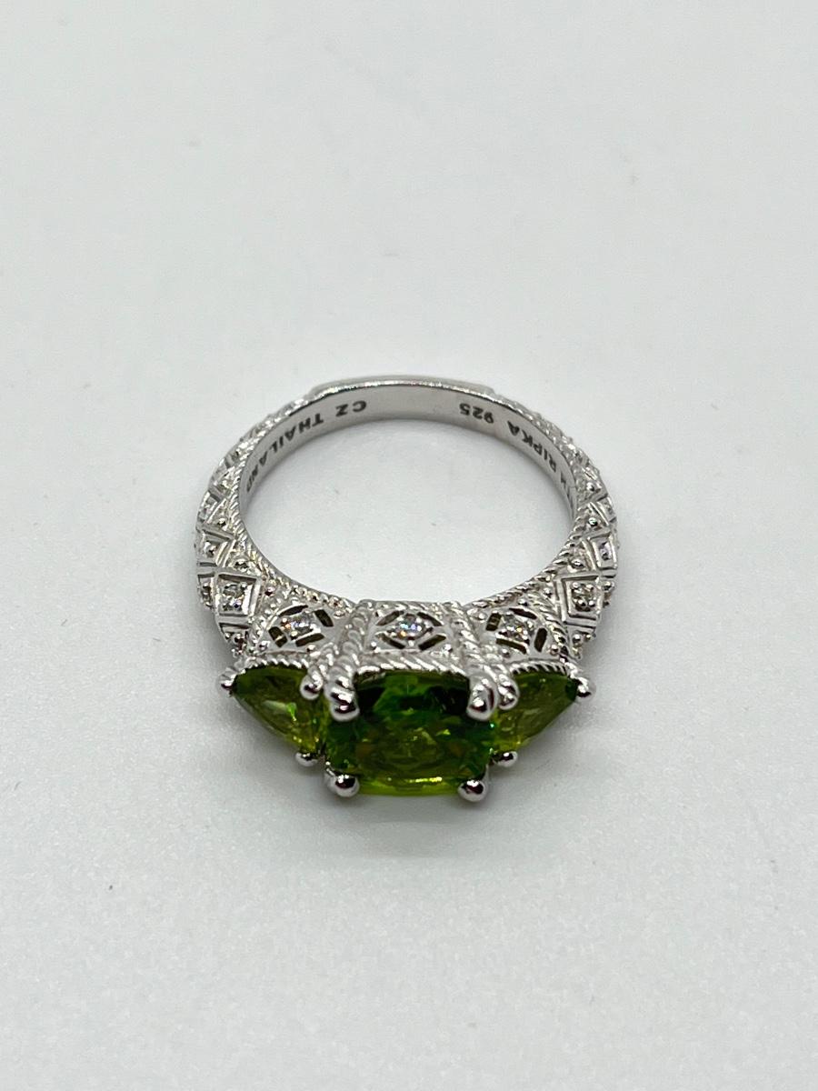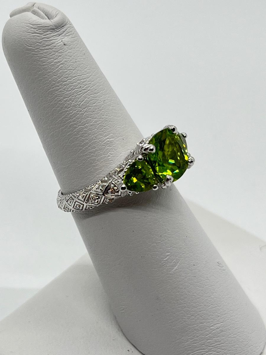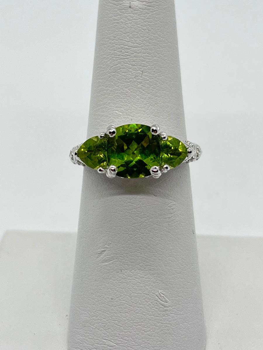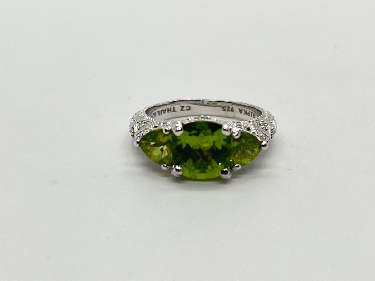 LOTJ70: Judith Ripka Sterling 3 Stone Gemstone Ring, Peridot, Sz6