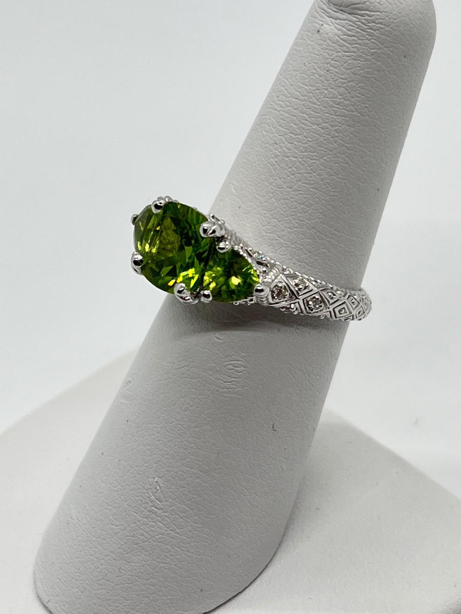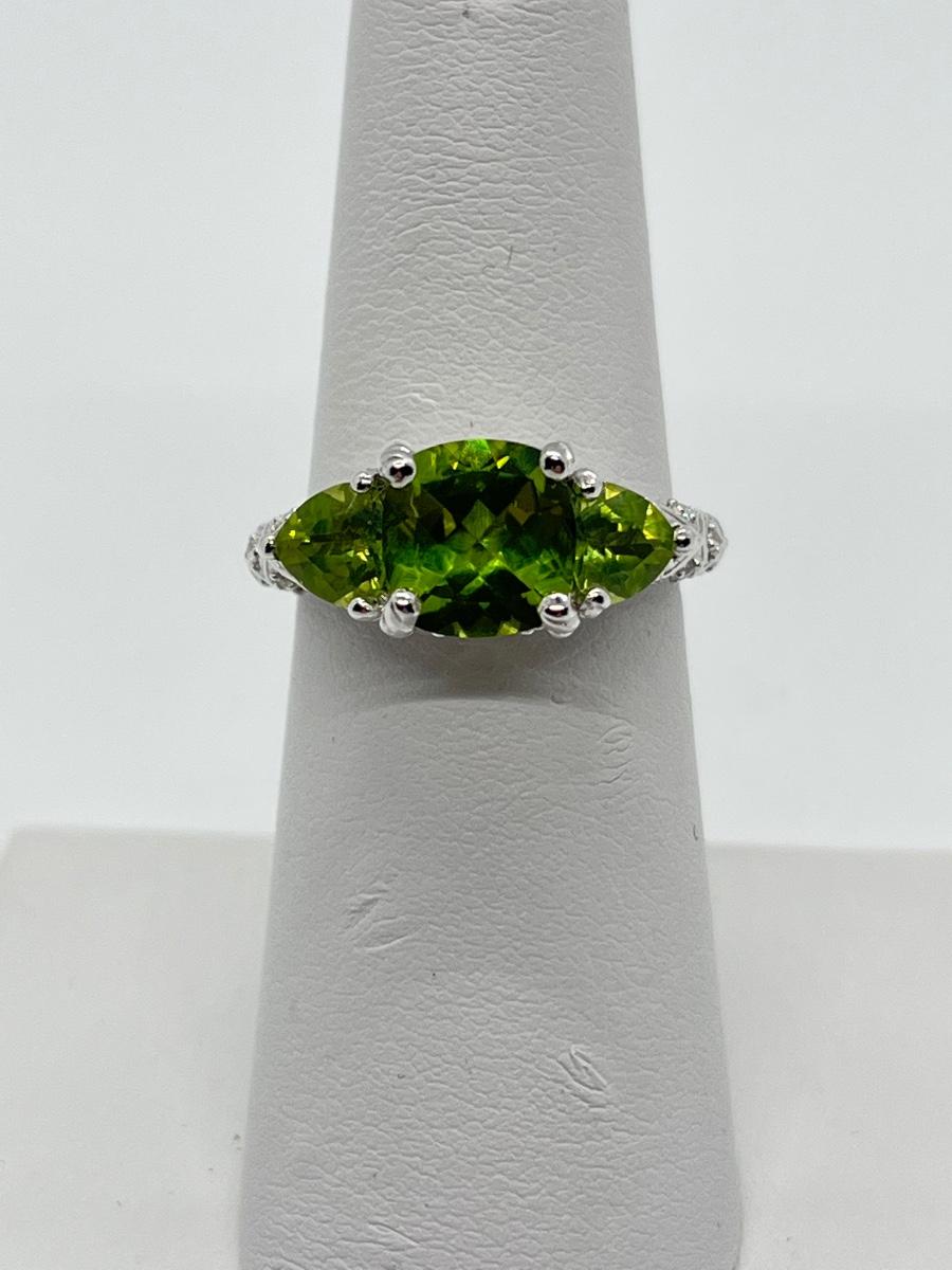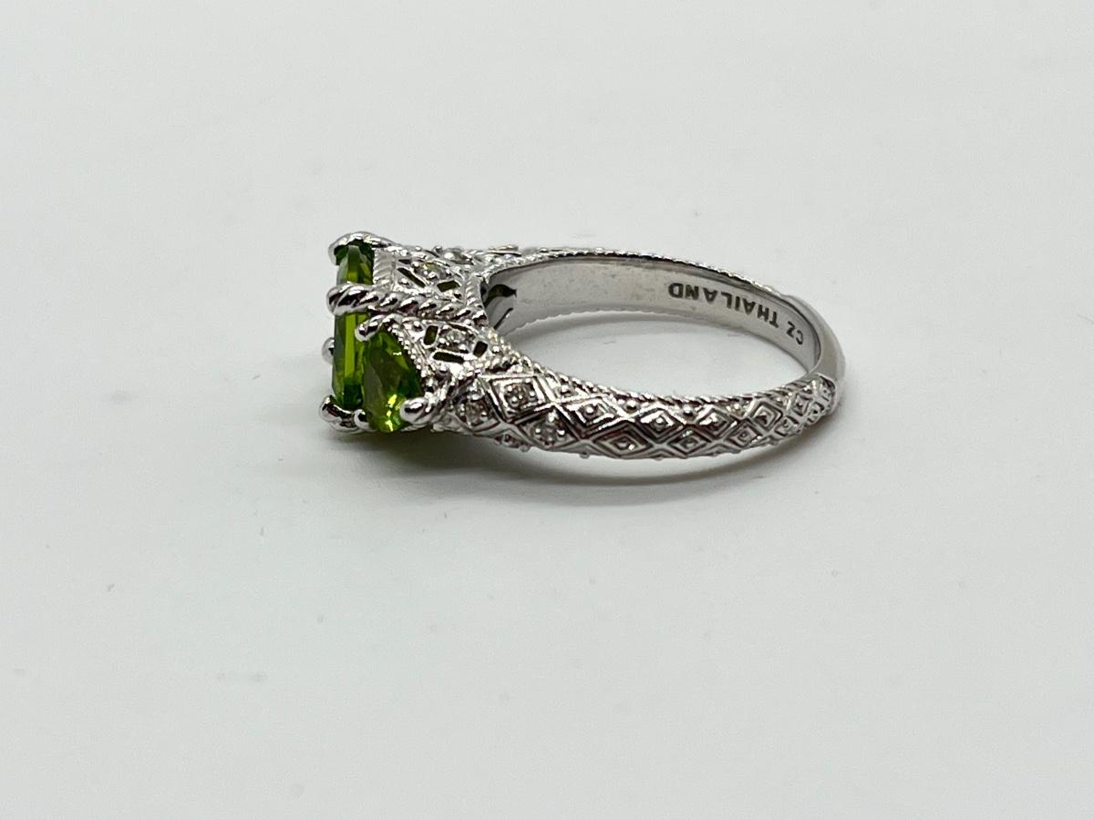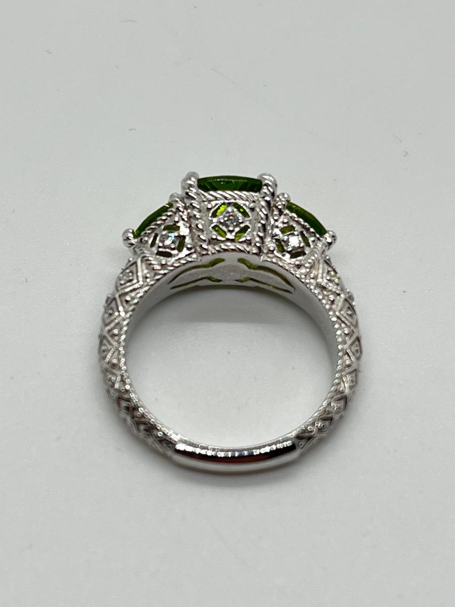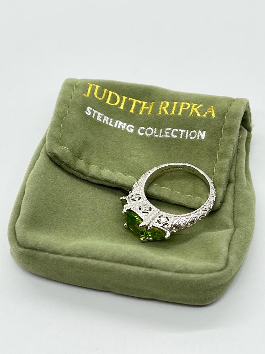 LOTJ70: Judith Ripka Sterling 3 Stone Gemstone Ring, Peridot, Sz6