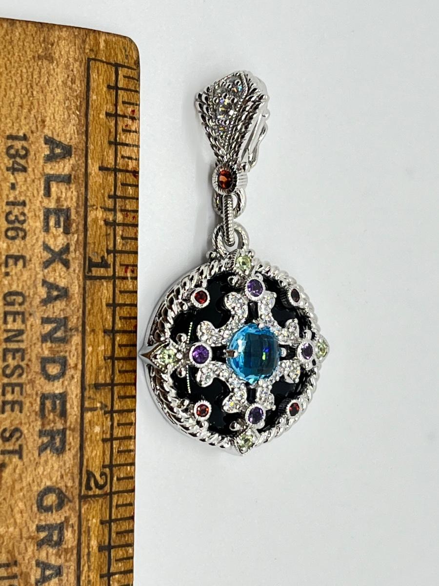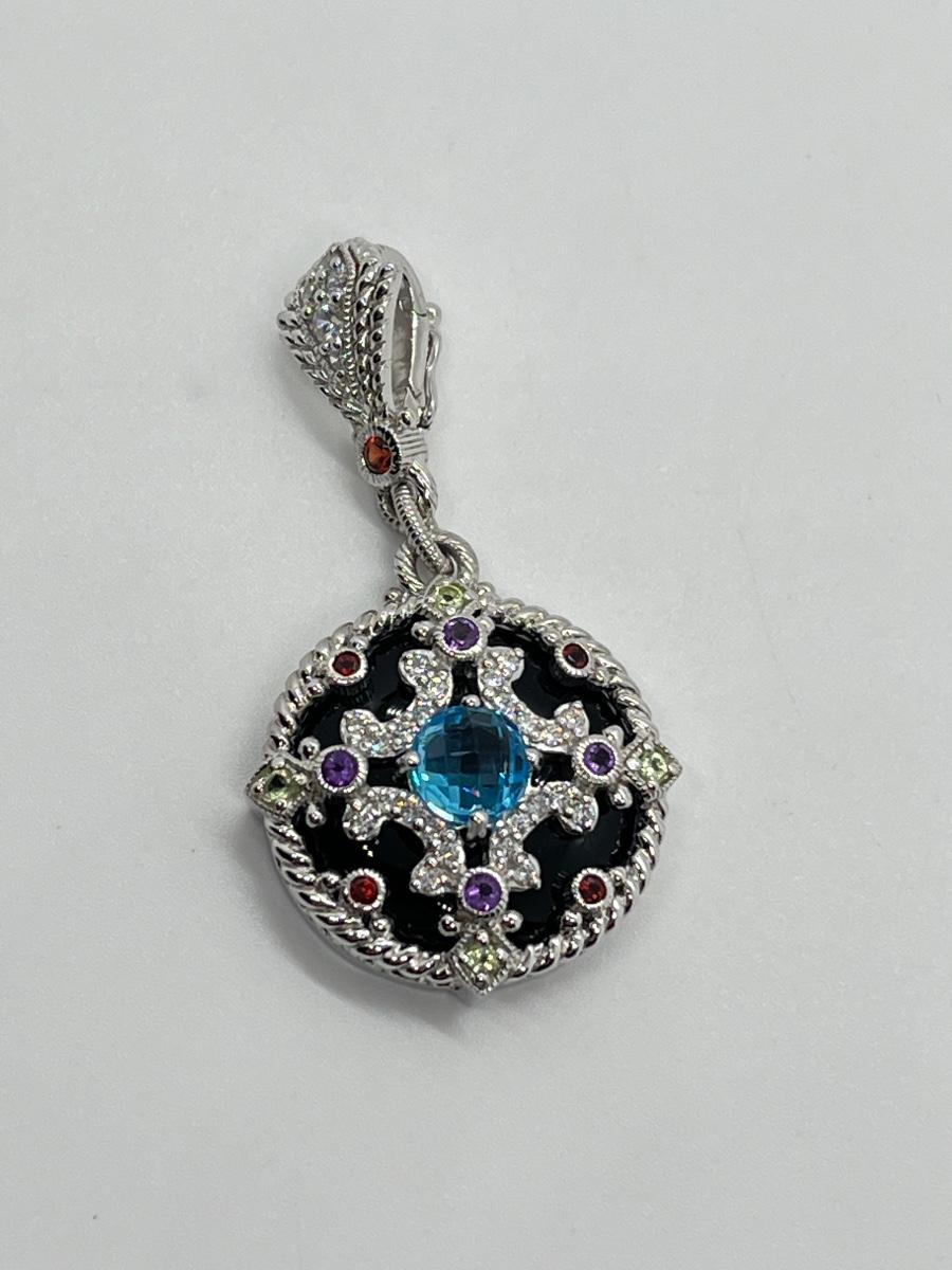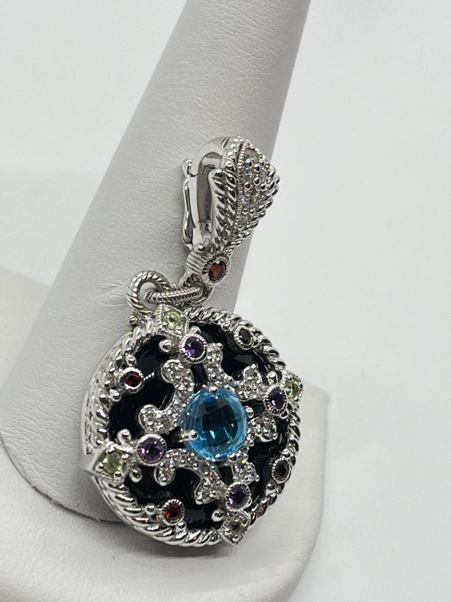 LOTJ 72: Judith Ripka Sterling, Onyx , Multi Gemstone Pendant