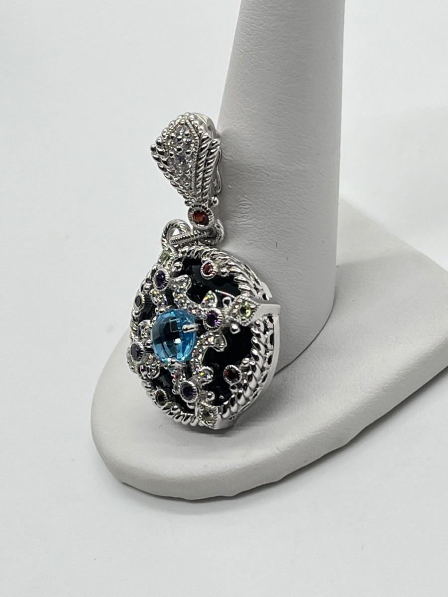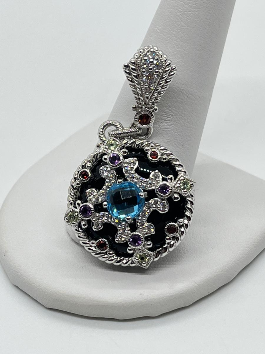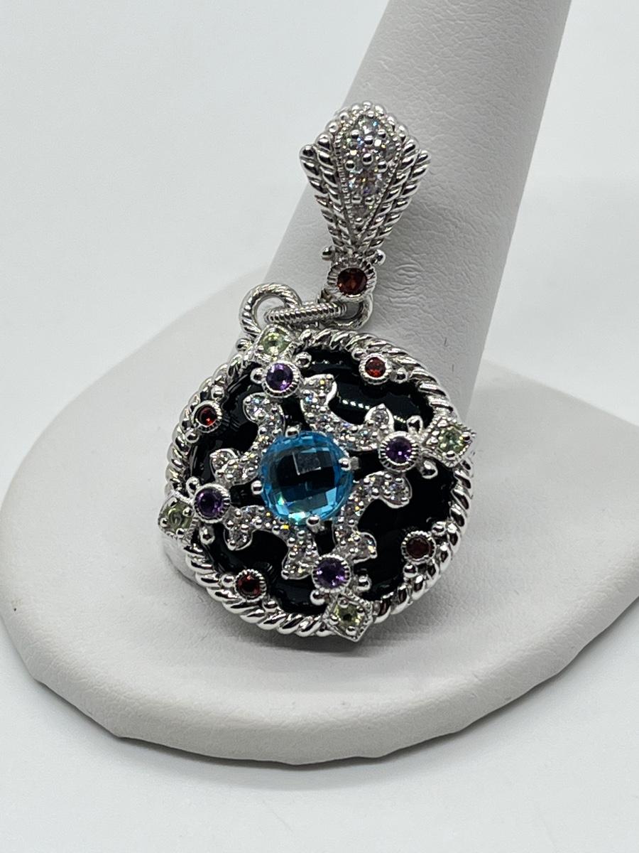 LOTJ 72: Judith Ripka Sterling, Onyx , Multi Gemstone Pendant