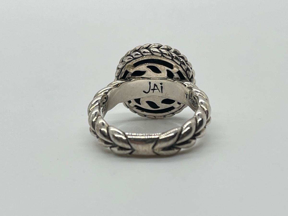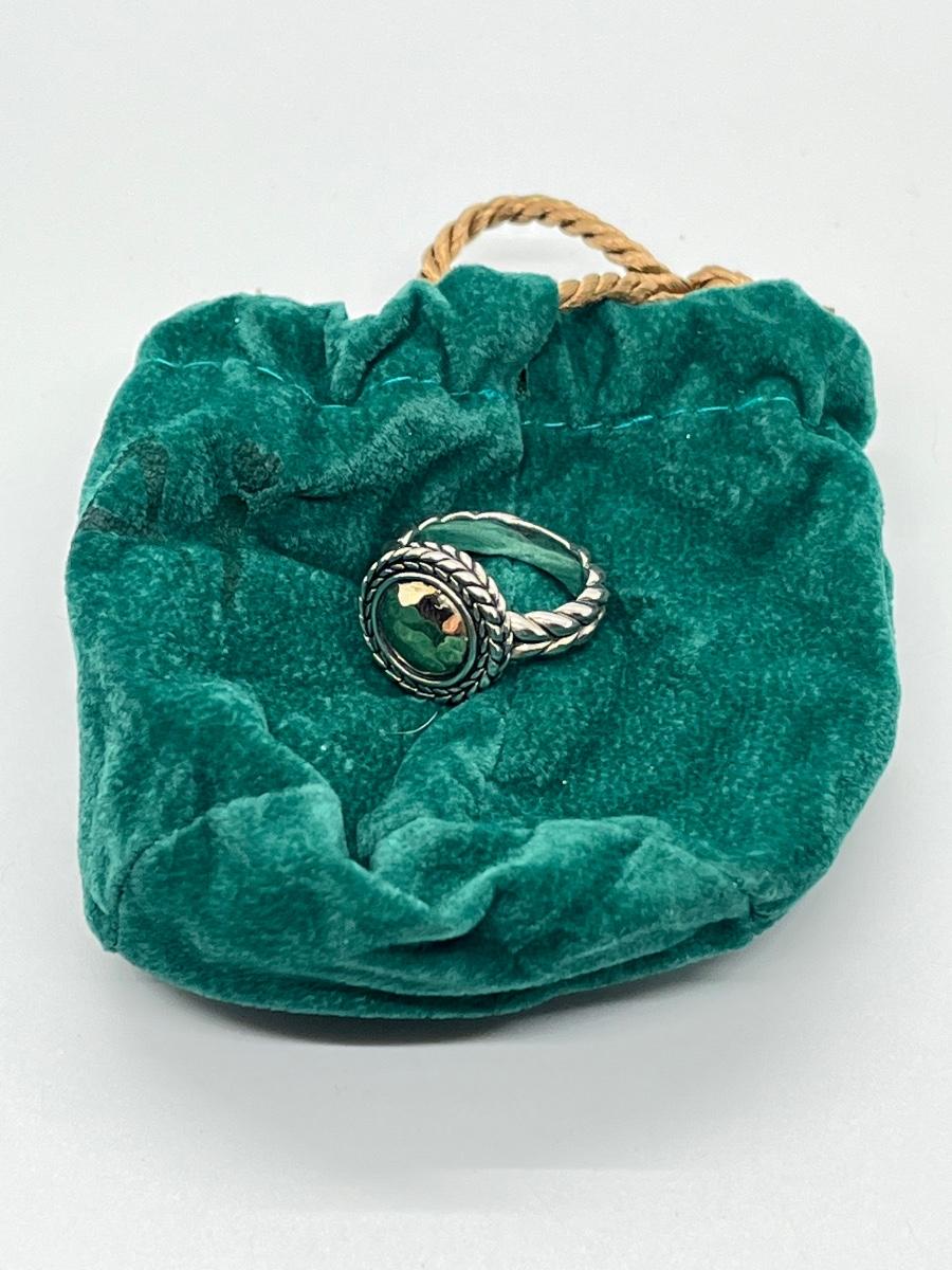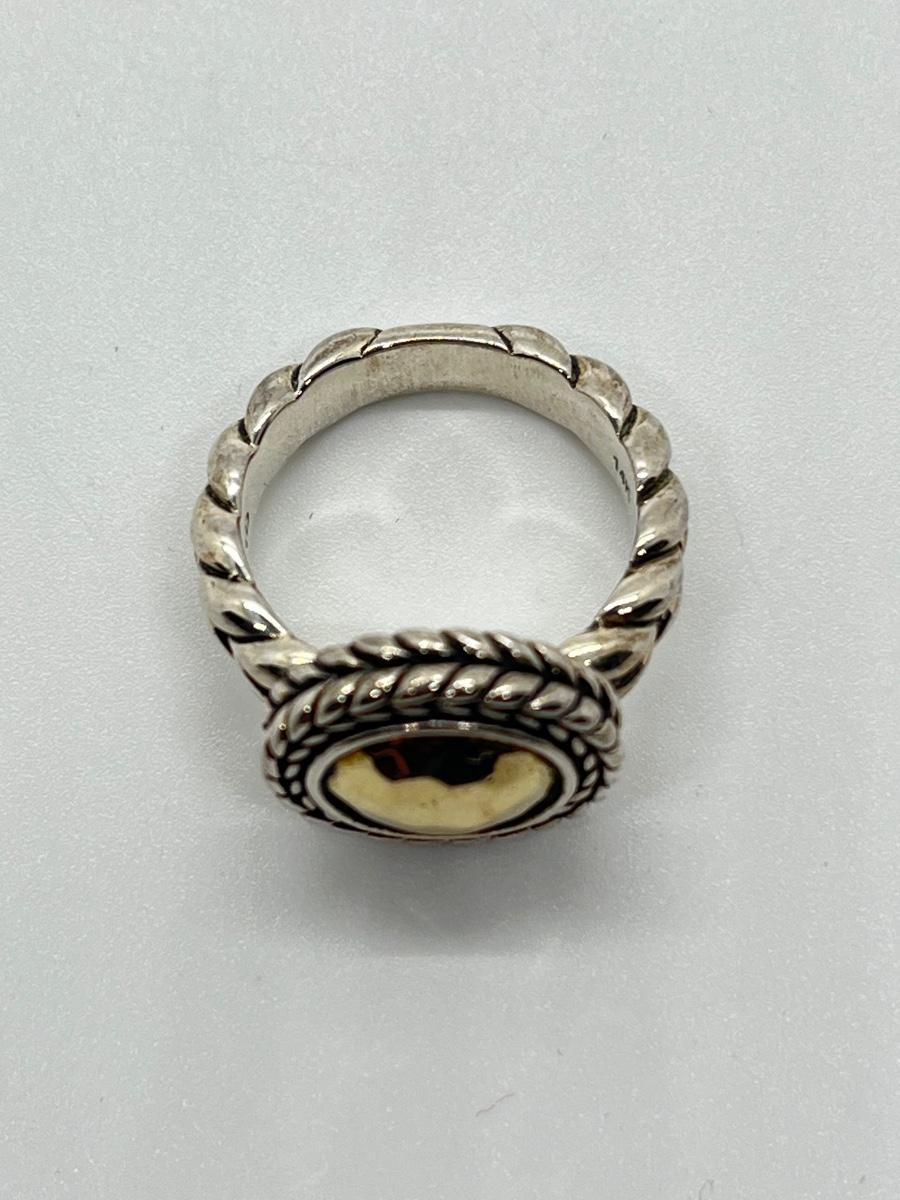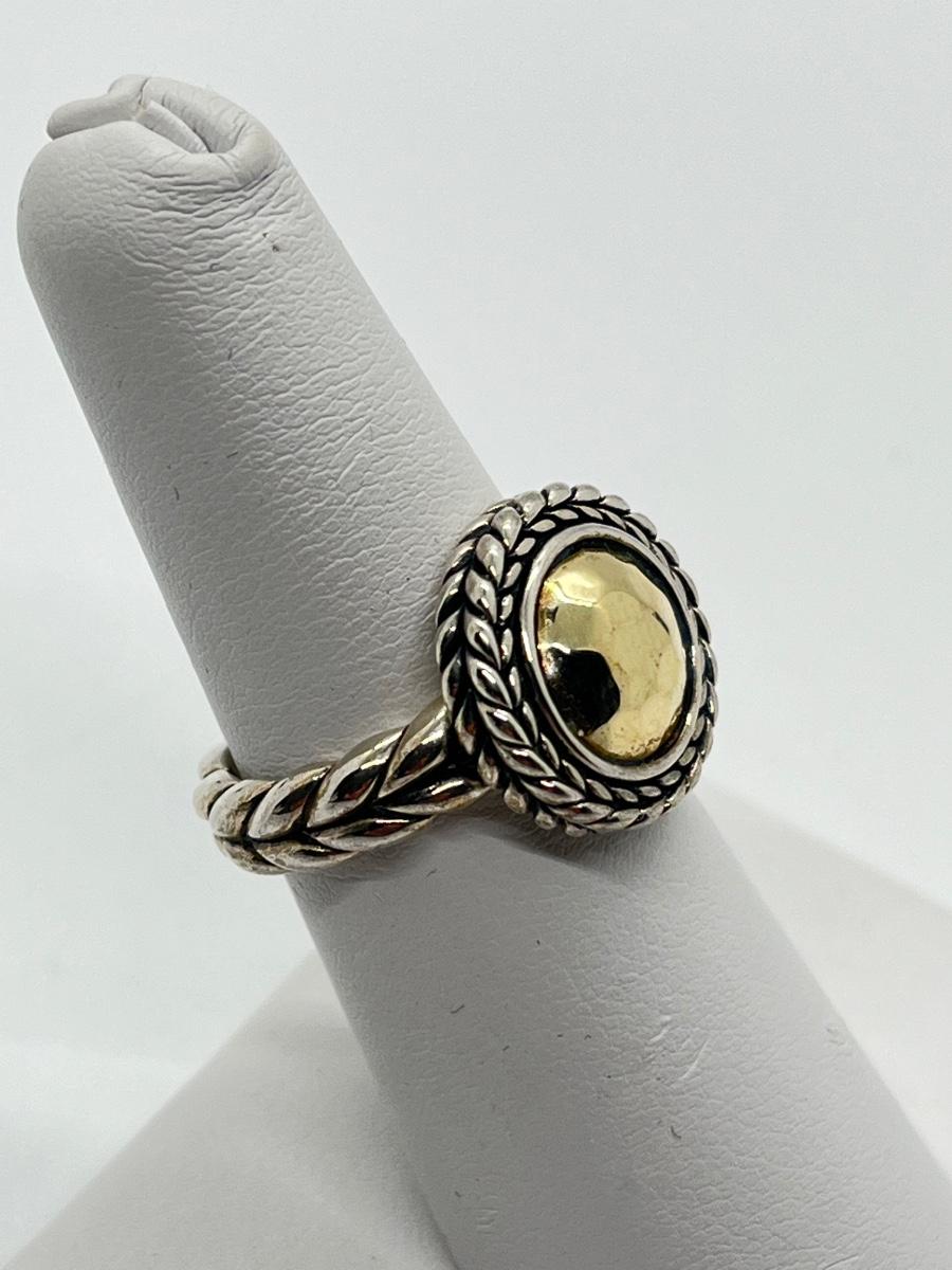 LOTJ76: JAI Sterling Sliver & 14K Gold Hammered Disk Disk Ring, 14k Gold Plate, Sz6