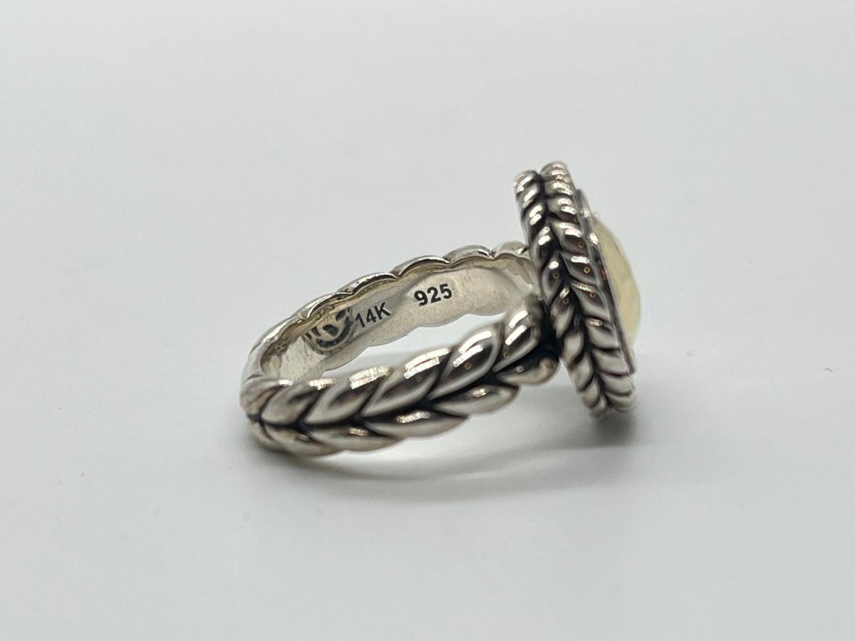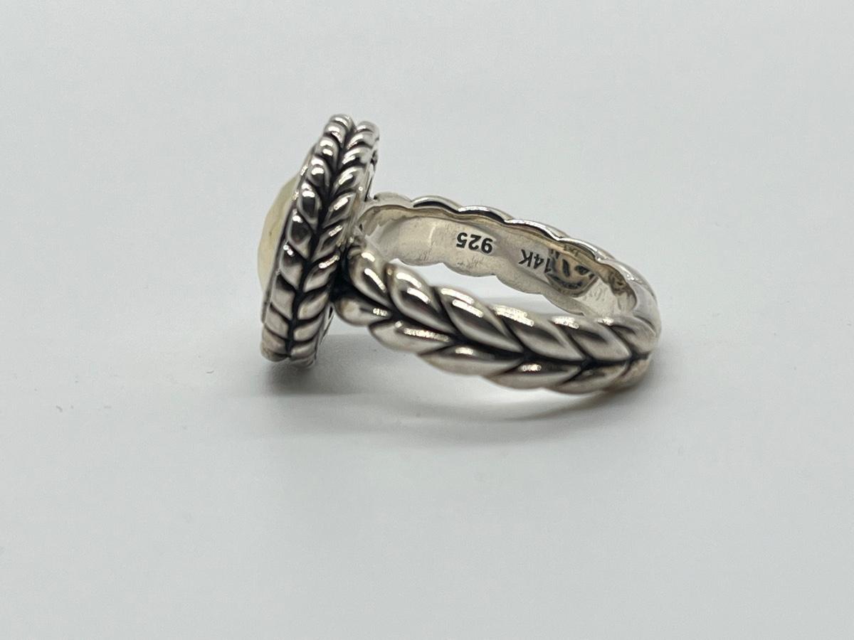 LOTJ76:  JAI Sterling Sliver & 14K Gold Hammered Disk Disk Ring, 14k Gold Plate, Sz6