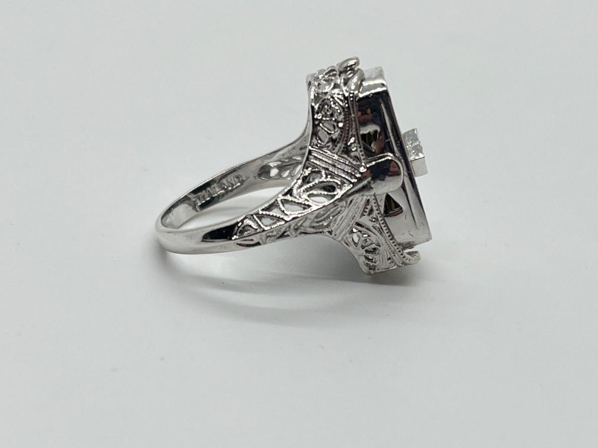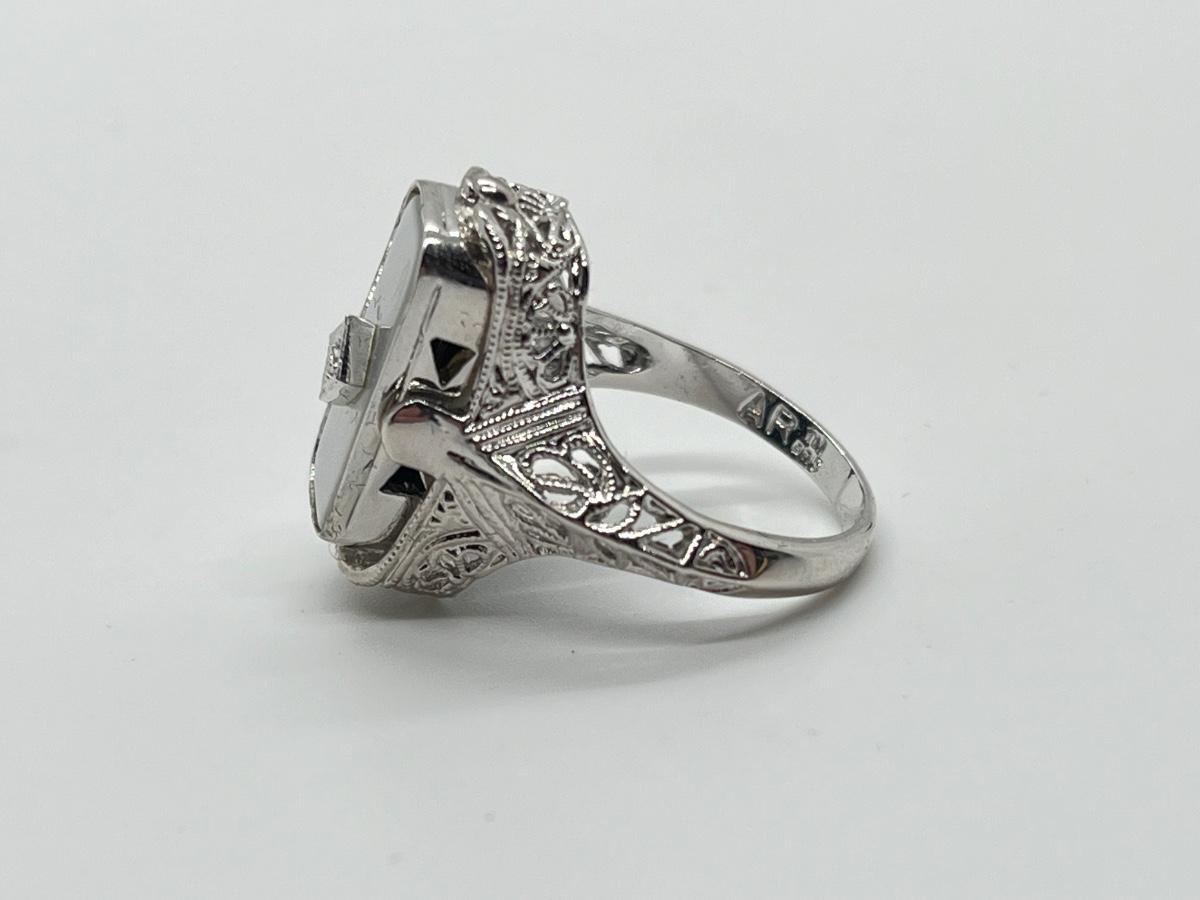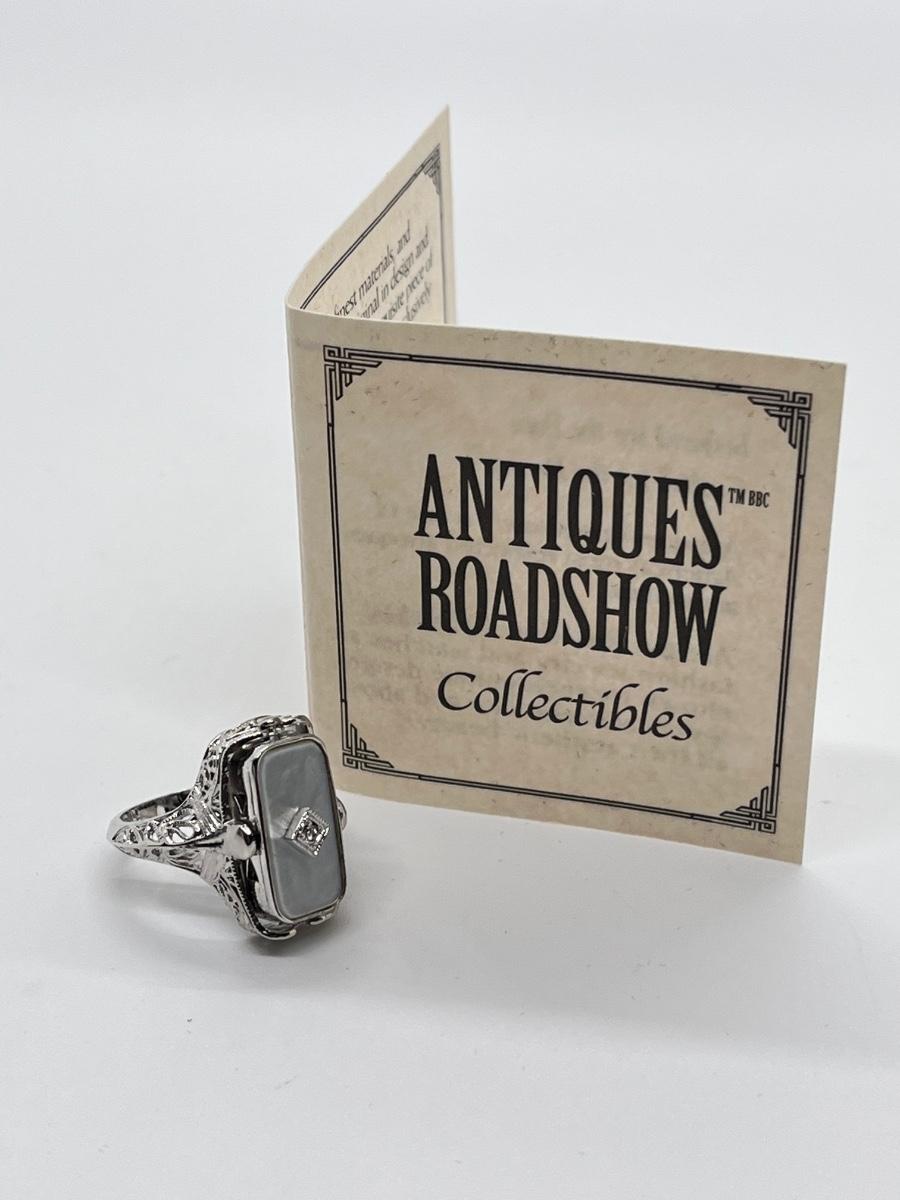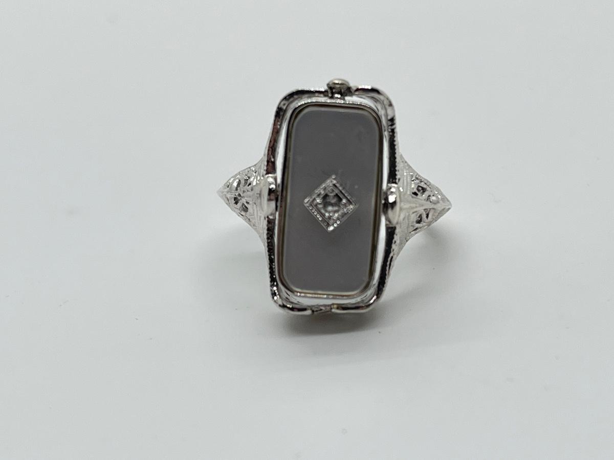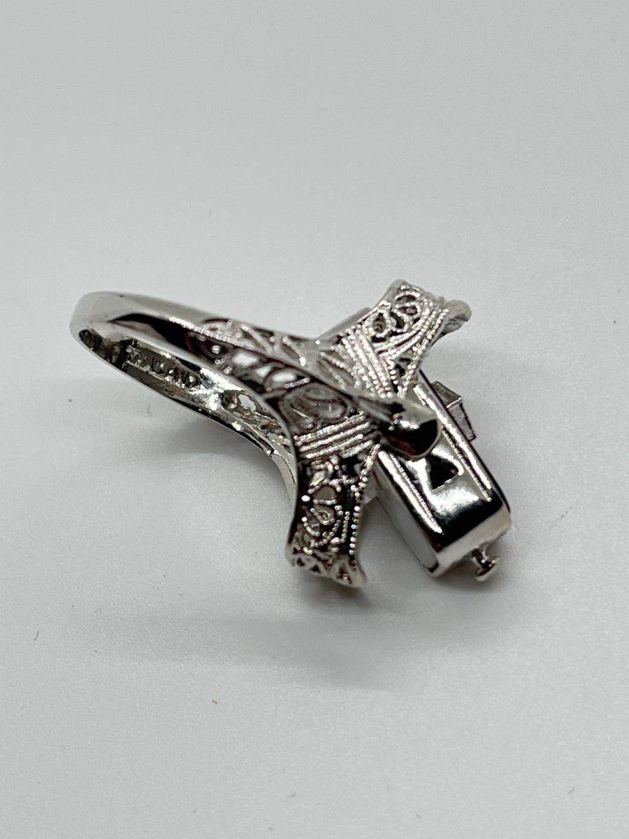 LOTJ78: Antique Roadshow 1920"s Style Silvertone Reversible Ring, Sz6
