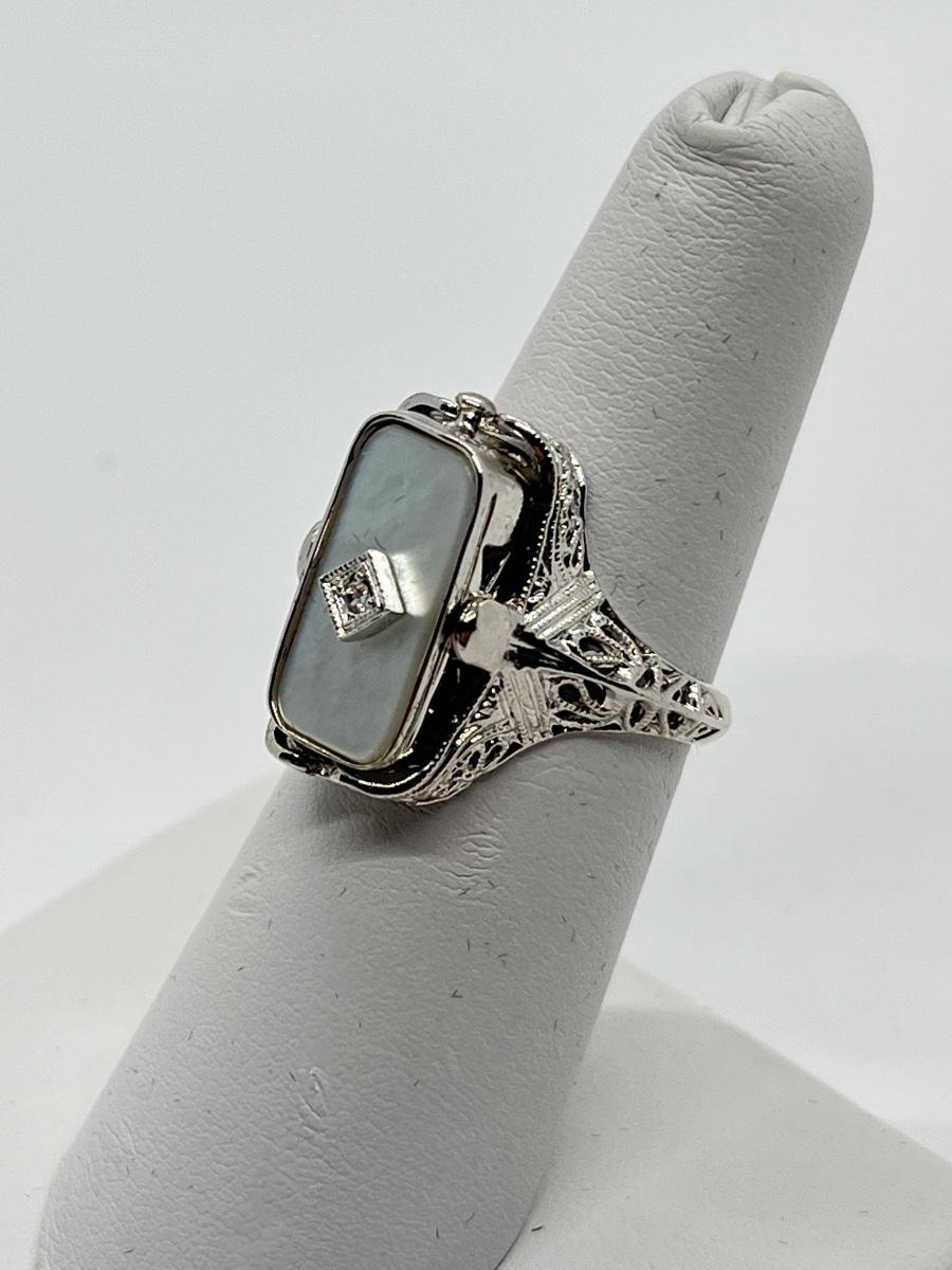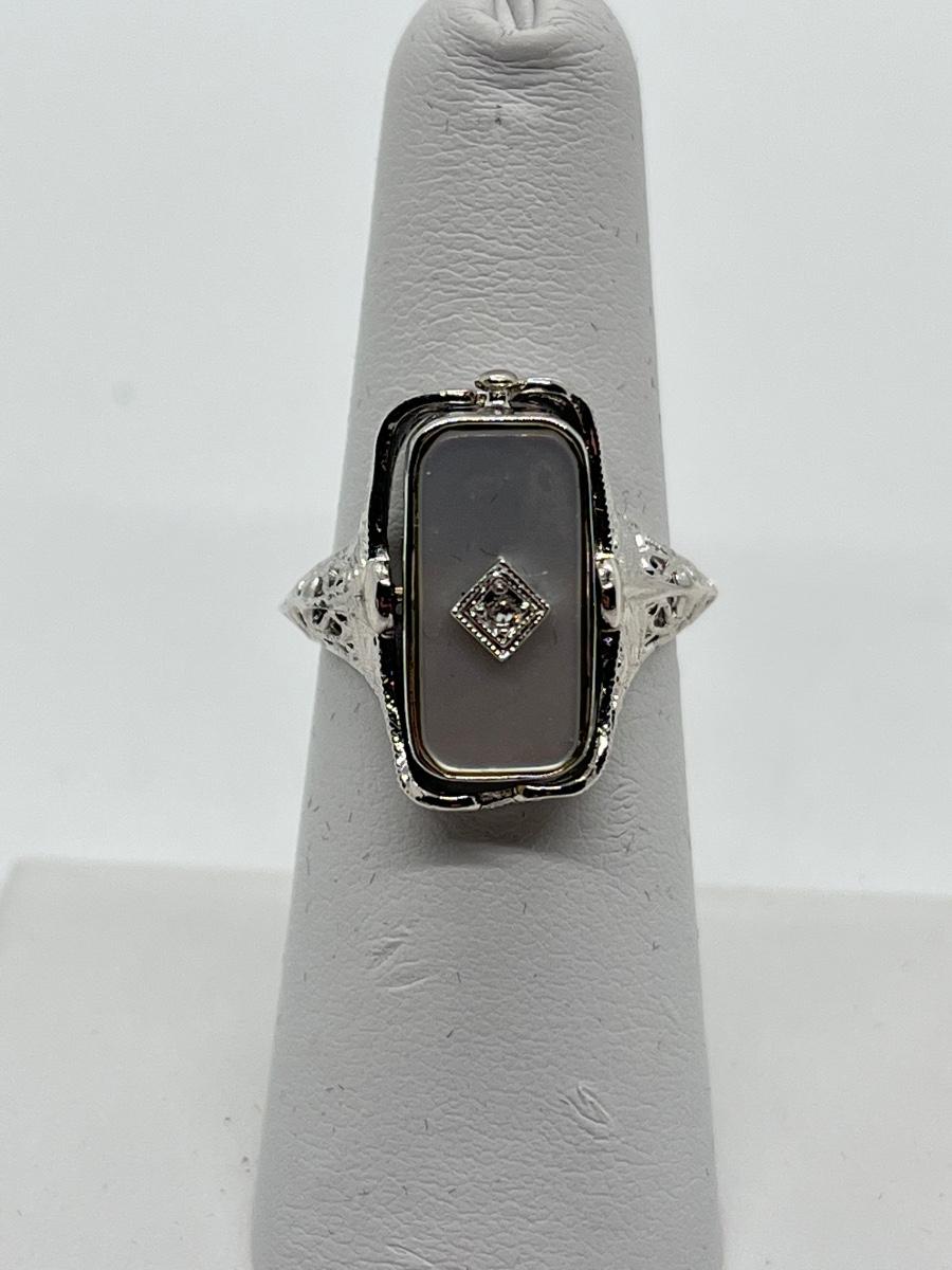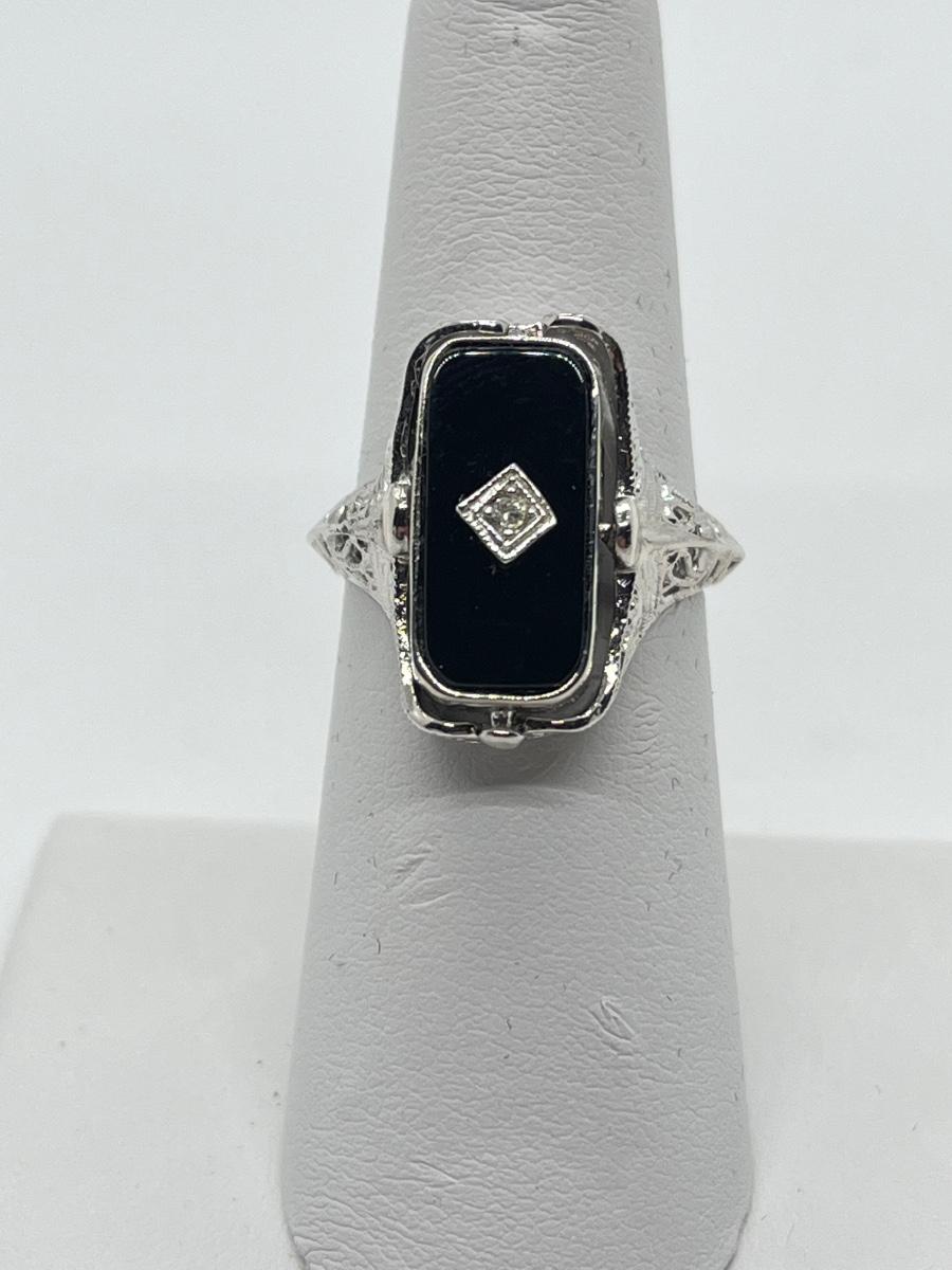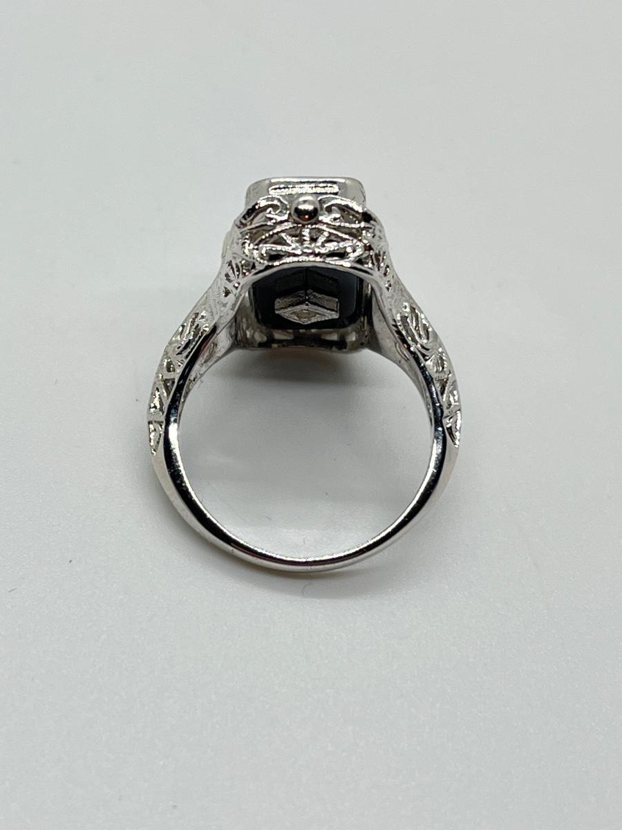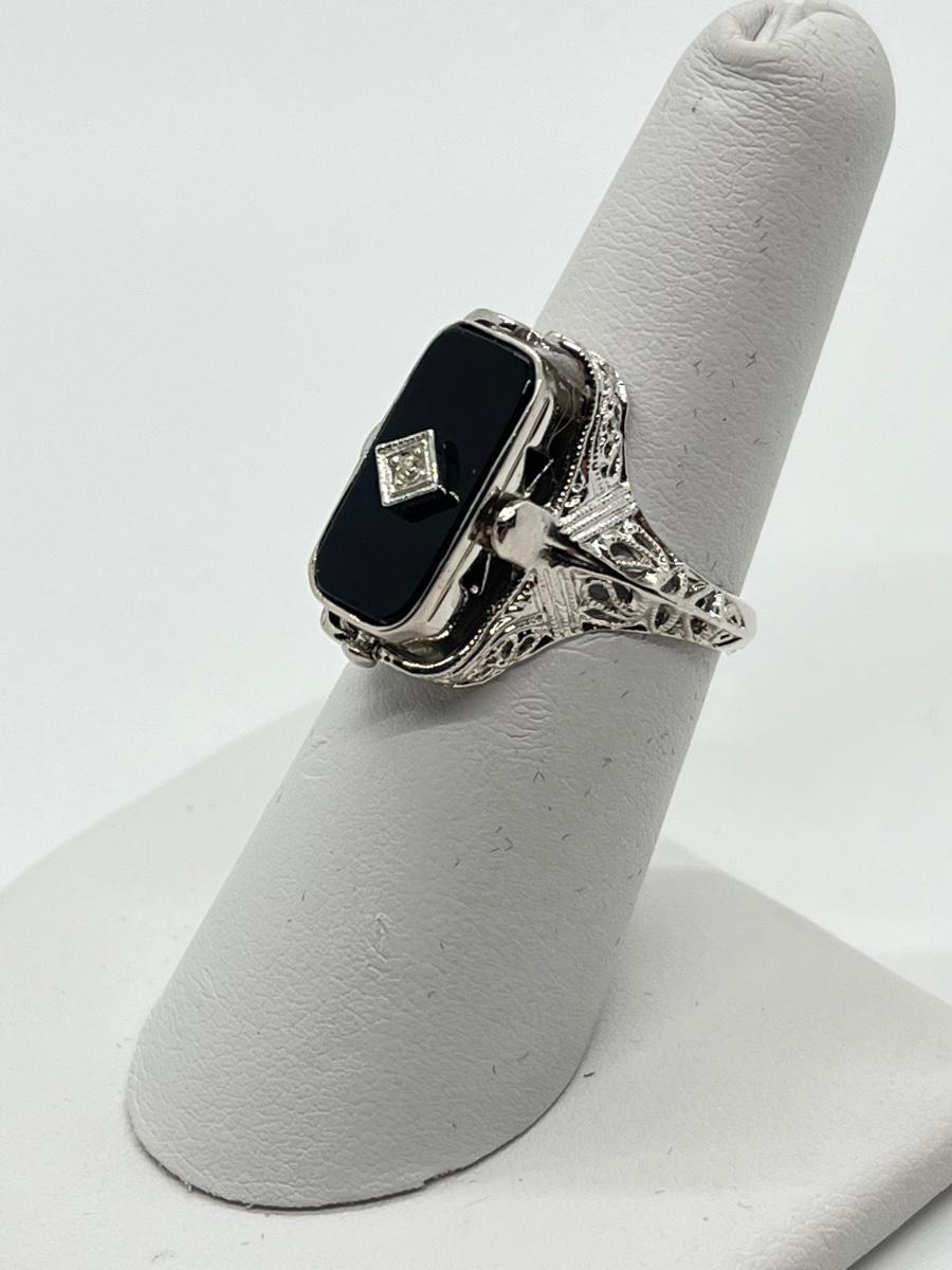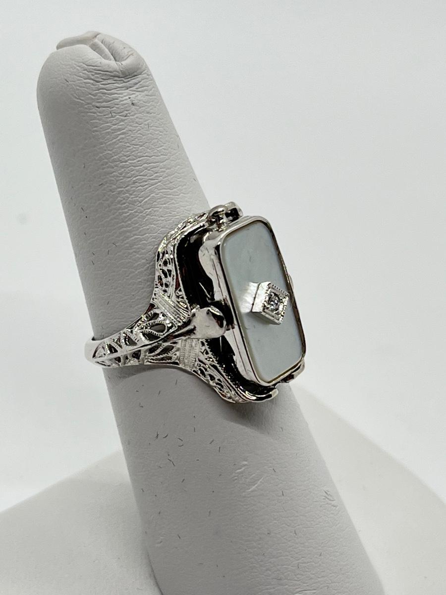 LOTJ78: Antique Roadshow 1920"s Style Silvertone Reversible Ring, Sz6
