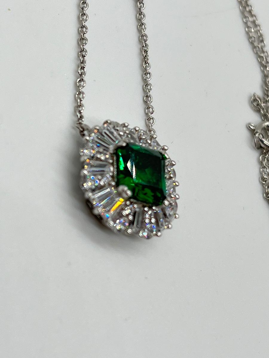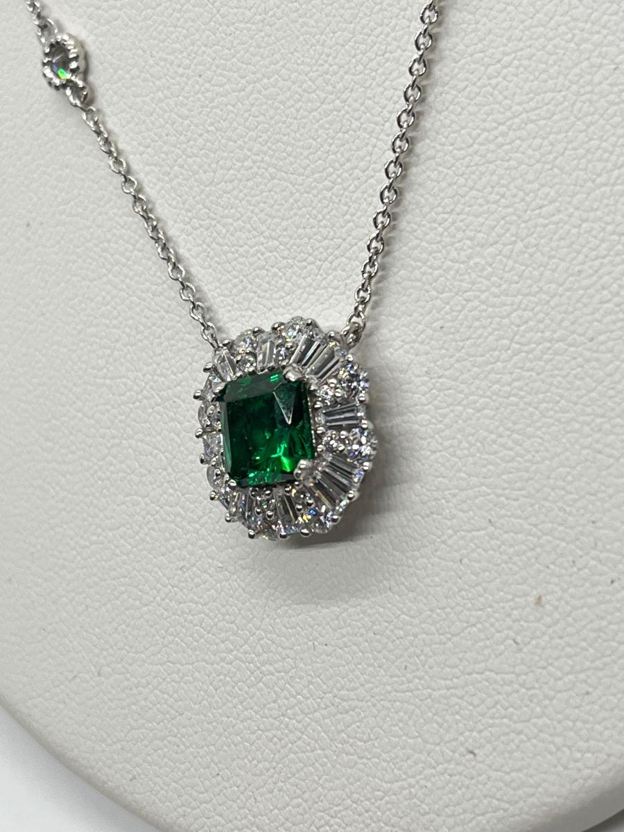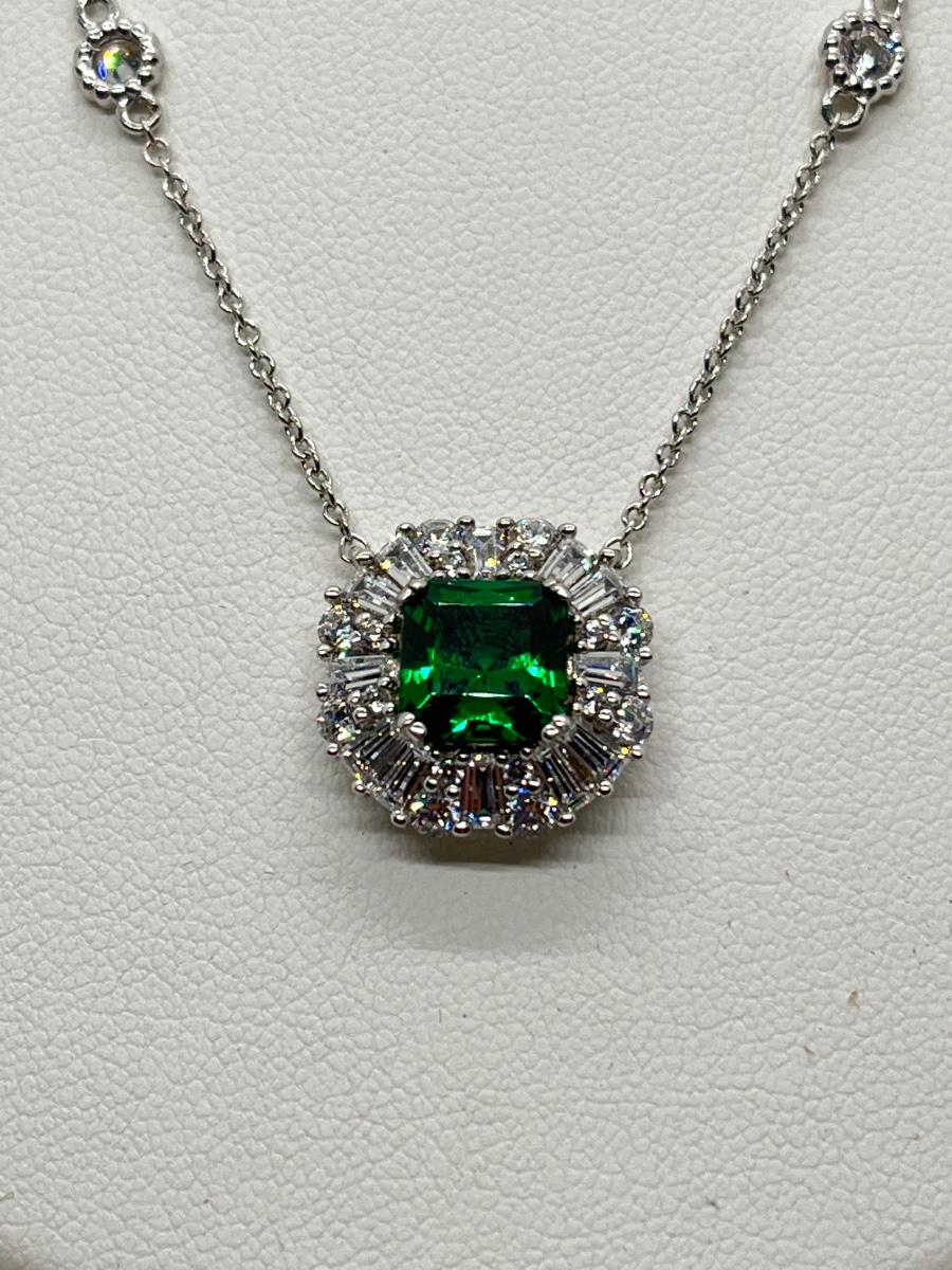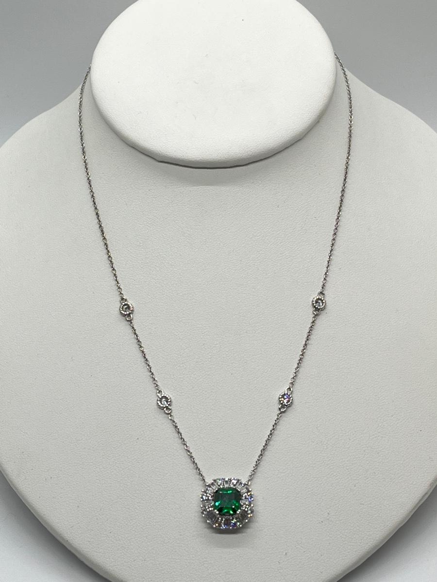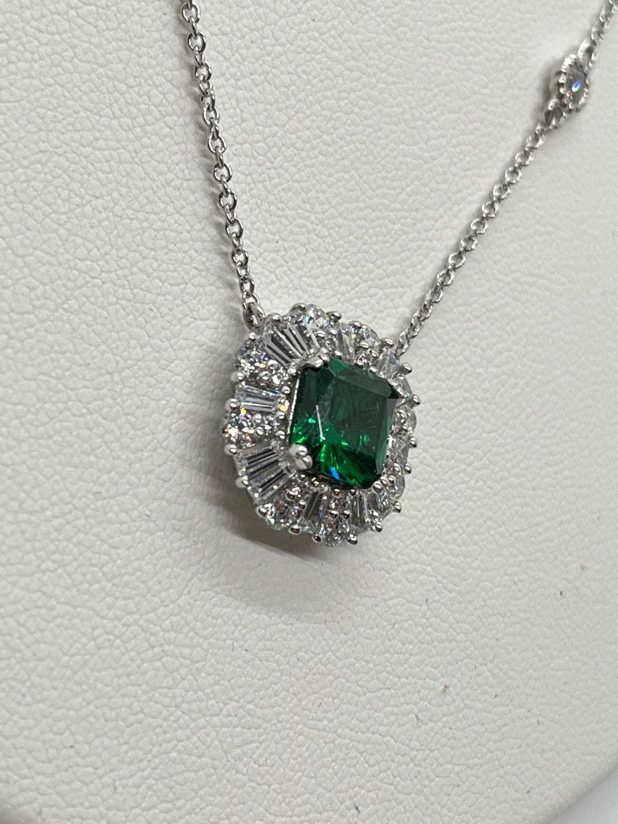 LOTJ81: TOVA Diamonique Simulated Emerald Necklace, Sterling Silver, 18"
