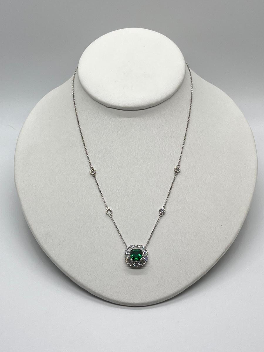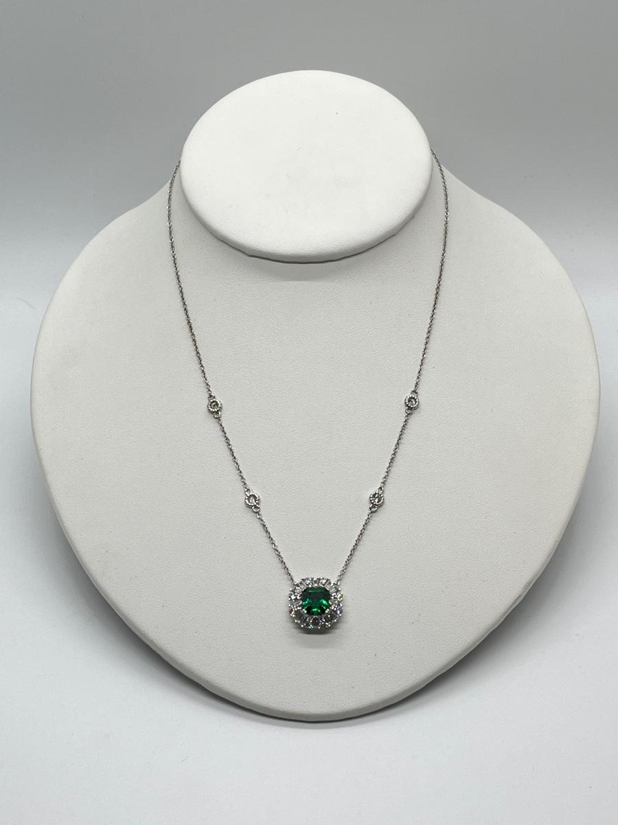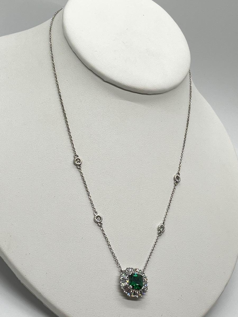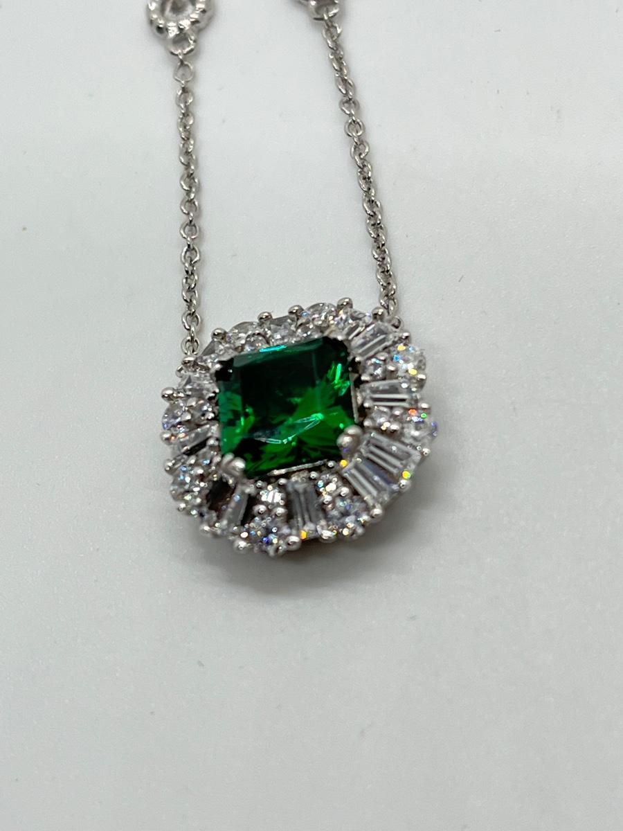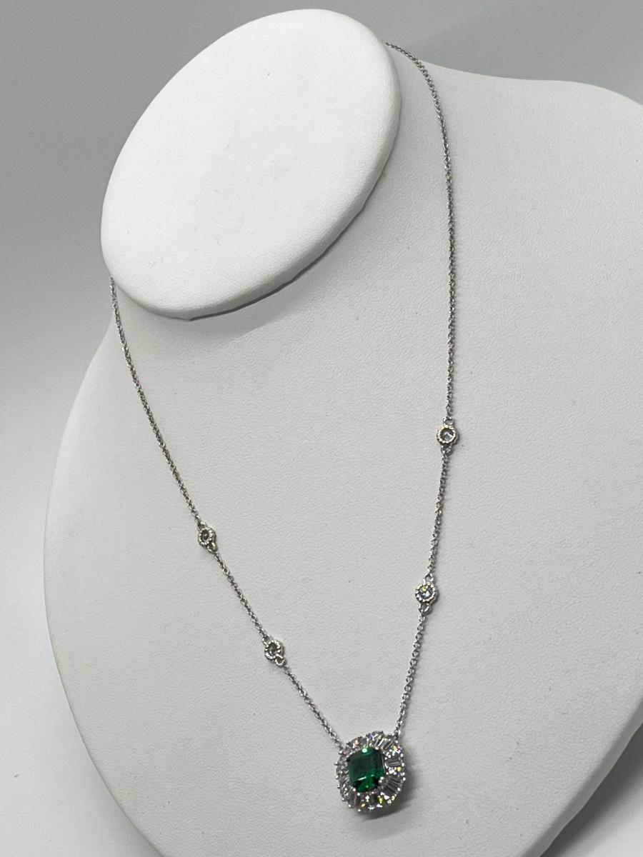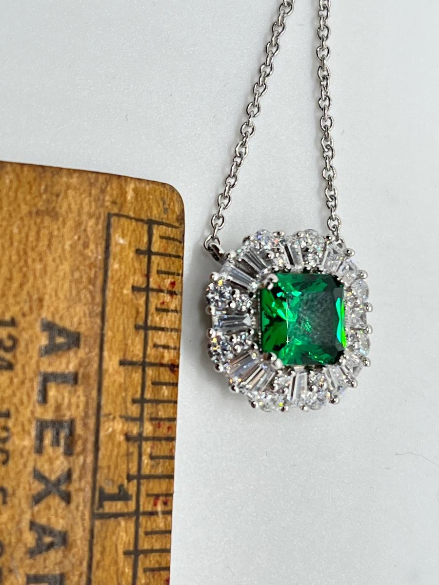LOTJ81: TOVA Diamonique Simulated Emerald Necklace, Sterling Silver, 18"