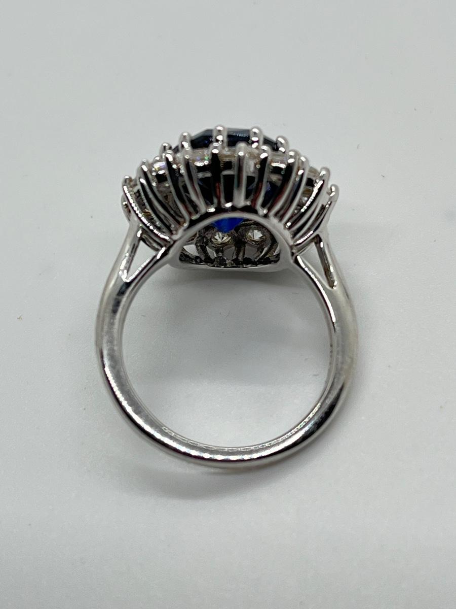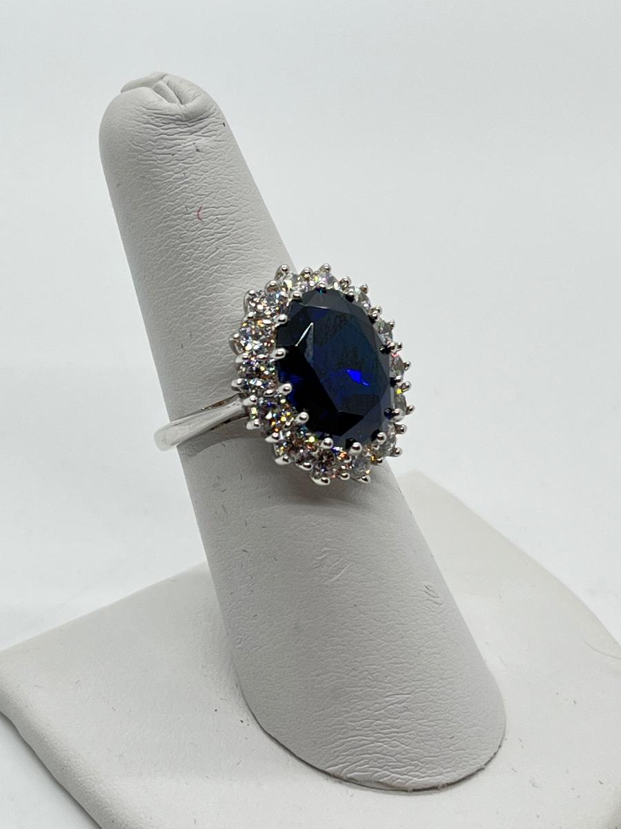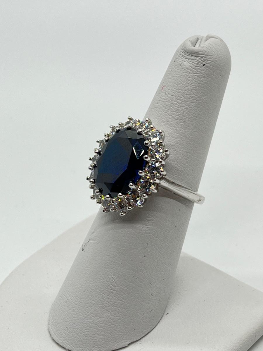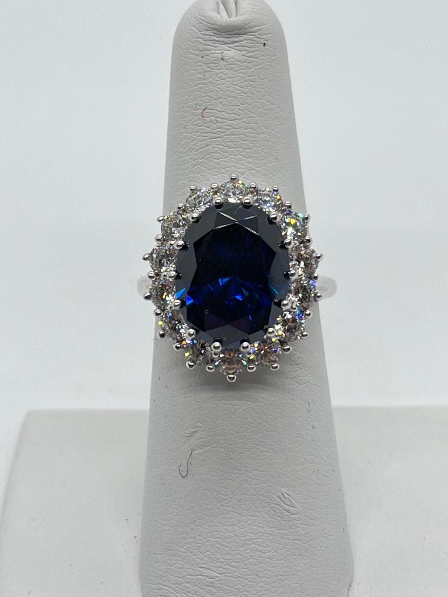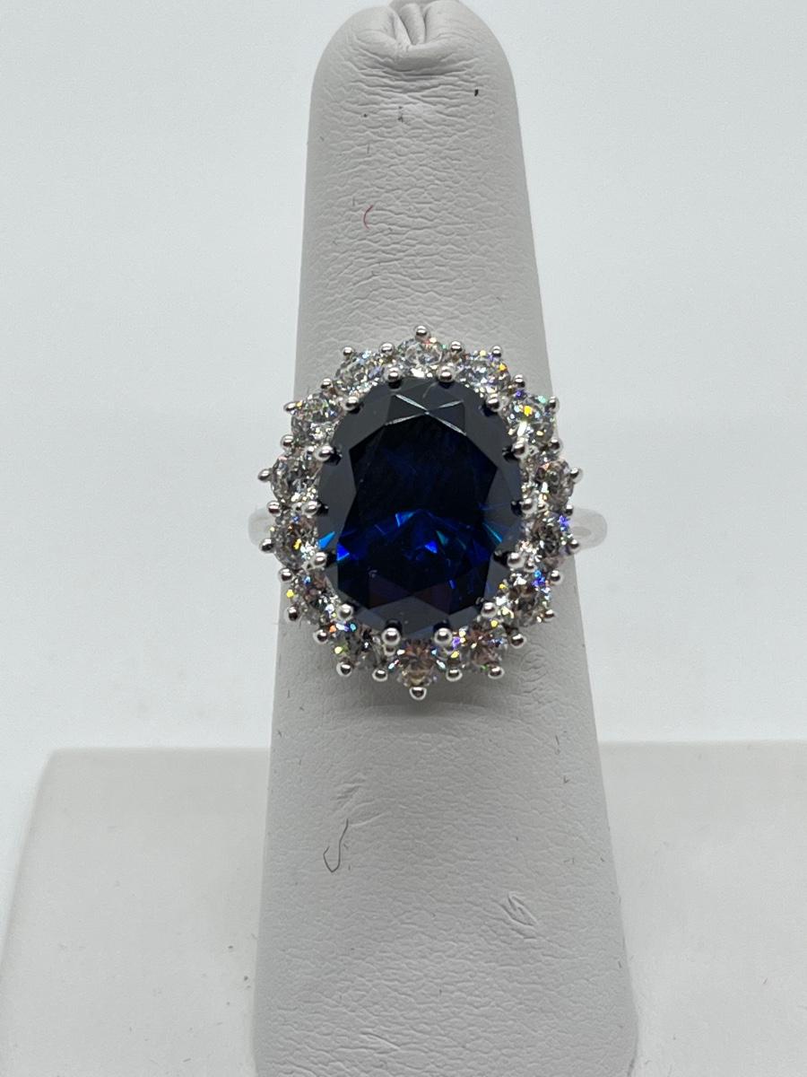 LOTJ83: Diamonique Sterling Silver, 8.80 ct.tw. Simulated Sapphire Ring, Sz6