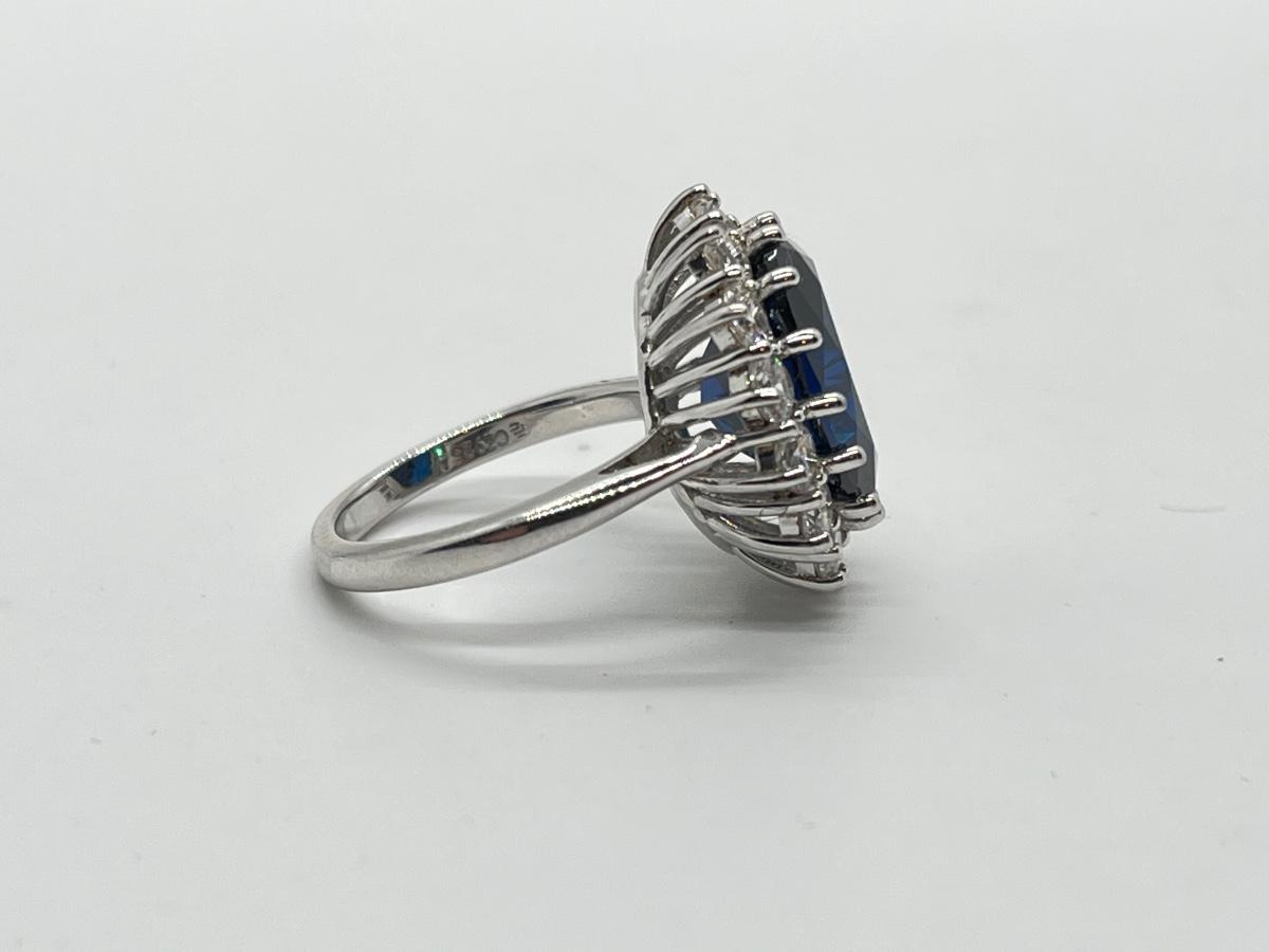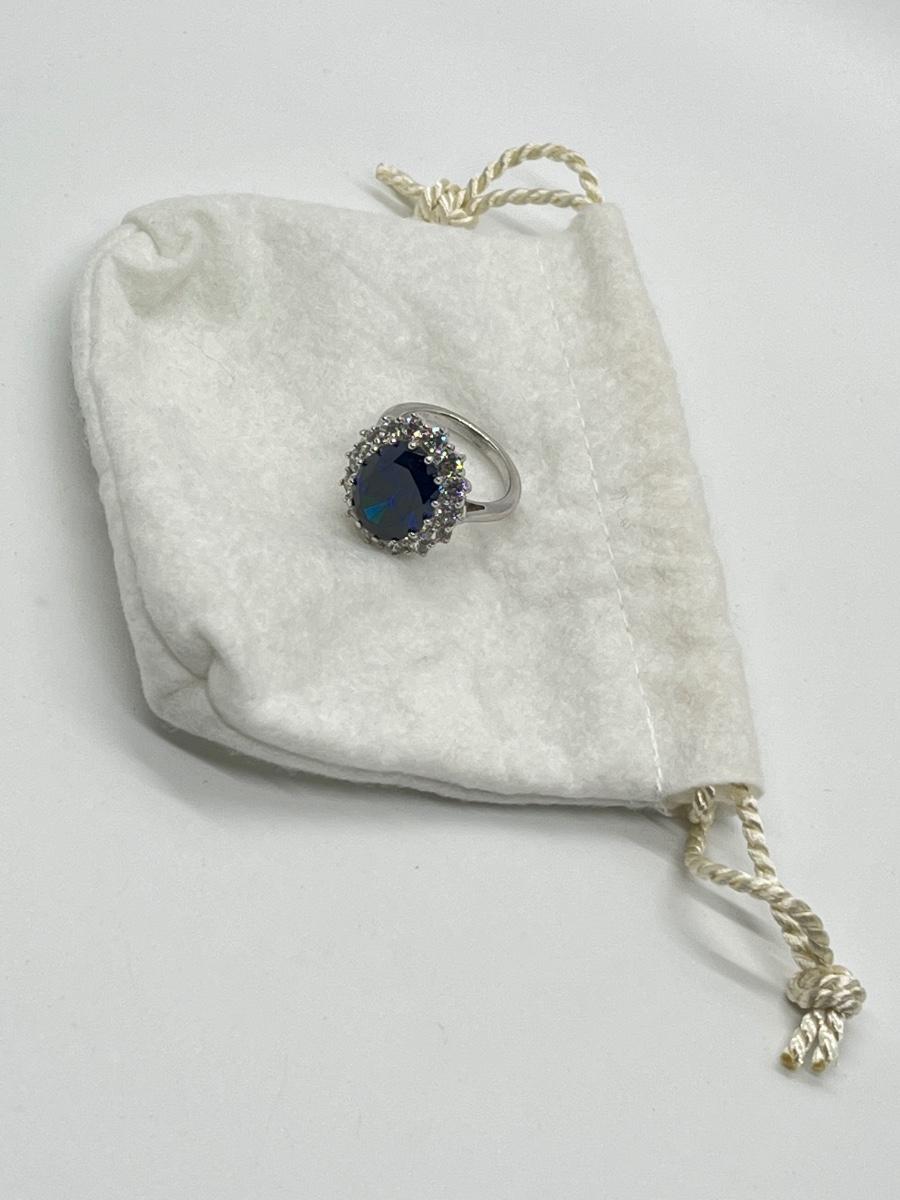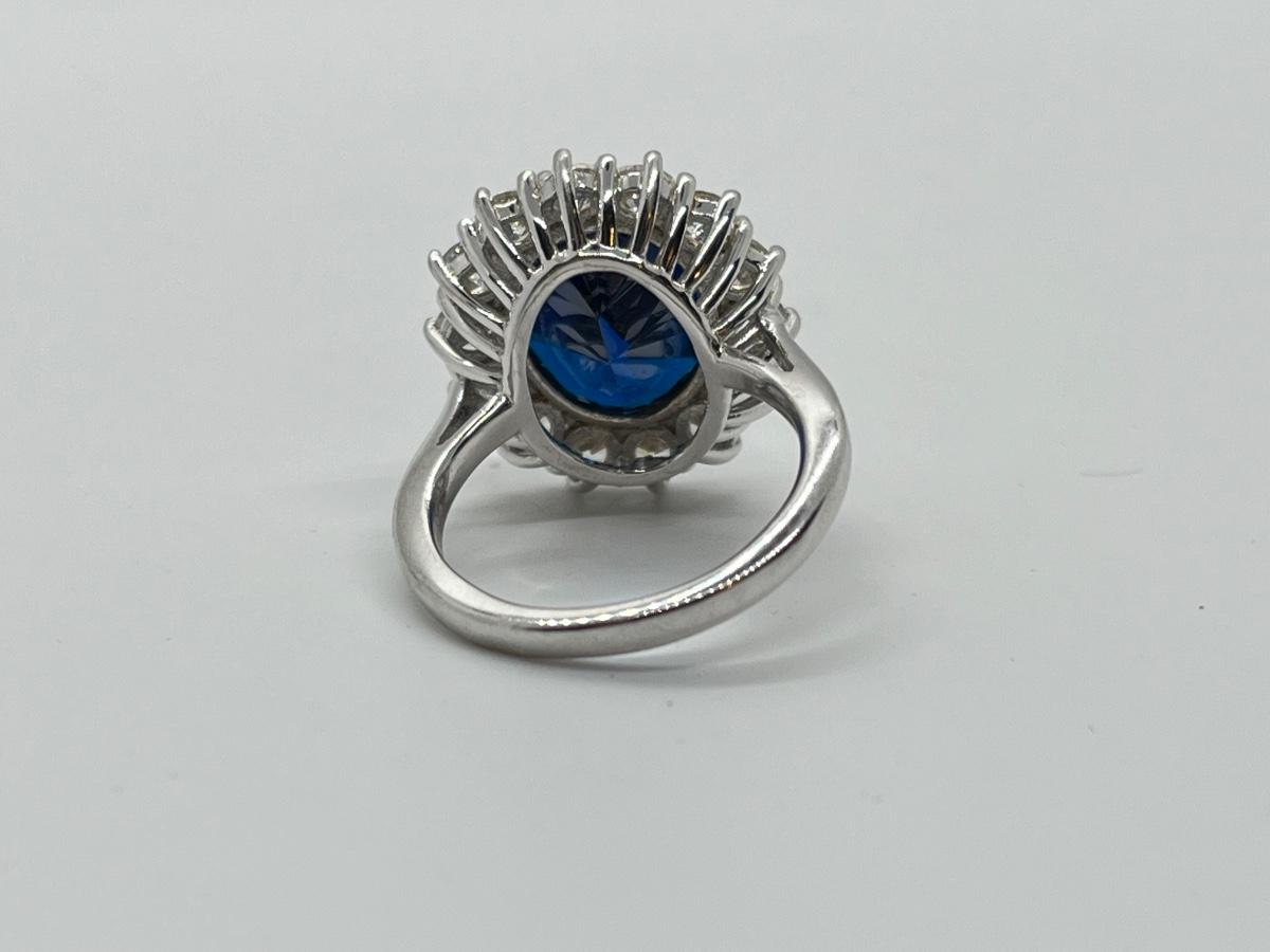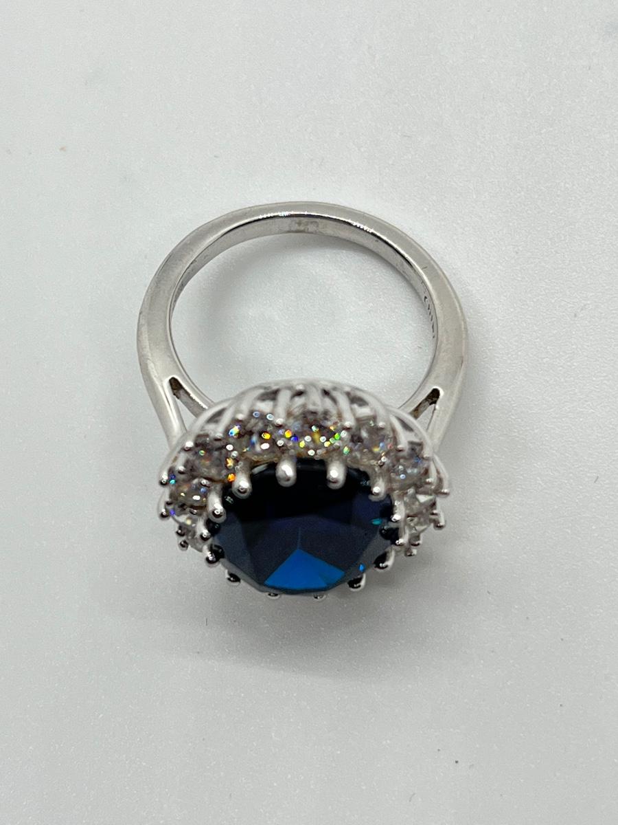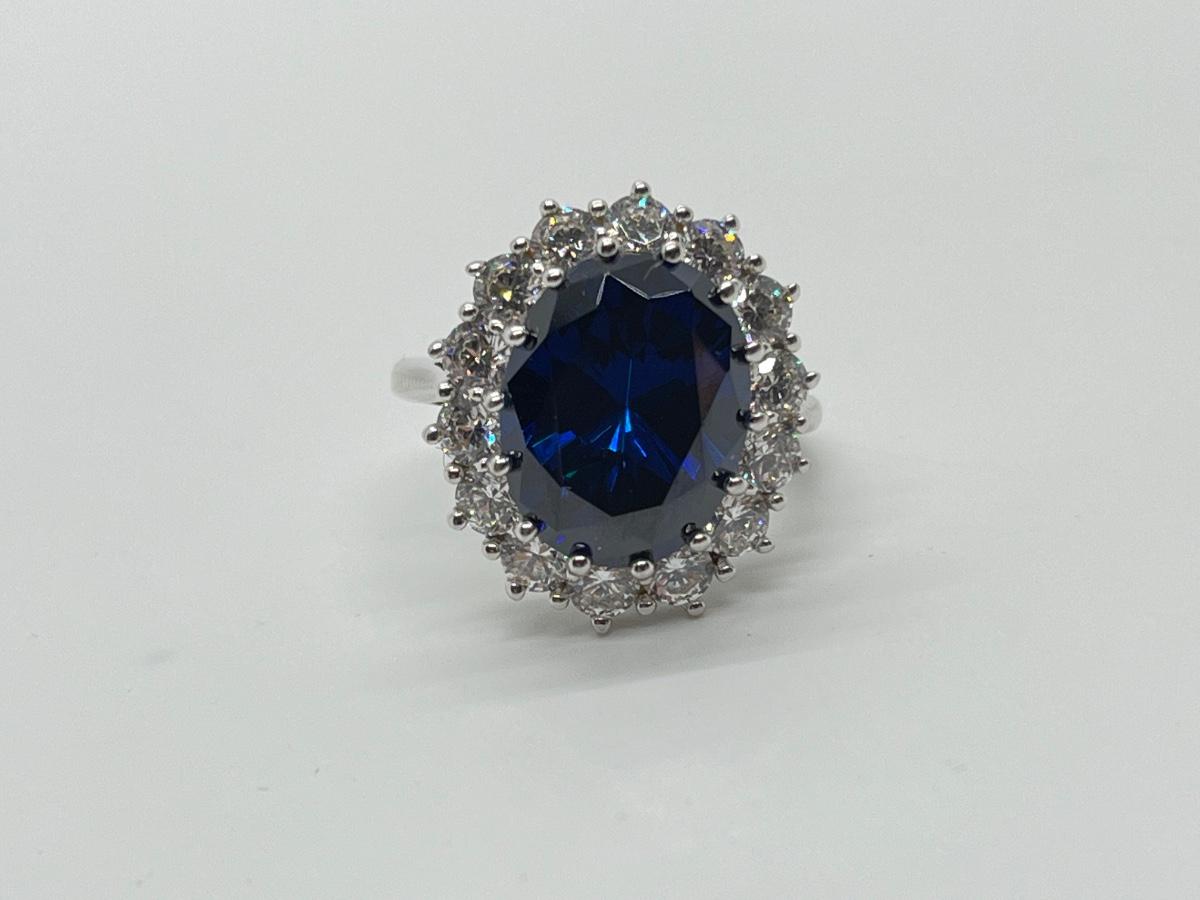 LOTJ83: Diamonique Sterling Silver, 8.80 ct.tw. Simulated Sapphire Ring, Sz6