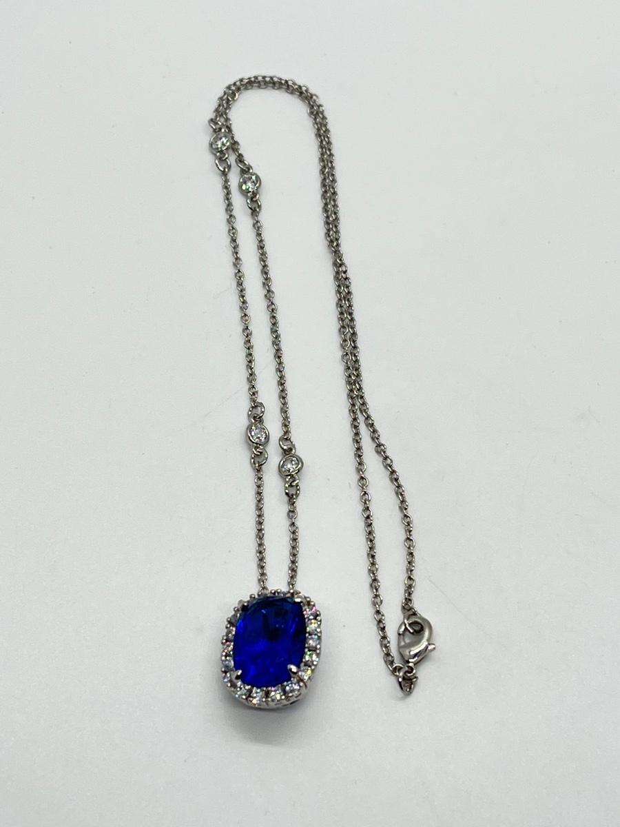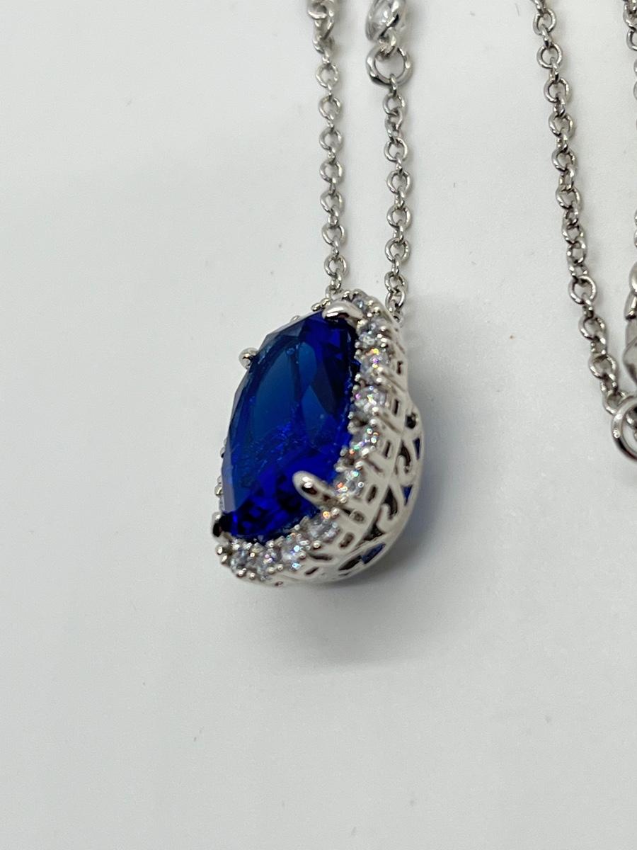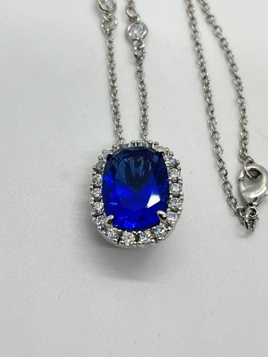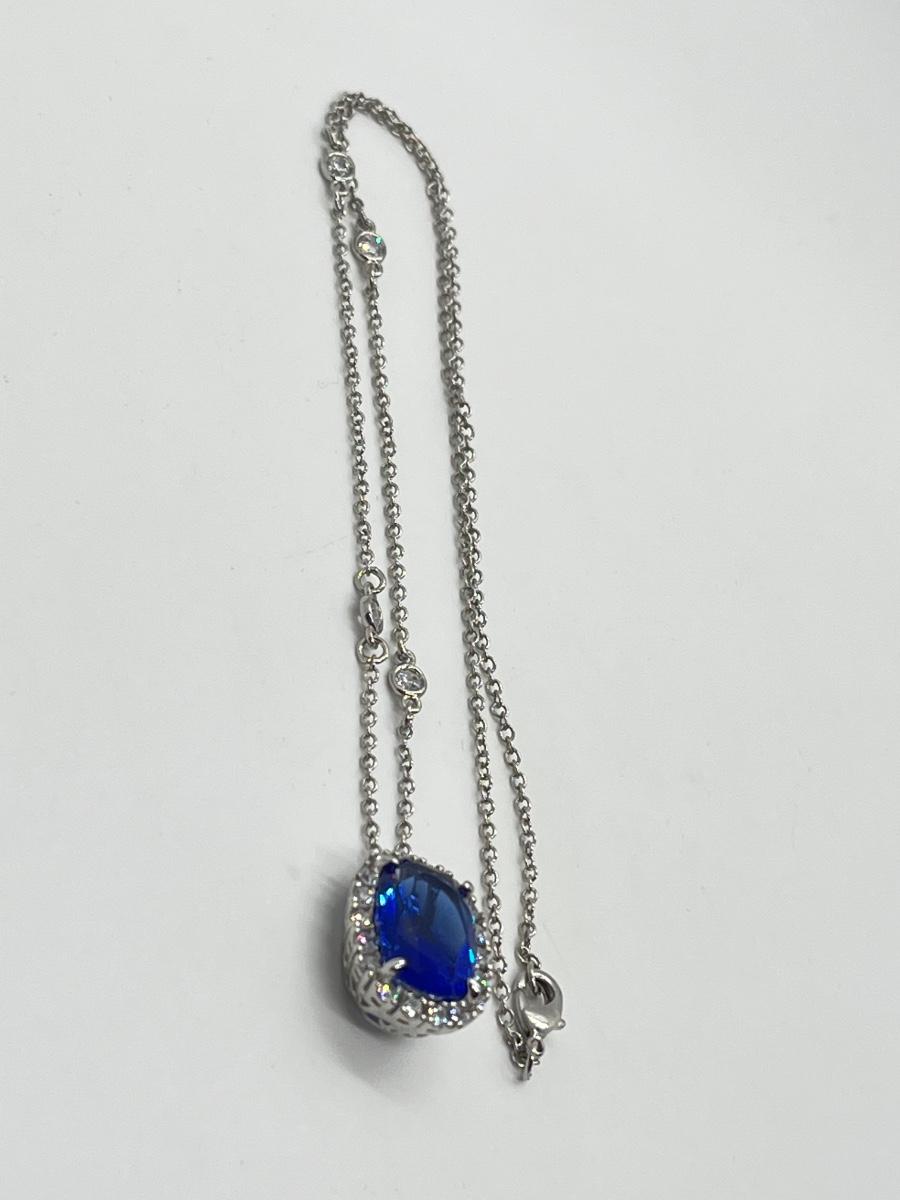 LOTJ84: Smithsonian Logan Simulated Sapphire Enhancer w/Silvertone Chain, 18"