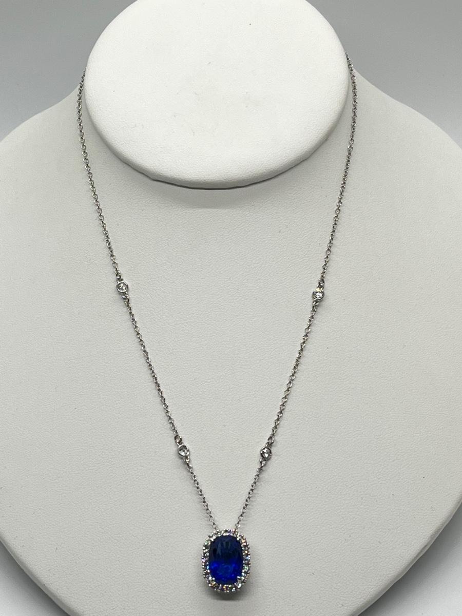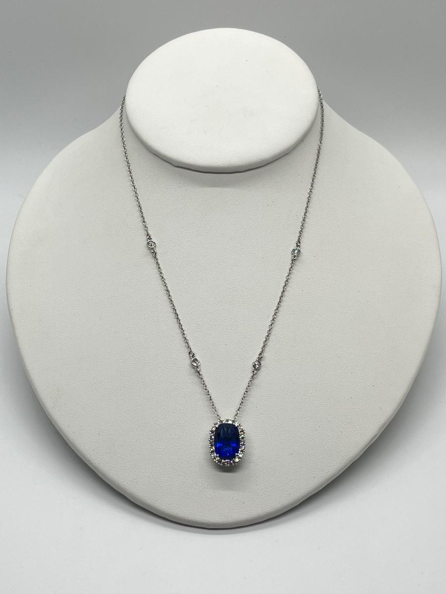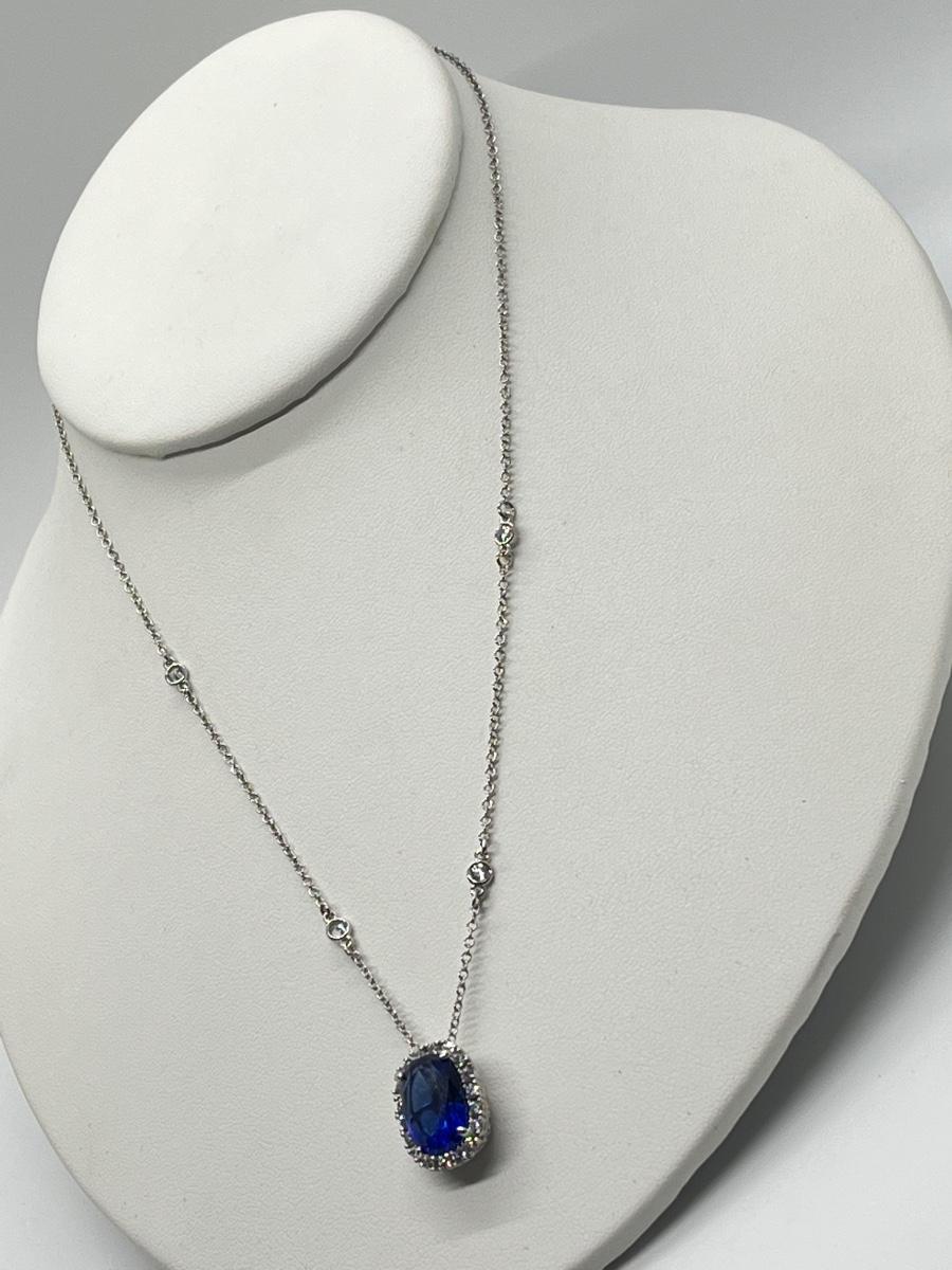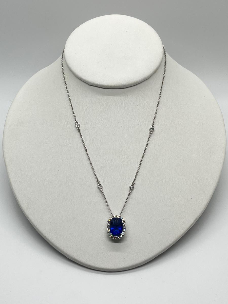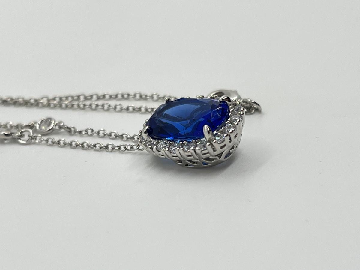 LOTJ84: Smithsonian Logan Simulated Sapphire Enhancer w/Silvertone Chain, 18"