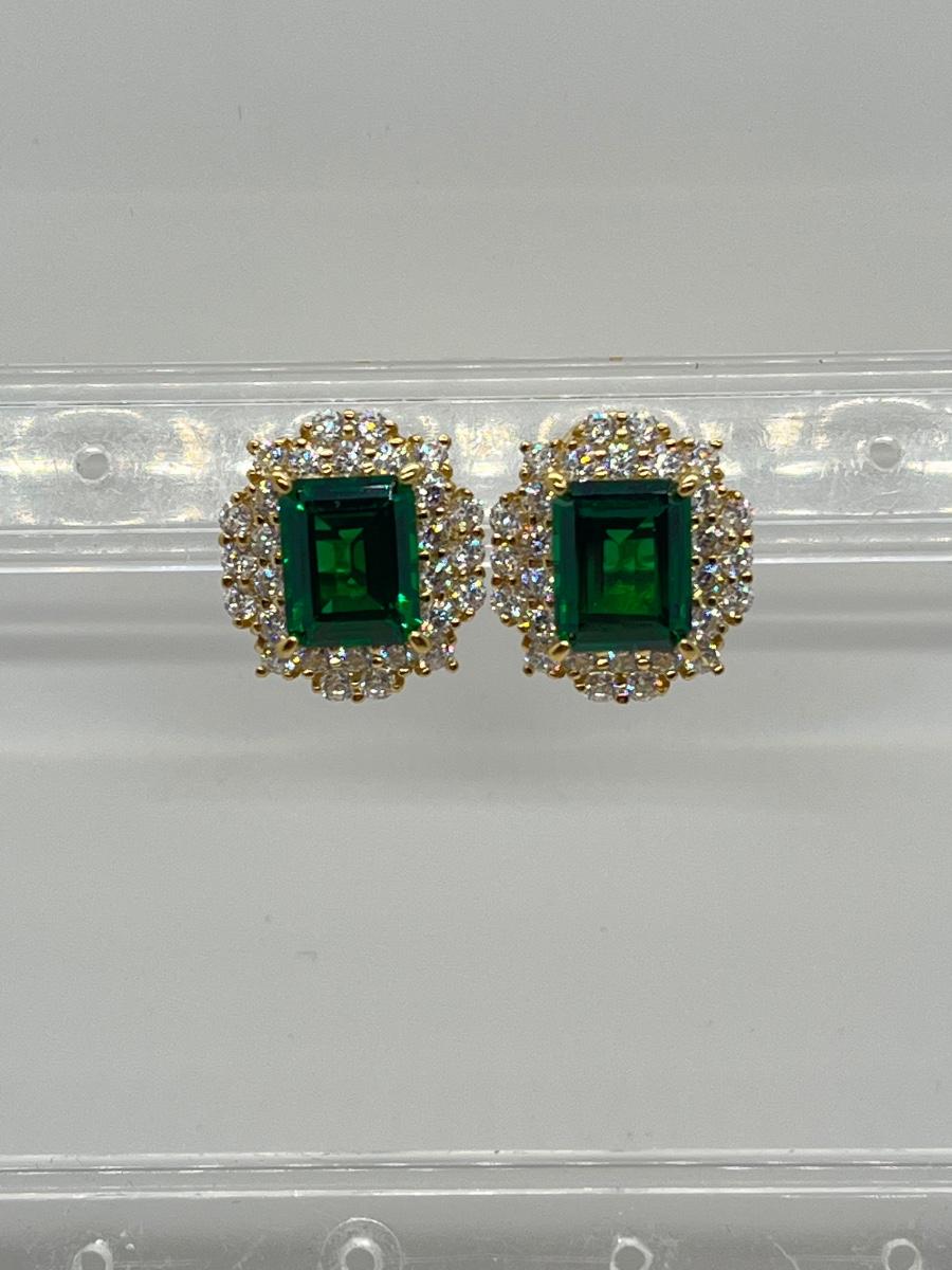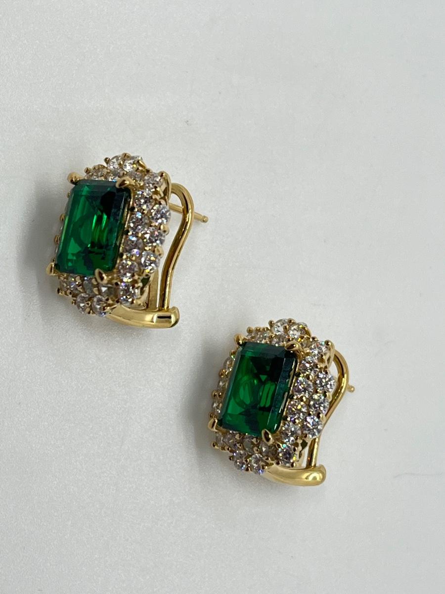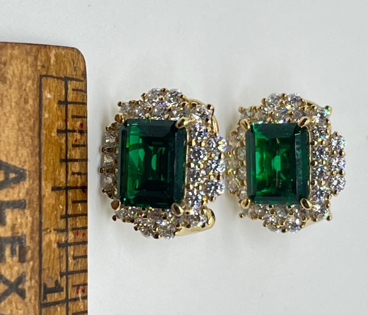 LOTJ88: TOVA Diamonique Simulated Emerald, Earrings, 14K Clad